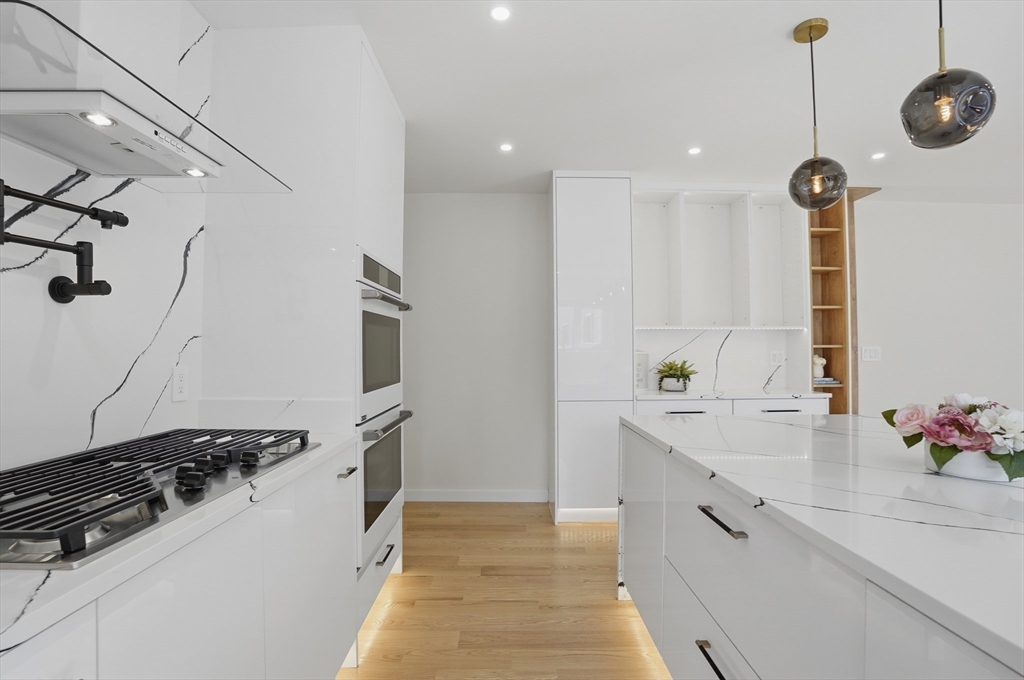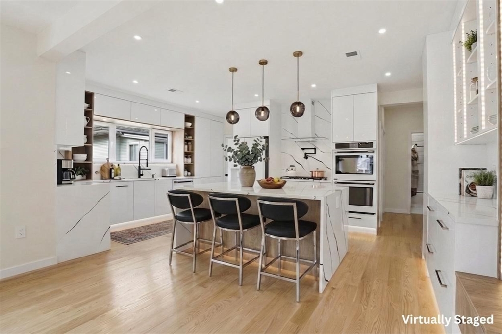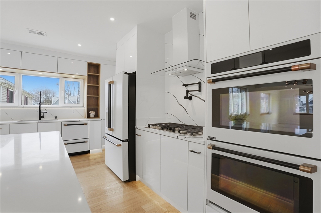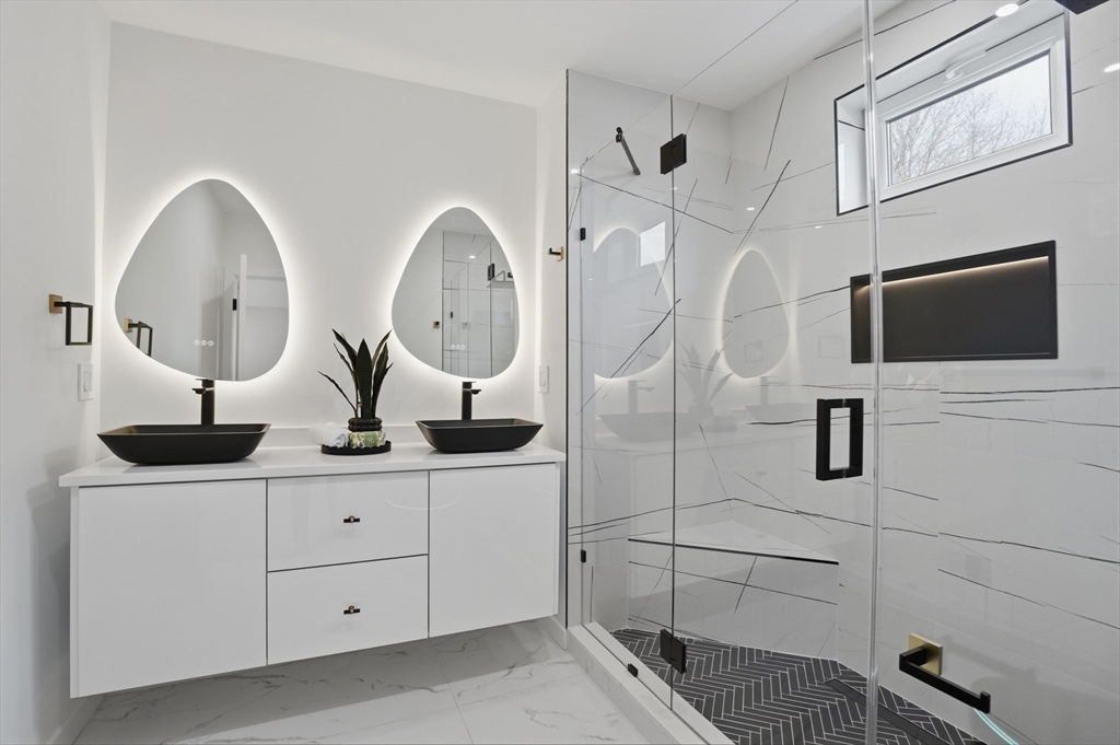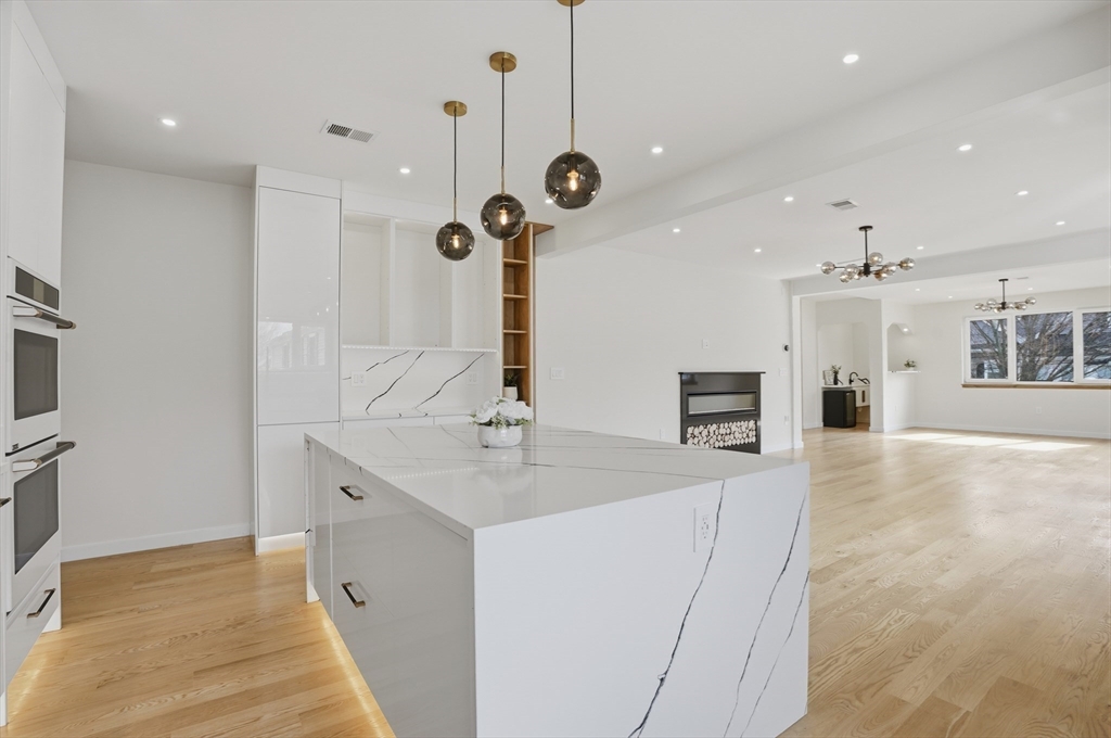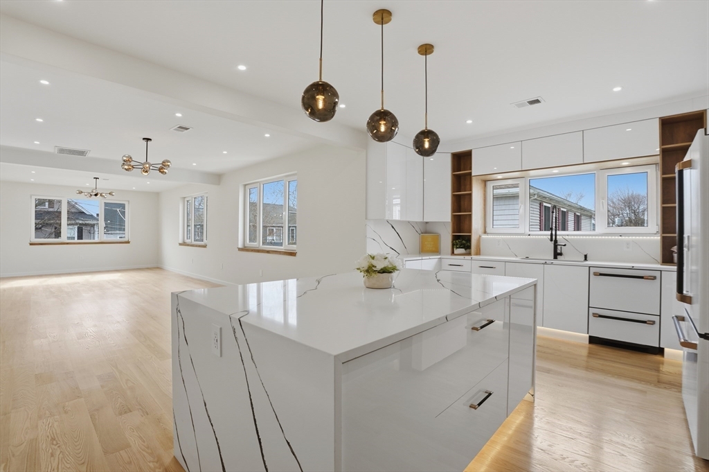 BEAUTIFULLY RENOVATED two-family offering exceptional design, expansive layouts, and high-end finishes throughout for multigenerational living or extended households seeking flexibility. Each unit features sun-filled open-concept living and dining areas with fireplaces and oversized windows, flowing into stunning kitchens with center islands, stone countertops, custom cabinetry, and premium fixtures perfect for entertaining. Spacious bedrooms include walk-in closets and designer baths with sleek tile work and glass showers. The upper unit extends to a bonus loft level ideal for a home office, guest suite, or additional living space. Additional highlights include central air, in-unit laundry, separate fenced yard areas, and a two-car garage with dedicated sides plus off-street parking. Conveniently located off of Main St, near Watertown Square, Arsenal Yards, the Charles River Greenway, Mount Auburn Street, and easy access to Routes 20, 16, and the Mass Pike for commuting into Boston.