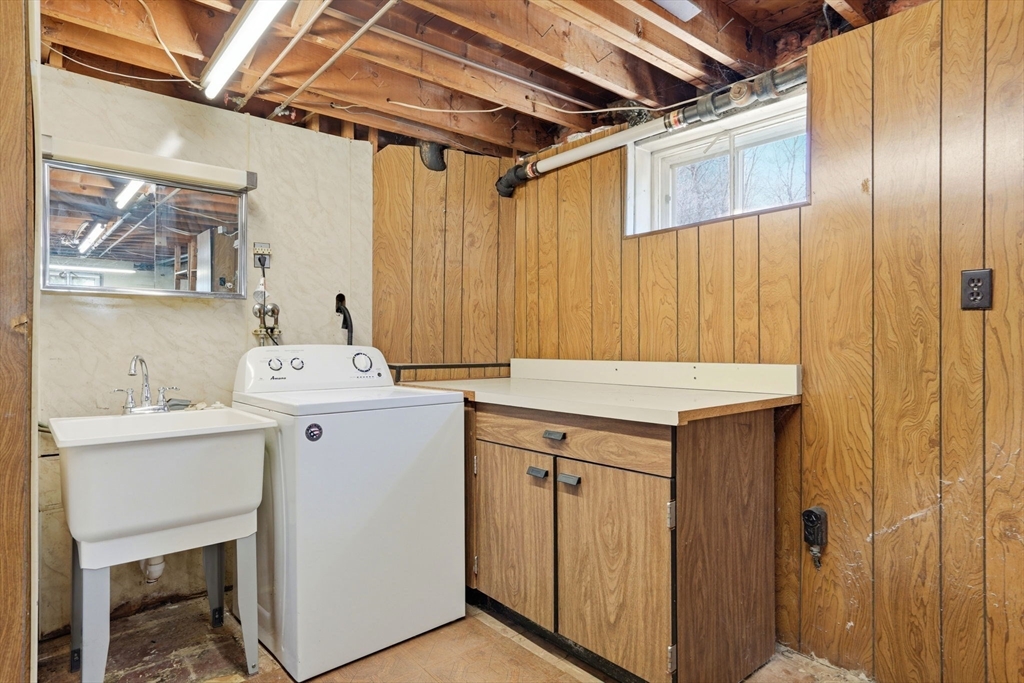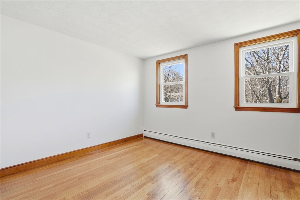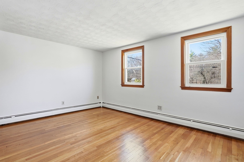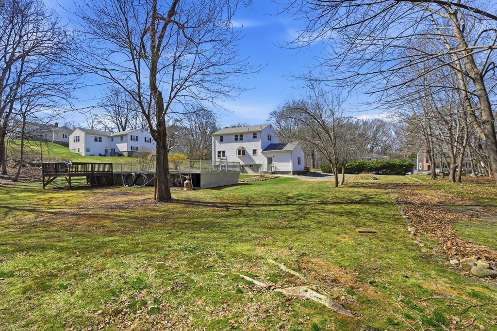 Nestled in a desirable Braintree neighborhood, this Garrison Colonial has been in the same family for over 50 years. Set on a tree-lined street, the property is on a lovely, slightly elevated lot abutting serene wooded land. Inside, this immaculate, well-cared-for home welcomes you with newly refinished gleaming hardwood floors throughout, and a freshly painted interior. The sun-splashed first floor includes a living room, dining room, and a kitchen that overlooks the backyard. Upstairs are four generously sized bedrooms with ample closet space, and a full bath. In the lower level, a partially finished room with a wood stove and a bath offer potential for a bonus or game room. The large backyard features an above-ground pool, and with plenty of off-street parking make this a perfect spot for summer gatherings. A one car garage has a loft above for extra storage space. Close to area amenities, schools, restaurants, shopping, recreational, parks, medical facilities and the commuter rail!