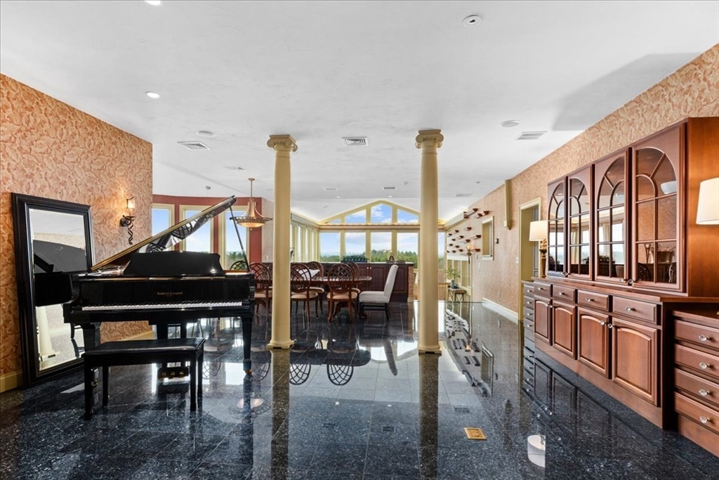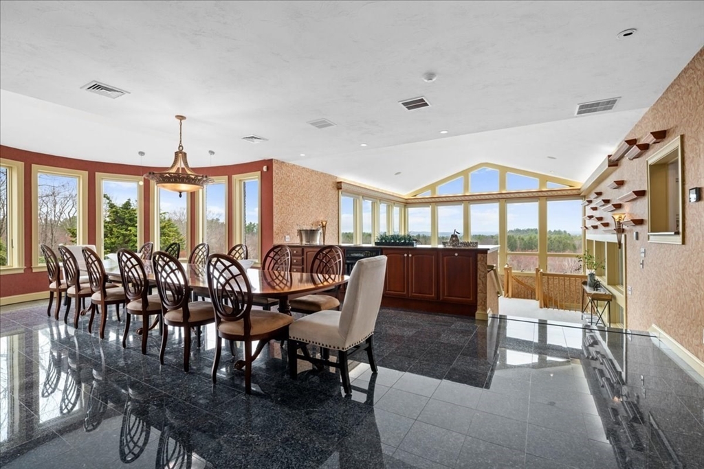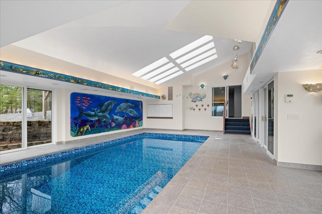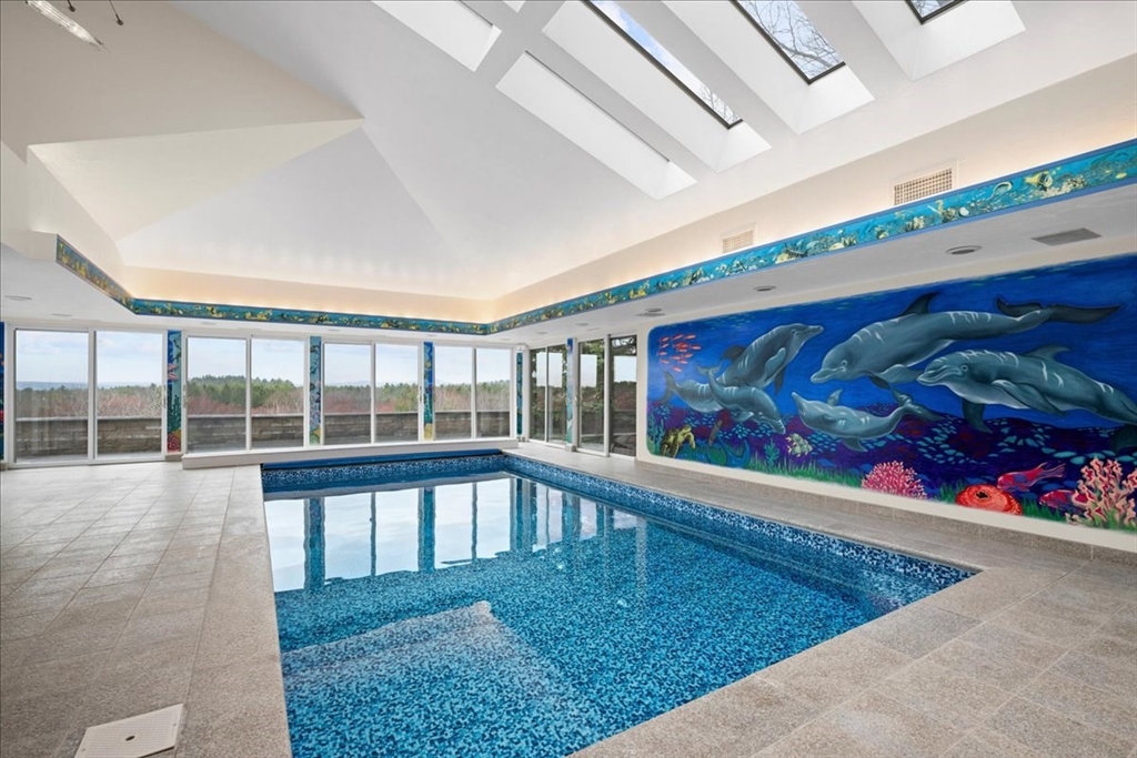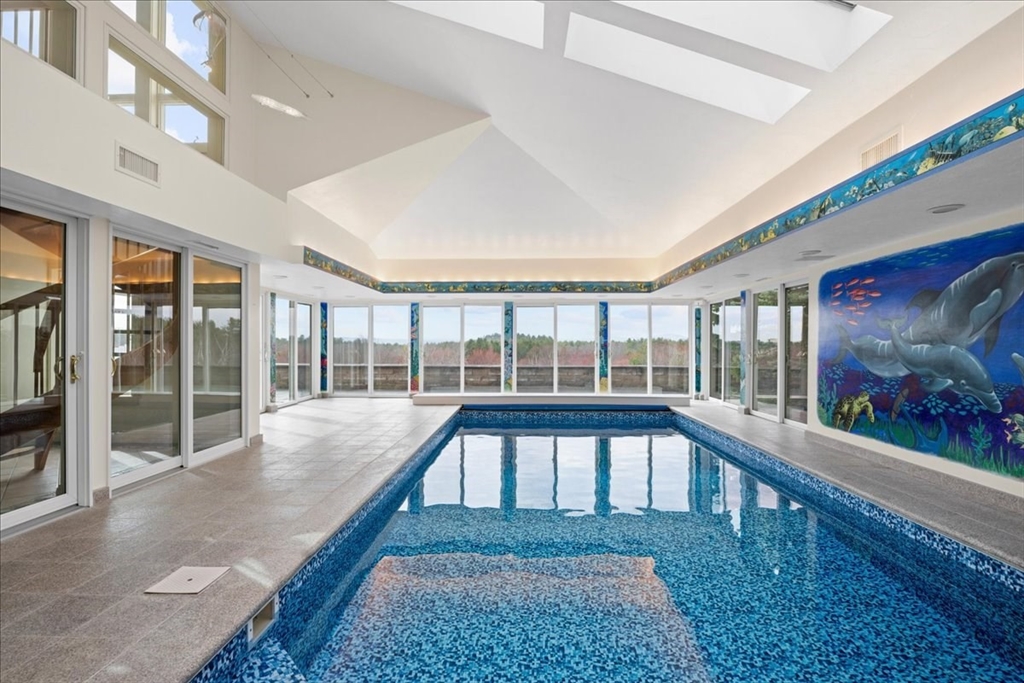 Once in a lifetime opportunity! Bespoke ESTATE w/remote entry gates - gentle slope takes you to this gem perched at over 600' above sea level enjoying amazing WESTERN views & complemented by Apron Hill 28 ac of Dept of Conservation & Recreation property*Stunning, Modern, Architect-designed masterpiece of exemplary quality w/so many custom features*Andersen windows frame gorgeous views from almost every rm including the jaw-dropping Natatorium w/beautifully maintained 12x25 pool complemented by radiant heated patio & numerous skylights*Flow is key from the marble entry Foyer to the DR w/seating for 20, which opens to a sunken LR w/glass-packed walls to enjoy stunning sunsets*Custom isle kitchen w/luxe features*2-story eating area w/soaring wall of glass*Climb the cherry helix staircase to the Eagle's nest or the front stairs to the primary suite & 3 add’l bdrs*3 car att & 3 car detached w/walk up attic*Windowed lower level offers Bonus Rm, Exc Rm & half Bath*Organic garden beds