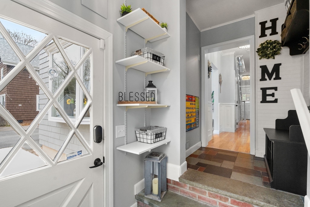 Wonderful opportunity in the heart of the Poet's neighborhood, this expansive Tudor Colonial blends timeless charm with modern comforts. Thoughtfully updated throughout, this home boasts soaring ceilings, spacious rooms and a flexible floor plan. Gracious formal living room with stone fireplace flows through to well appointed dining room. Light and bright eat in kitchen with stainless steel appliances opens to the large level lot perfect for indoor/outdoor entertaining. Family room and wonderful sunroom / play space offer many options for today's living. Upstairs there are four corner bedrooms and renovated full bath. The third floor allows for either two additional family bedrooms or private work from home space. The separate entrance makes it a fantastic space for an in law or au pair suite. Finished lower level with home gym, full bath and ample storage. Prime location near shops, restaurants and easy commuting to Mass Pike and the T. Just Minutes from Warren playground.