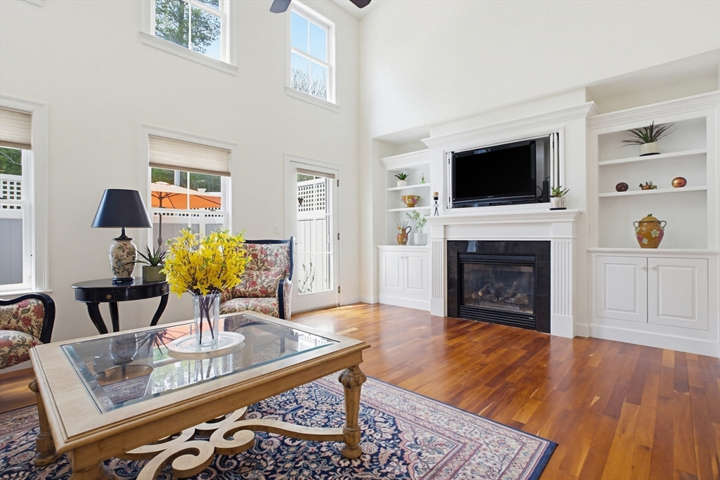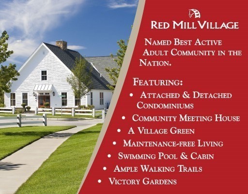 Presenting "The Dover" at Red Mill Village. From the front Farmer's Porch to the rear Private Patio that over looks the conservation land, you will love this "Dover" home style. Offering an Open Concept floor plan design featuring a large Kitchen with eat in-Dining Area, fine cabinetry, granite c-tops & ss appliances. An expansive Dining Room opens to the Living Room which features a gas fireplace surrounded by built ins and boasts two stories of ceiling height with multiple widows. Out of the ordinary American Cherry Hardwood Floors. A large 1st Floor Main Bedroom features a walk-in closet & en-suite Bath. 1st floor also hosts the Laundry area. The second floor features an over sized Loft with addnl built-ins, ideal for a Den AND a Home Office. 2 Car garage & driveway for rare additional off street parking. The Patio is enclosed and very private. Minutes from I495 with easy access to commuter rail. Enjoy a maintenance free lifestyle & heated in-ground pool this summer! Age 50+ is OK