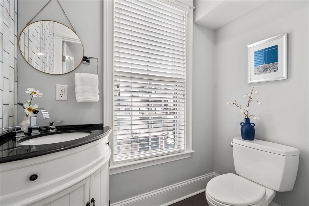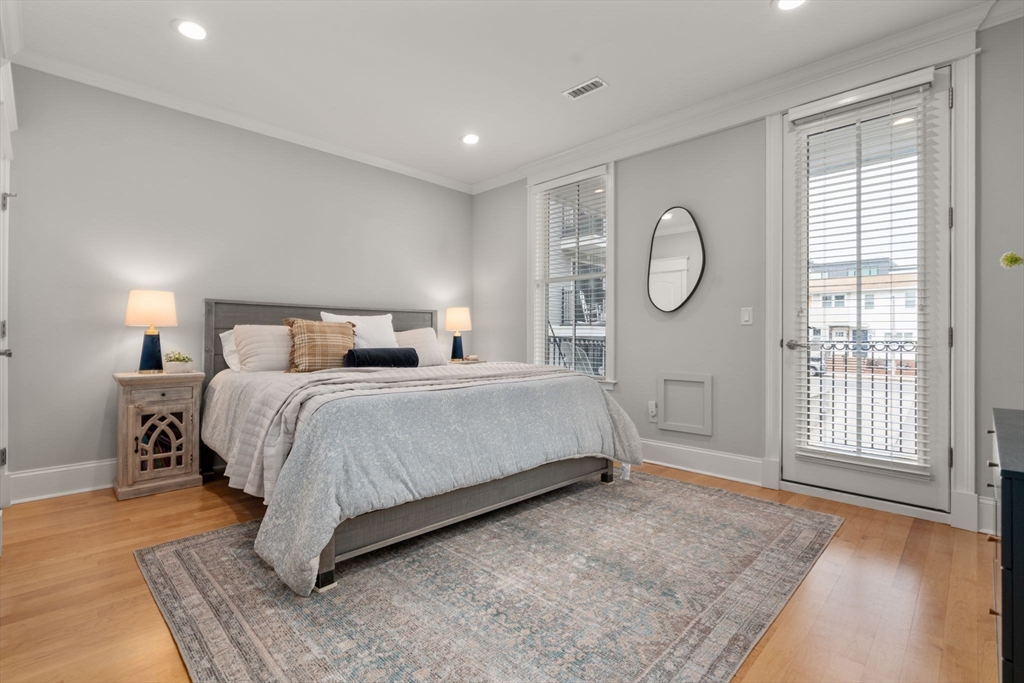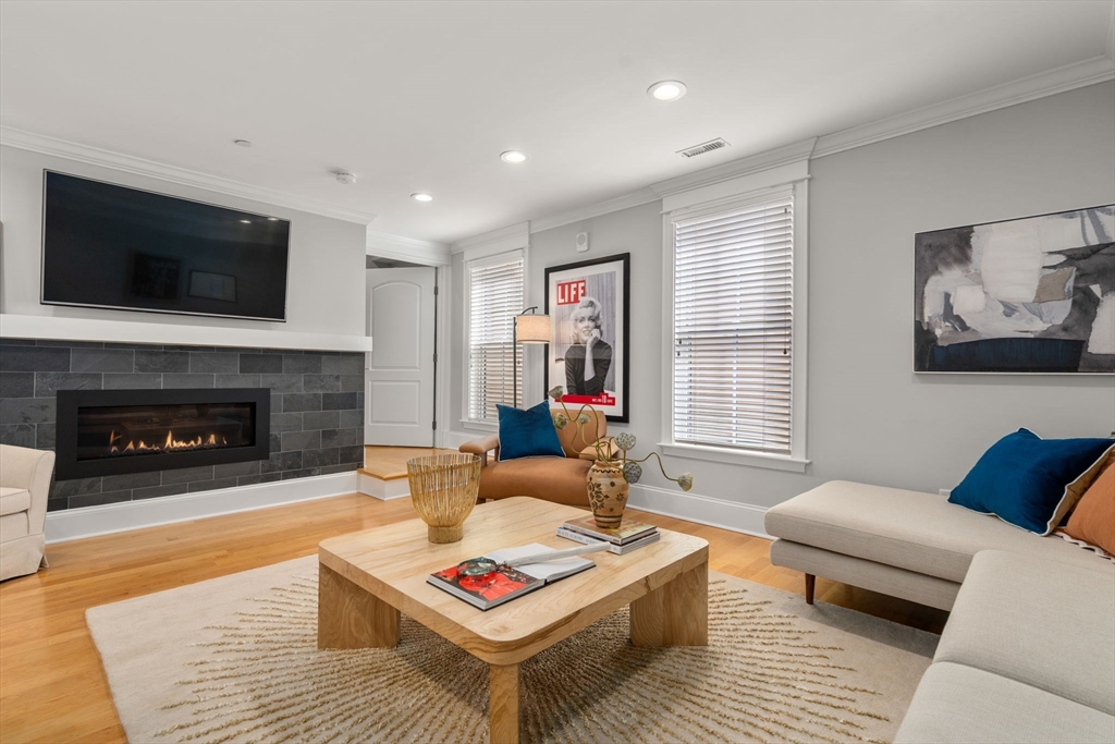 Remarkable corner townhouse in coveted City Point neighborhood! Discover luxury living in this exceptional 3 bed PLUS office/media room, 2.5-bath home with an oversized garage parking space + 2 exterior parking spaces. The open-concept living, kitchen, and dining level is exceptionally designed for both comfort & entertaining, featuring a gas fireplace, Wolf/Sub Zero appliances, double oven, custom inset cabinets, and leads directly out to a beautiful balcony with a plumbed gas line for grilling. Upstairs, the primary suite offers a luxurious retreat, highlighted by 9 foot ceilings, a dedicated lounge area, a large walk-in closet and a beautiful spa-like bathroom complete with a marbled steam shower and freestanding tub. Enjoy local favorites like Medal of Honor Park, Castle Island, Petula's, Annie's, Sidewalk Cafe, plus the convenience of Starbucks, Stop & Shop, Walgreens, workout classes, shops, public transportation + easy highway access! Seller offering buyer $10,000 closet credit!