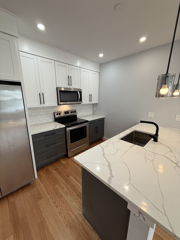 Welcome to this newly built condo in East Boston! Located just a 1-2 minute walk from the Orient Heights Blue Line MBTA station, this home offers easy access to major routes, Logan Airport, and public transportation. The bright and airy unit features two spacious bedrooms and one full bathroom. The open-concept living space includes a fully equipped kitchen with electric appliances and a large island, perfect for cooking and entertaining. For added convenience, the unit comes with an in-unit washer and dryer. Tenants are responsible for their own electricity bill. 1 off street parking spot available for rent for an additional fee. Message listing agent for a video walkthrough.