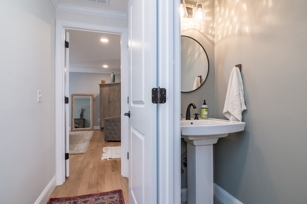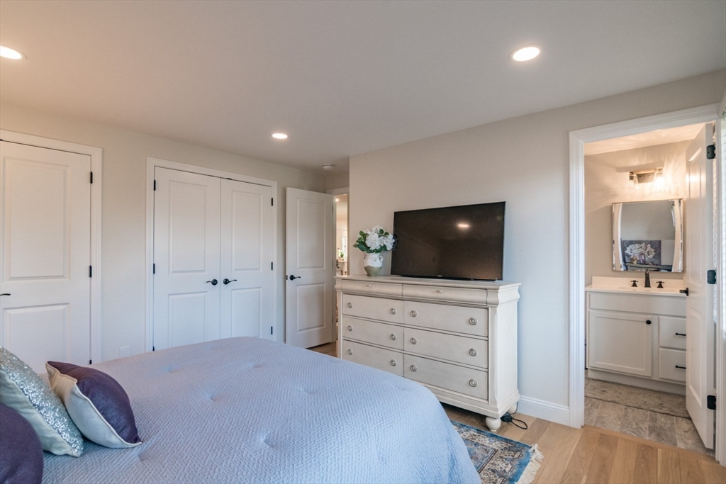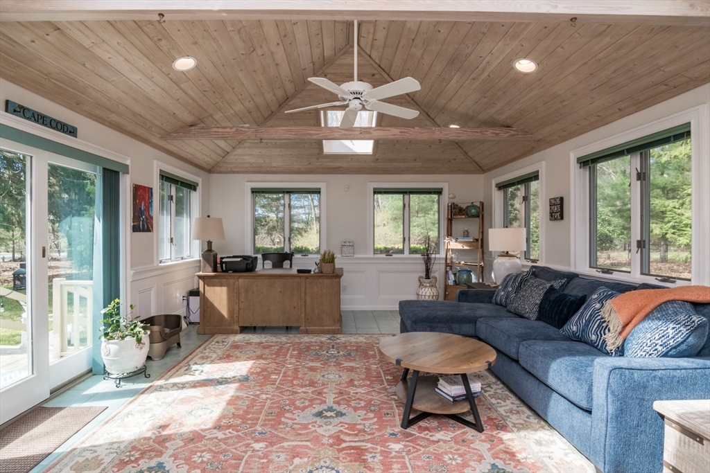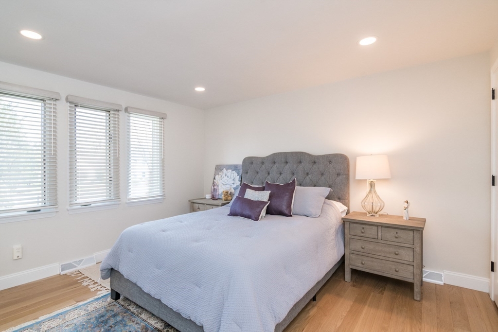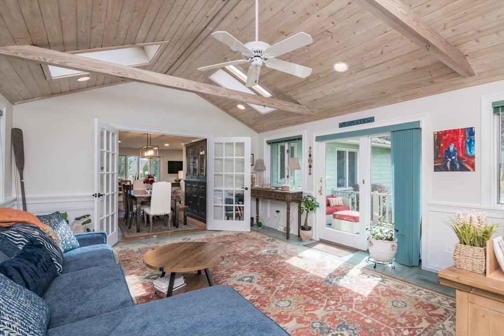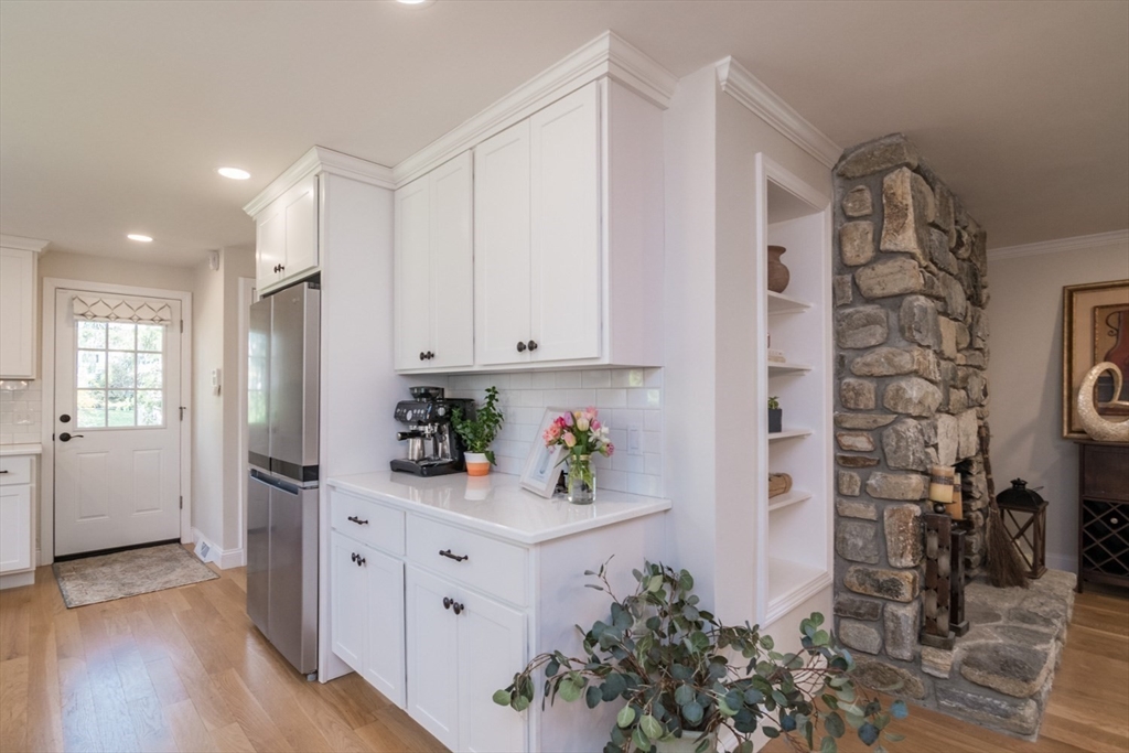 This stunning ranch has been meticulously remodeled! The gourmet kitchen has quartz counter tops with a breakfast bar, custom cabinetry, farmhouse sink & triple windows overlooking the expansive yard. The living room features a floor to ceiling stone fireplace, wood floors, recessed lights & crown molding. The open floor plan allows you to entertain with ease with a dining room that leads to a showstopping family room/sun room that includes skylights, cathedral ceiling, wainscoting & slider to the deck. Wait until you see the gorgeous primary en-suite! Very spacious bedroom with custom walk-in closet & fully remodeled spa-like primary bath with glass enclosed shower. The 2nd bedroom is also an en-suite with another equally impressive remodeled bathroom! A new half bath was added to the floor plan. This home sits on almost an acre, located on a corner lot yet yard feels private & has been fenced in - plus a circular driveway. Truly move-in ready, this home has been transformed!