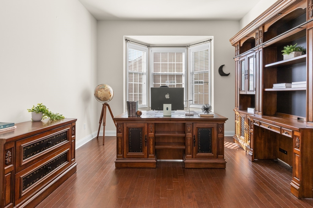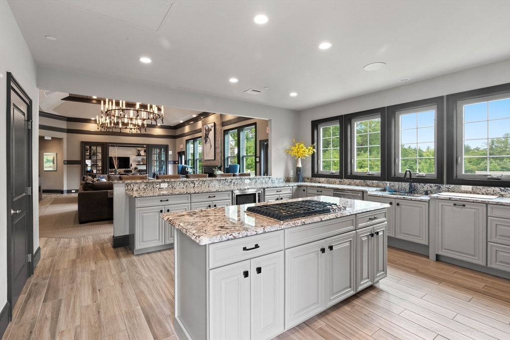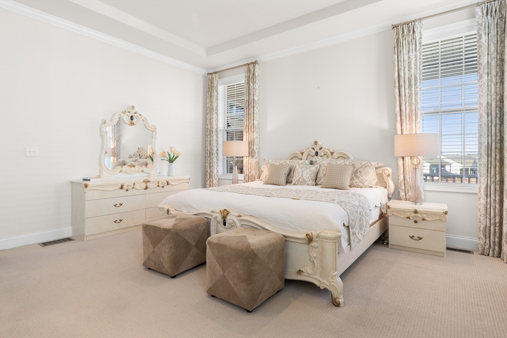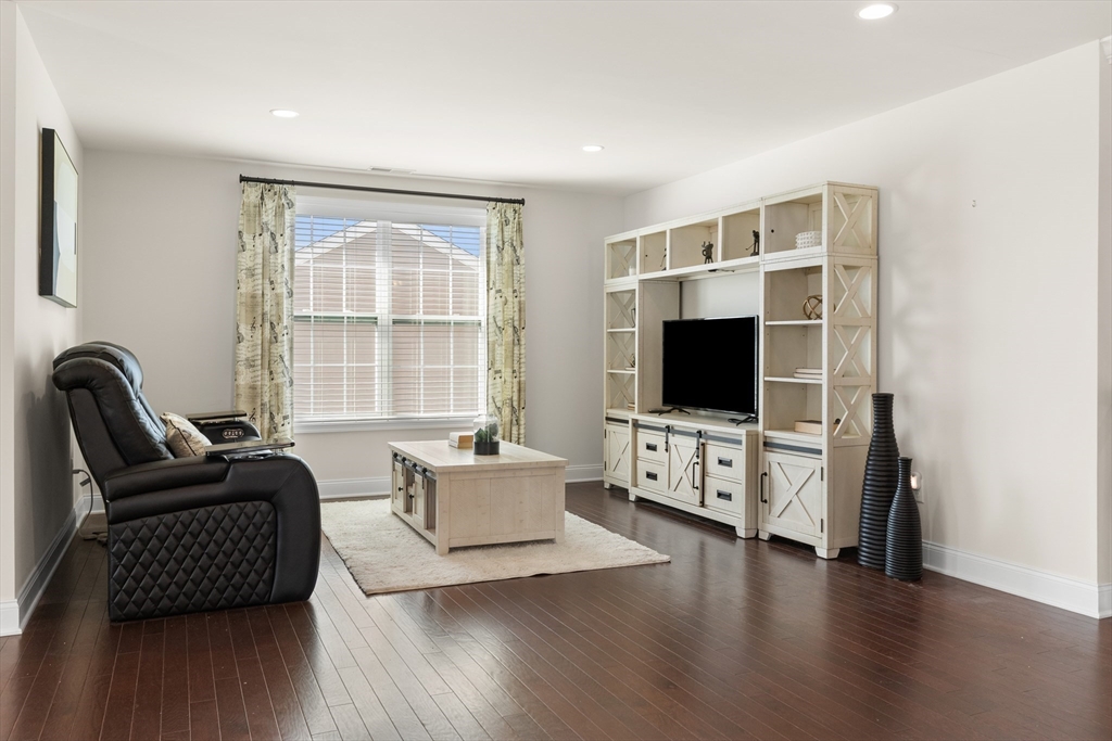 Beautifully appointed 3-bedroom, 3-bath condo in a highly desirable 55+ Toll Brothers community. Bright, open layout with soaring ceilings, a spacious white kitchen with abundant cabinetry, and a large island ideal for everyday living and entertaining. The kitchen and dining area open to a private rear deck. The first-floor primary suite features a walk-in closet and en suite bath. The inviting living room showcases a stunning fireplace, while a versatile loft offers great space for a home office or guest retreat, plus an added upstairs storage room. The partially finished lower level includes a dedicated entertainment room. Recent updates include crown molding, chair rails, and shadow boxes throughout the first floor and along the staircase. Enjoy a pet-friendly community with sidewalks and top-tier amenities including a clubhouse, pool, billiards, pickleball, and bocce courts.