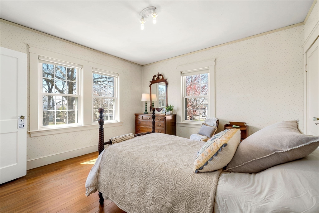 Much loved North Andover "library area"! A lifestyle that brings you back to bygone days of sidewalks to school, bike riding, neighborhood playgrounds, churches close by, cheerful neighbors out and about, restaurants nearby in the converted Davis & Furber Mills, bakery, post office, CVS and more, at the corner of First & Main. Rare oversized lot, classic center entrance colonial, 4 corner & roomy bedrooms, a real wood burning fireplace, whole house generator, walk up attic, sunroom with brand new hardwood floor, bonus finished room in the lower level with brand new floor, large 2 car detached garage, patio, house generator, new washer, dryer & refrigerator. Seller recently invested $60,000 into the property & yard within the last 2 years. Listing price has taken into consideration that the home needs some updating. Come and see, you'll love this too! Life is all around you here!