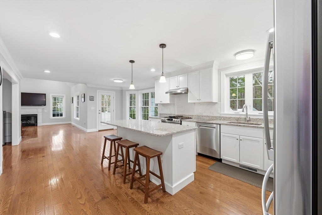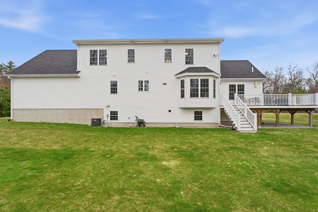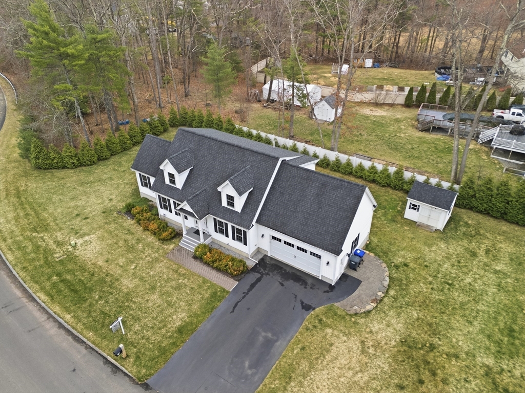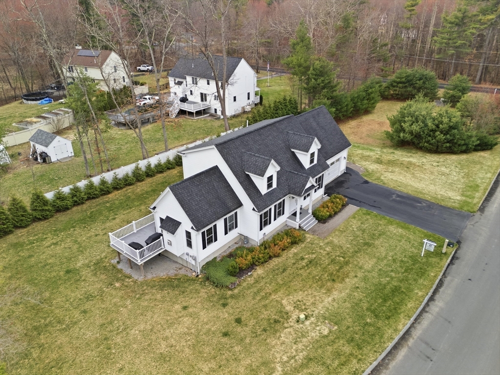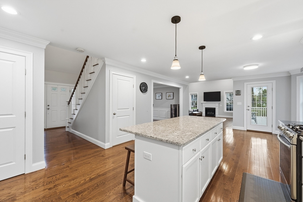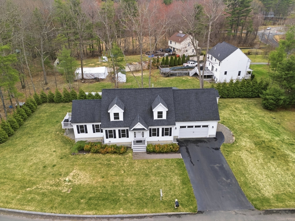 Elegant Custom Cape with Open Layout and Flexible Living Spaces. Set within a desirable subdivision, this beautiful 3-4 bedroom, 3 full bath Cape blends classic architecture with modern sophistication. The main level offers a versatile front room ideal for a private office, guest space, or potential first-floor bedroom, with a full bath nearby. The inviting family room with gas fireplace flows into a well-designed kitchen with granite countertops, center island, stainless steel appliances, and a sunlit dining area. An oversized composite wraparound deck extends the living space outdoors. Upstairs, the primary suite features an en-suite bath and walk-in closet, with additional bedrooms and second-floor laundry. Hardwood flooring and finished baths with stone-top vanities add a refined touch. Additional highlights include irrigation with a dedicated well, tankless hot water, natural gas, and town water and sewer. Convenient to Route 3, Nashua, shopping, dining, and trails.