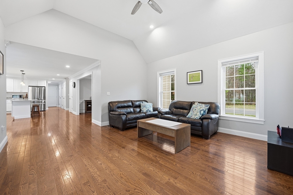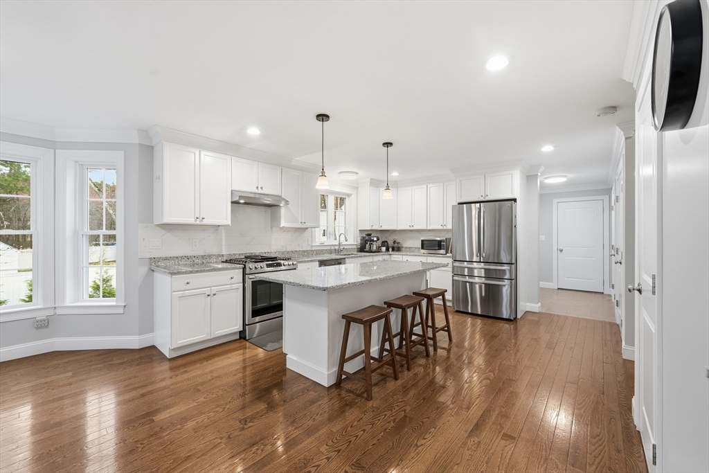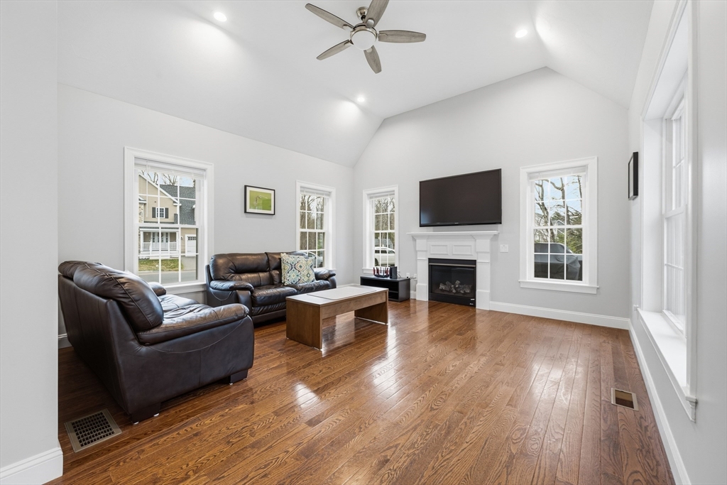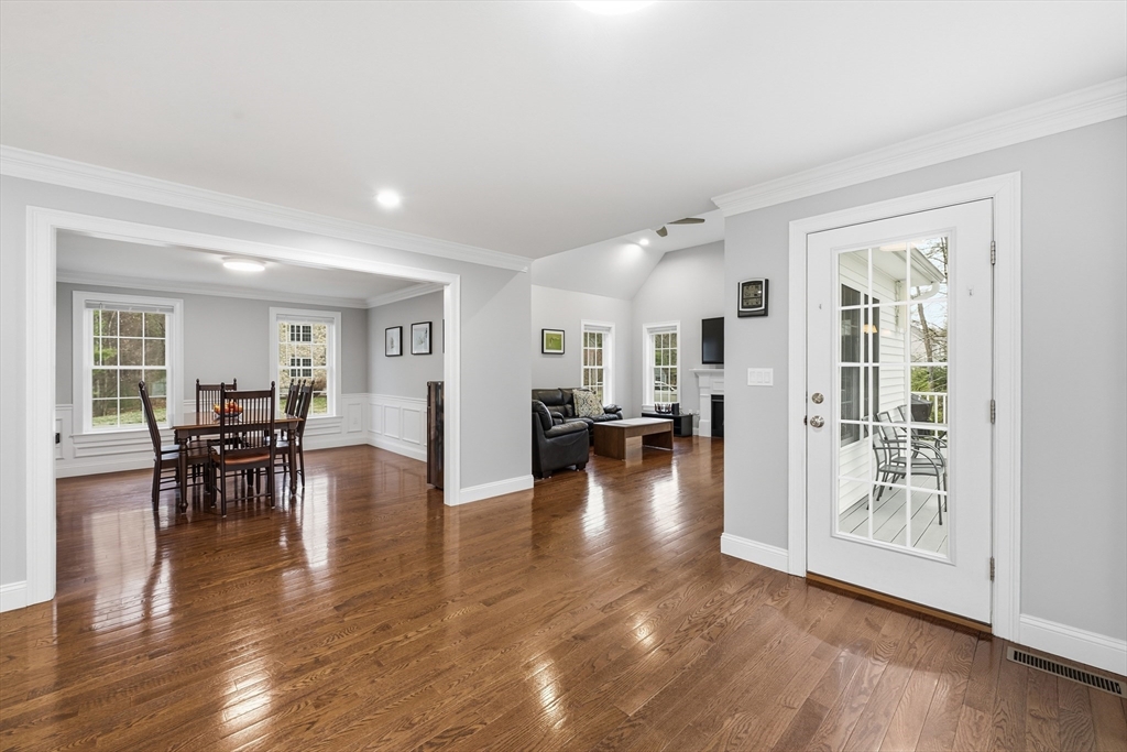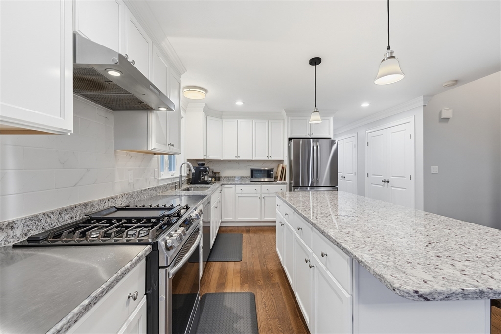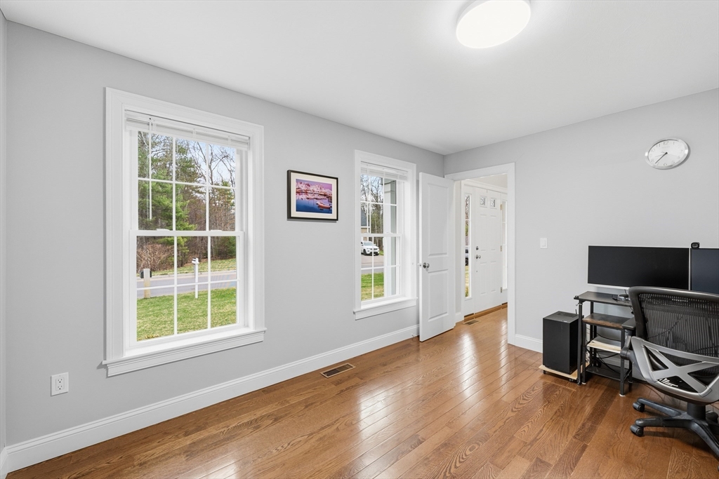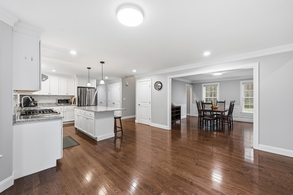 Elegant Custom Cape with Open Layout and Flexible Living Spaces. Set within a desirable subdivision, this beautiful 3-4 bedroom, 3 full bath Cape blends classic architecture with modern sophistication. The main level offers a versatile front room ideal for a private office, guest space, or potential first-floor bedroom, with a full bath nearby. The inviting family room with gas fireplace flows into a well-designed kitchen with granite countertops, center island, stainless steel appliances, and a sunlit dining area. An oversized composite wraparound deck extends the living space outdoors. Upstairs, the primary suite features an en-suite bath and walk-in closet, with additional bedrooms and second-floor laundry. Hardwood flooring and finished baths with stone-top vanities add a refined touch. Additional highlights include irrigation with a dedicated well, tankless hot water, natural gas, and town water and sewer. Convenient to Route 3, Nashua, shopping, dining, and trails.