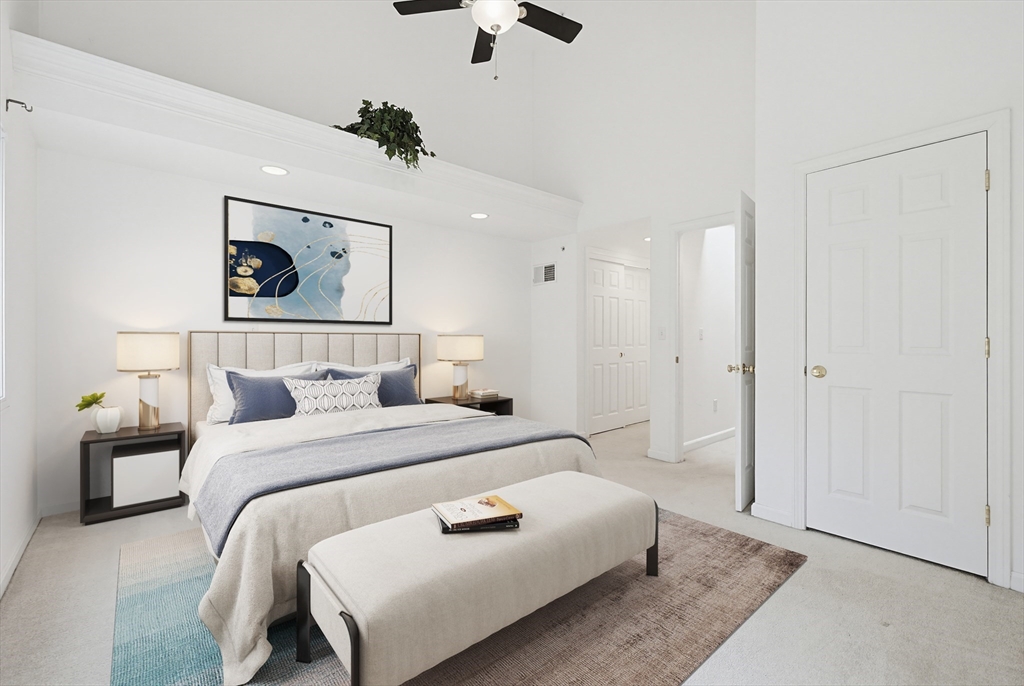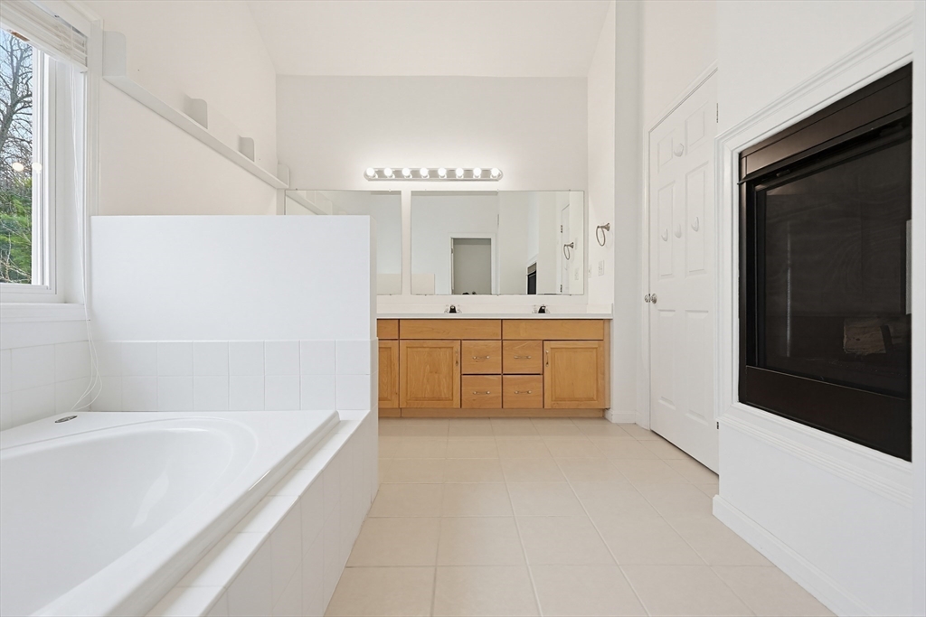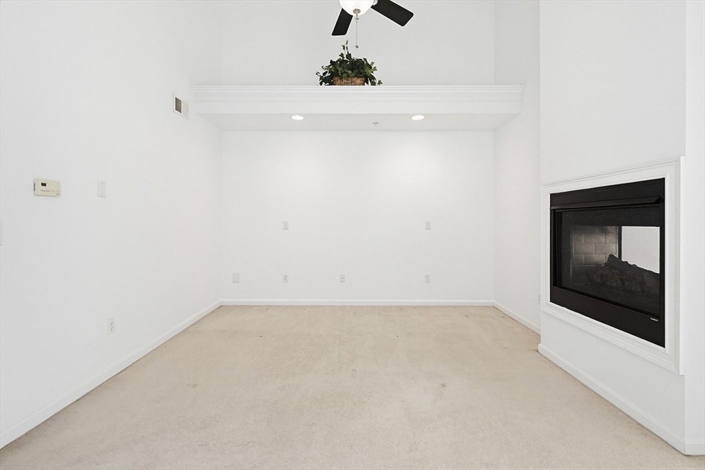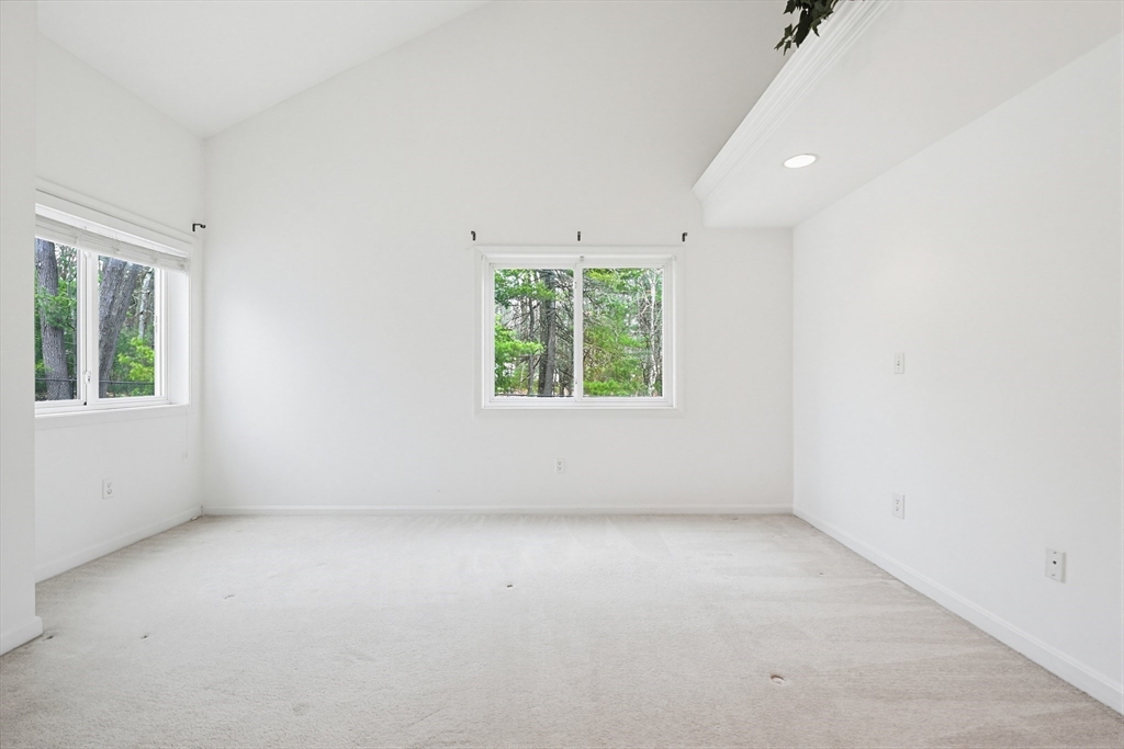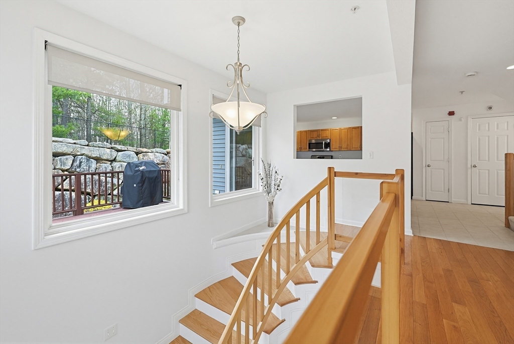 Step into this elegantly designed townhome and feel immediately at home. Ascend the curved staircase to the open main level, where dramatic windows fill the space with natural light. The living and dining areas connect beautifully, centered around a warm gas fireplace—perfect for today’s casual lifestyle. The kitchen features generous cabinetry, and gas cooking. Upstairs, the expansive primary suite offers soaring ceilings, a sunny sitting area, a dual-sided gas fireplace shared with the luxurious en-suite bath, and generous closets. A spacious second bedroom includes its own bath, cathedral ceiling, and ceiling fan. The versatile loft is ideal for an office or hobby space. The finished lower-level family room offer a quiet respite.