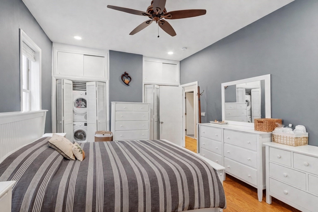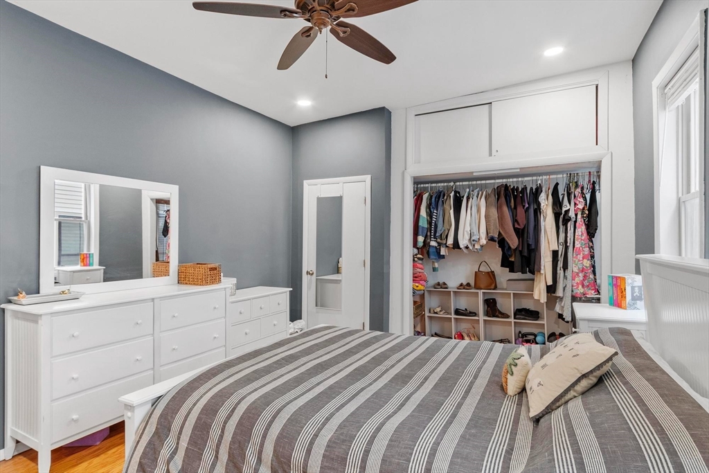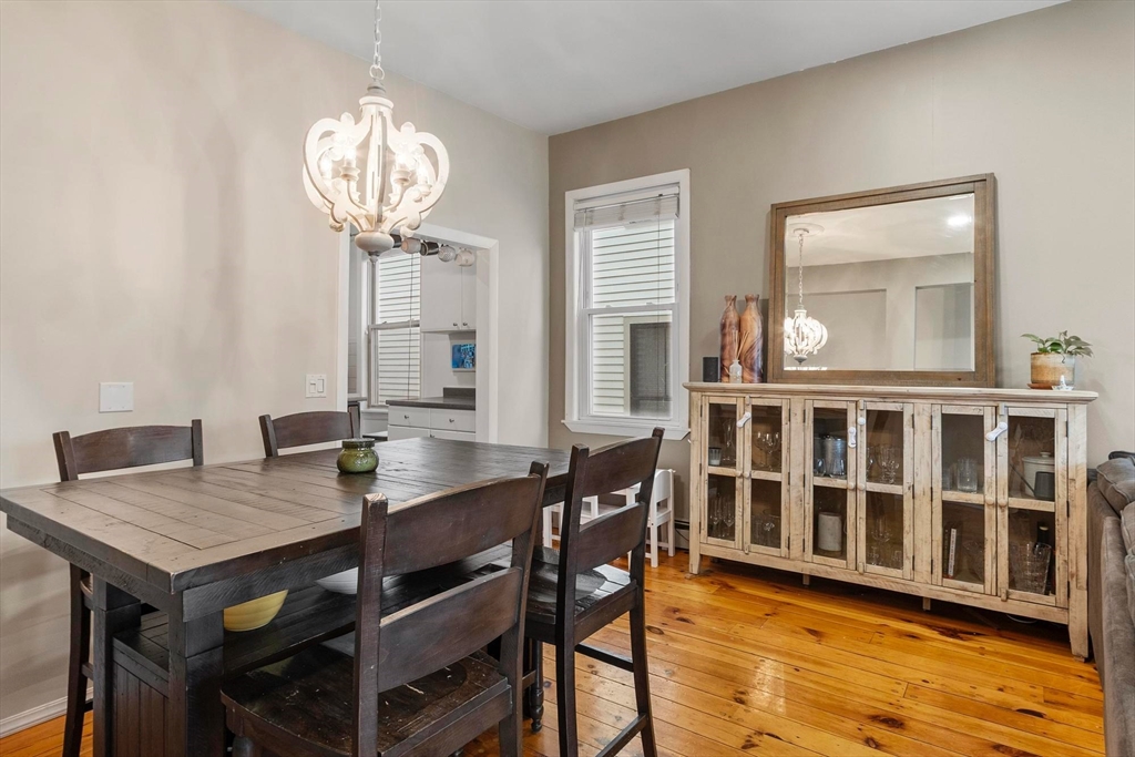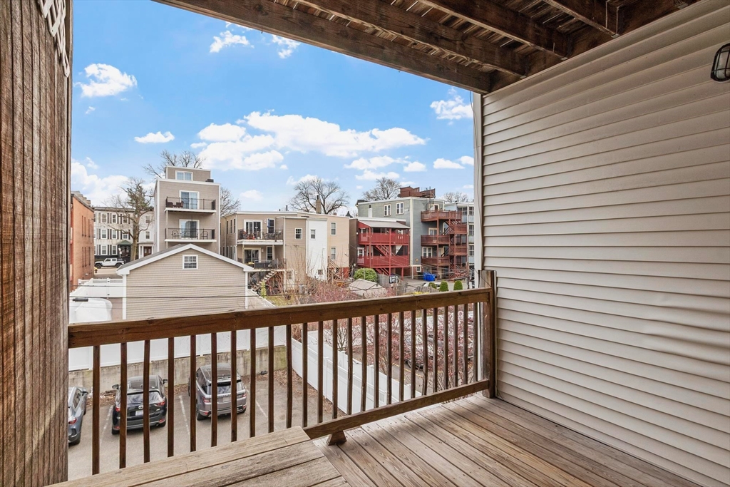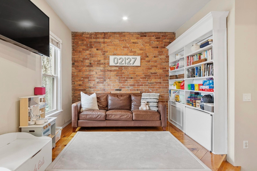 Perfectly set in South Boston’s coveted East Side, this approximately 1,065-square-foot 2-bedroom, 1.5-bath home offers a floor-through layout with windows on three sides, high ceilings, and restored heart pine floors for a warm, effortless feel. An elevated study with exposed brick and custom built-ins creates a great workspace or extended living area, while the oversized primary suite with double closets is balanced by a well-scaled second bedroom and updated baths. The kitchen offers excellent cabinetry, gas cooking, and generous counter space, flowing into the main living and dining areas for easy everyday living and entertaining. A sliding glass door opens to a private approximately 11'x11' deck, extending the living space outdoors. Additional highlights include deeded parking, in-unit laundry, basement storage, and proximity to M Street Beach, Castle Island, parks, the Harborwalk, East Broadway’s cafés and restaurants, and the #7 bus for easy downtown and Seaport access.