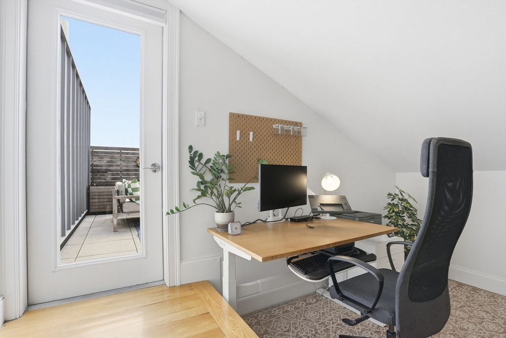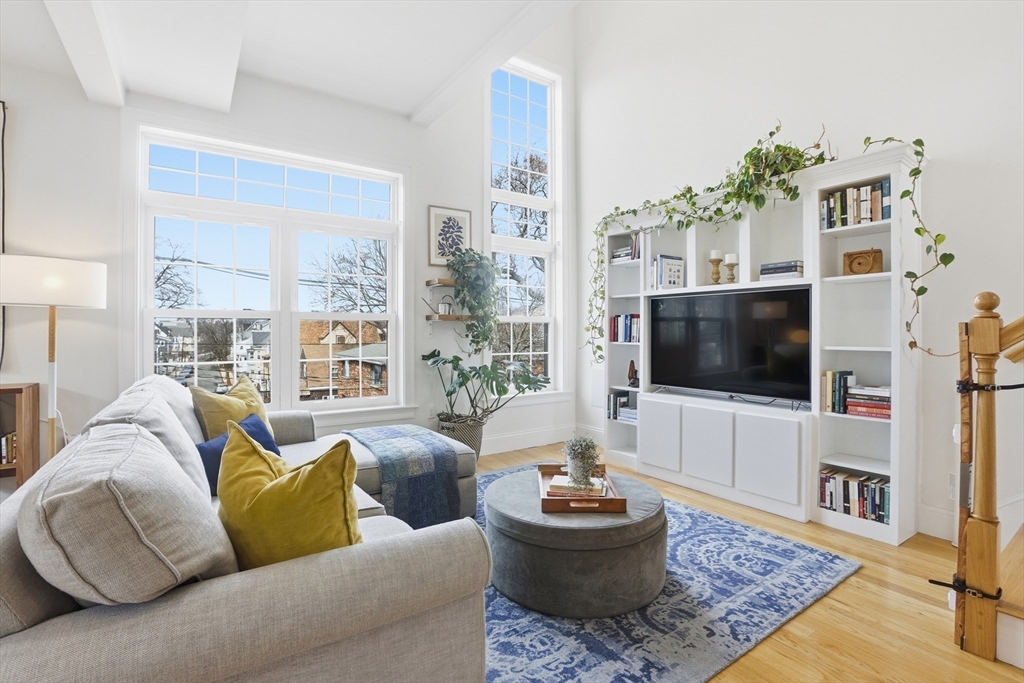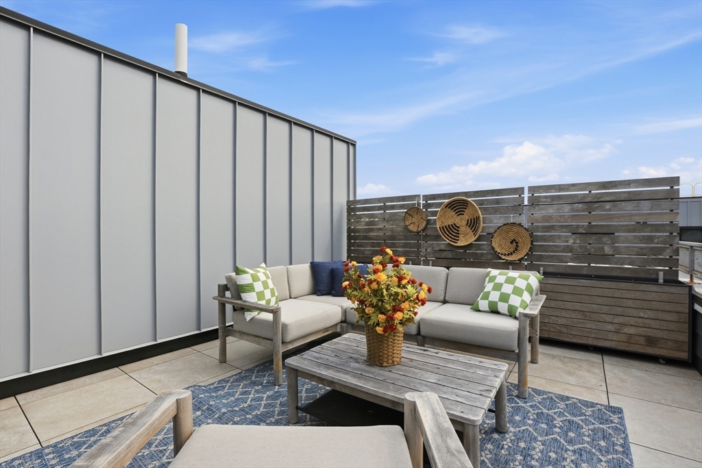 Stunning, young penthouse in a great Somerville location - walk to everything, access to Somerville Community Path and the T is 1 block away! The largest unit in building features a modern and elegant design and finishes with soaring ceilings in the living area where natural light floods inside. Open floorplan with wood floors throughout, and stylish bathrooms with tiled floors and quartz counters. The open kitchen features stainless appliances and white quartz counters, and the space flows into the dining and living areas, with a Juliet balcony. The loft is a great flex space for an office &/or a guest, and the large rooftop deck is amazing! Here you have privacy while still being in the center of the action. You'll love entertaining here, and being so close to all the amenities makes it a breeze for everyday living. Includes 1 off-street parking space and a large, private storage room in the basement.
