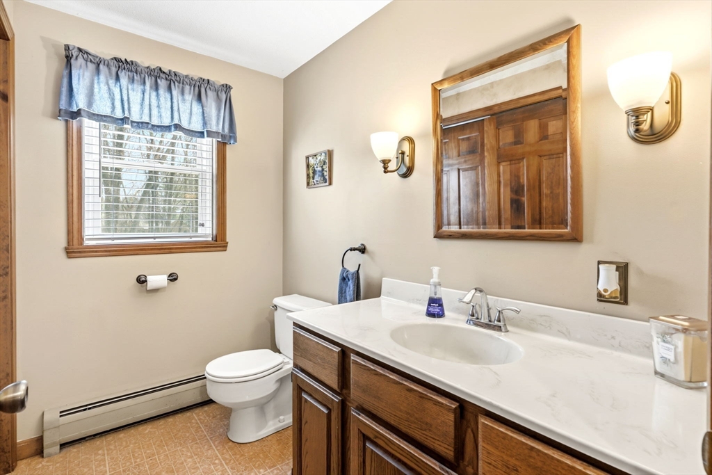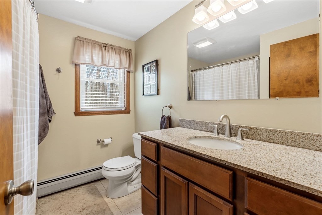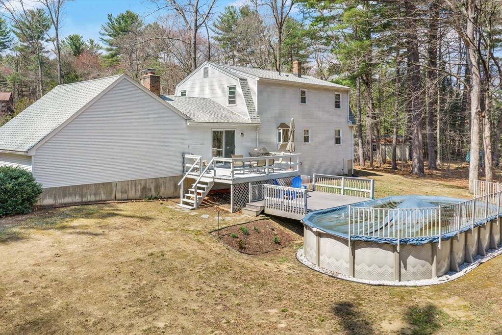 Lovingly cared for and well maintained home on tranquil cul-de-sac in desirable Southampton neighborhood. The light filled family room has cathedral ceilings, a wood burning fireplace and sliders leading to the deck overlooking the above ground pool and spacious backyard. The kitchen with island opens to dining room with hardwood floors. Formal, spacious living room and half bath complete the first floor. The second floor features three bedrooms, indulging a primary bedroom with private bath and second full bathroom. Recent improvements include roof (2021 APO), most windows and boiler. A warm and inviting home in excellent location that is tucked away in a peaceful setting while still close to everything.