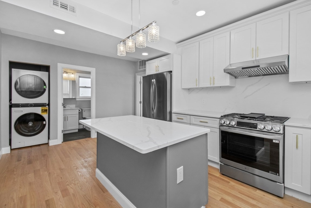 66 Stanley St offers a stunning new construction condo tucked away on a quiet cul-de-sac in Dorchester. This 2nd floor 3 bed, 2 bath home features a spacious open concept layout with a modern brand new kitchen complete with a large island and seating, perfect for entertaining. Additional highlights include brand-new kitchen and baths with luxury tile and high-end fixtures, stainless steel appliances, central A/C, gleaming hardwood floors, recessed lighting, basement storage and in-unit laundry. 1 off street parking space. A rare opportunity to own a beautifully designed, move-in-ready home in a prime Dorchester location.
