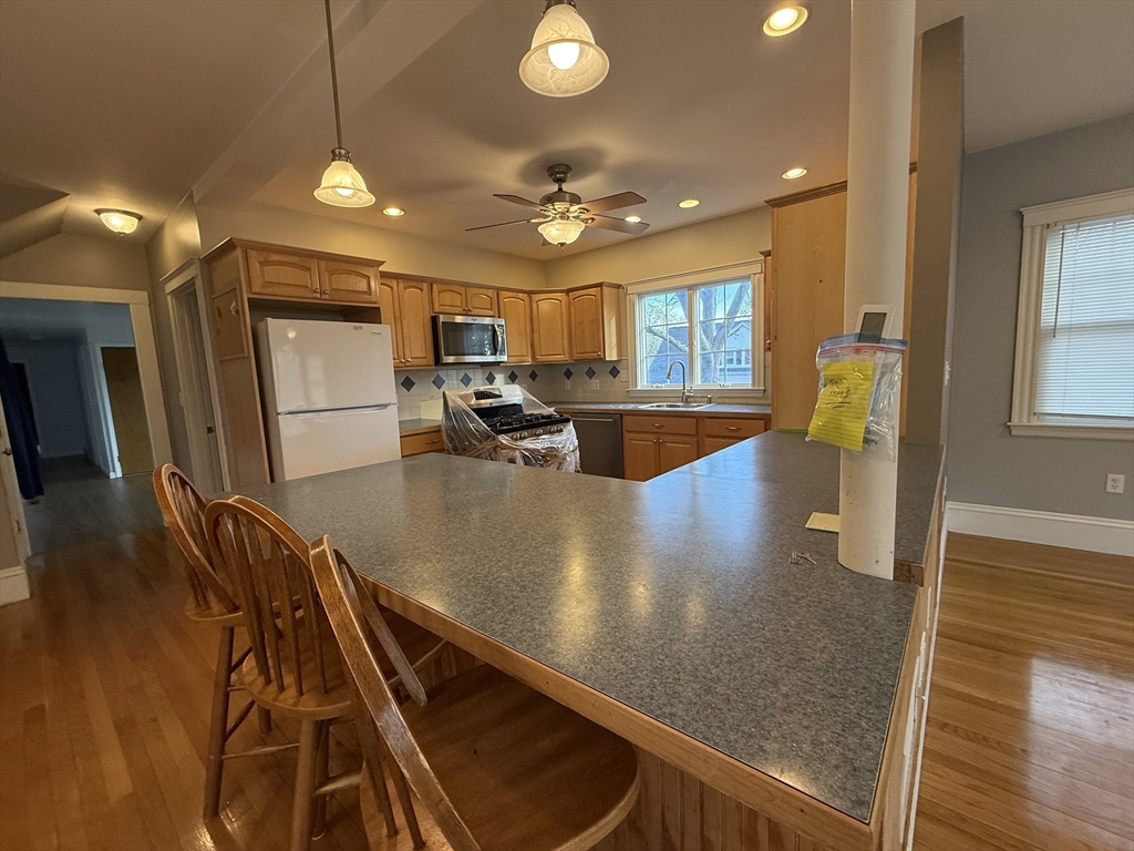 Spacious renovated 3BR apartment on a quiet street, conveniently located near Rt 18, South Shore Hospital, Rt 3, The Weymouth Club, restaurants and more. The unit includes a large addition with open floor plan between the living, dining and kitchen. There is a gas fireplace. All bedrooms are spacious and there is a very large bedroom on the second floor with a full bath. Extra storage room in the basement. Enjoy and entertain in the large yard. Plenty of off-street parking. Laundry hook ups. Tenants will need to purchase their own machines. First and security required. 700+ Credit score, good references, proof of employment, copy of photo ID all required. No pets, no exceptions.