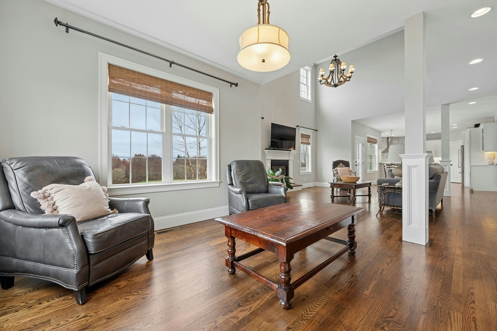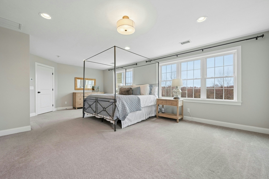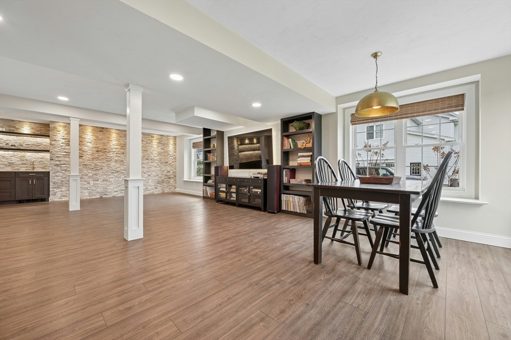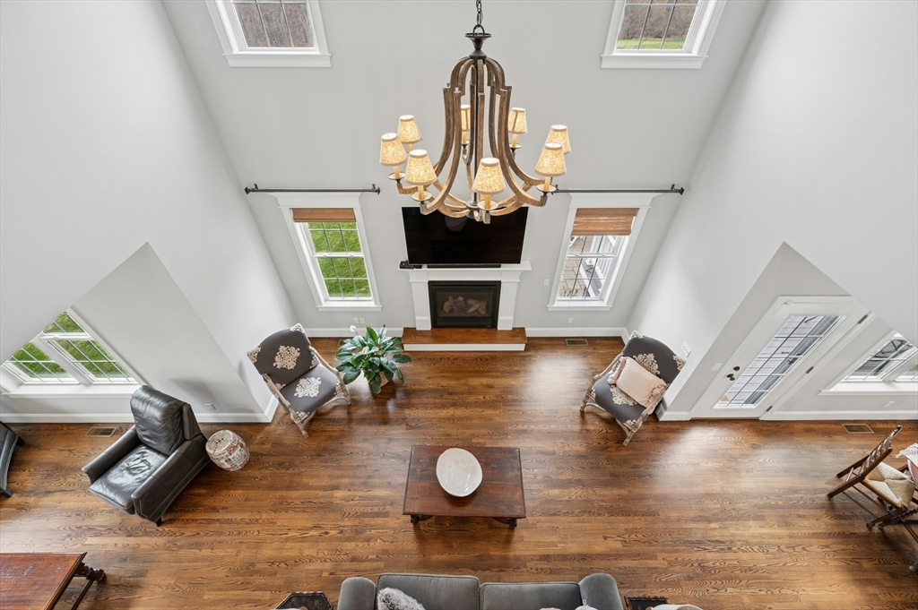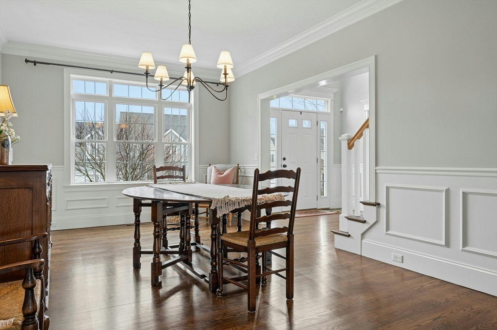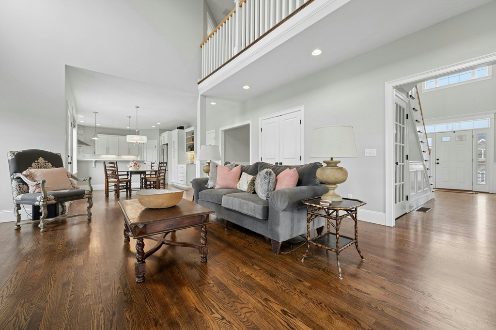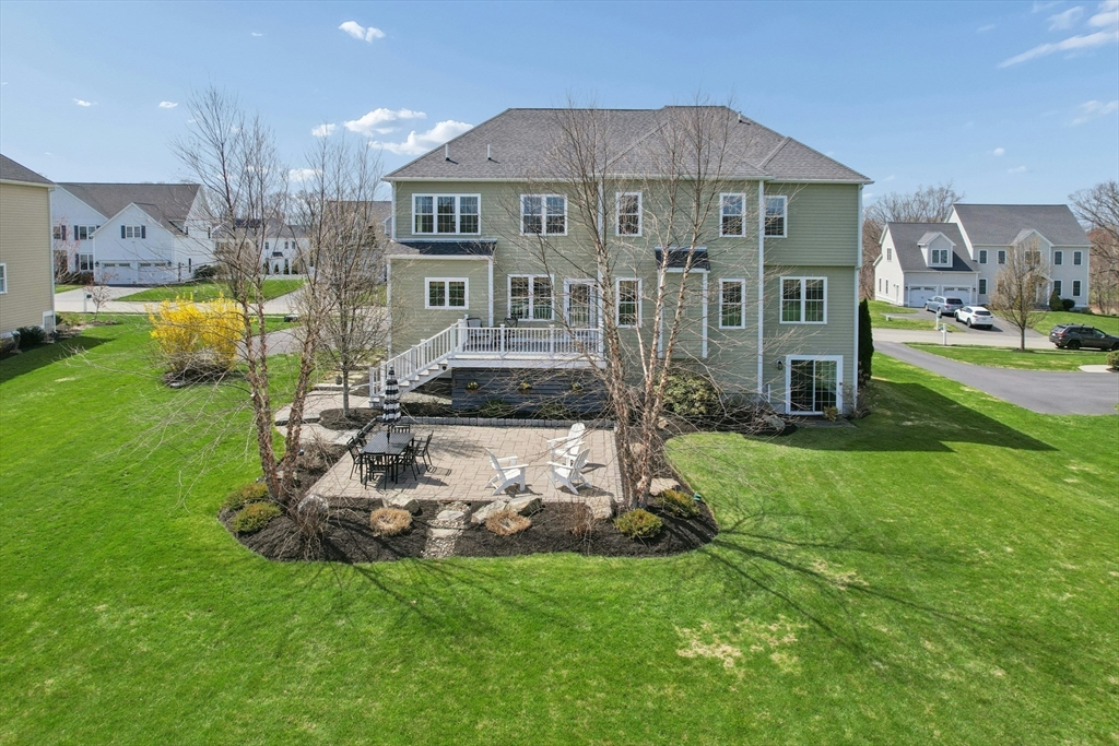 Situated in the Upper Loop of Highfields Golf & Country Club, this beautifully maintained, one-owner Colonial offers 4 bedrooms, 3.5 baths and shows like-new. A grand two-story foyer welcomes you, featuring French doors that open to a private office and an expansive dining room ideal for both everyday living and special gatherings. The immaculate eat-in kitchen w/ marble backsplash and quartz countertops flows seamlessly into a sun-filled two-story family room with fireplace, all overlooking a professionally landscaped backyard with water views of the 7th hole. Upstairs, you’ll find four spacious bedrooms, a laundry room with custom cabinetry, and a generously sized primary suite complete with dual walk-in closets and a bright, elegant bath with extended vanity and corner soaking tub. The finished walk-out lower level provides over 1,000 square feet of living space, featuring a large living area, wet bar, home gym, and a ¾ bath, perfect for entertaining or relaxing.