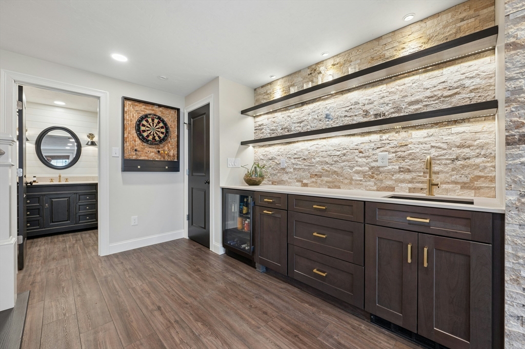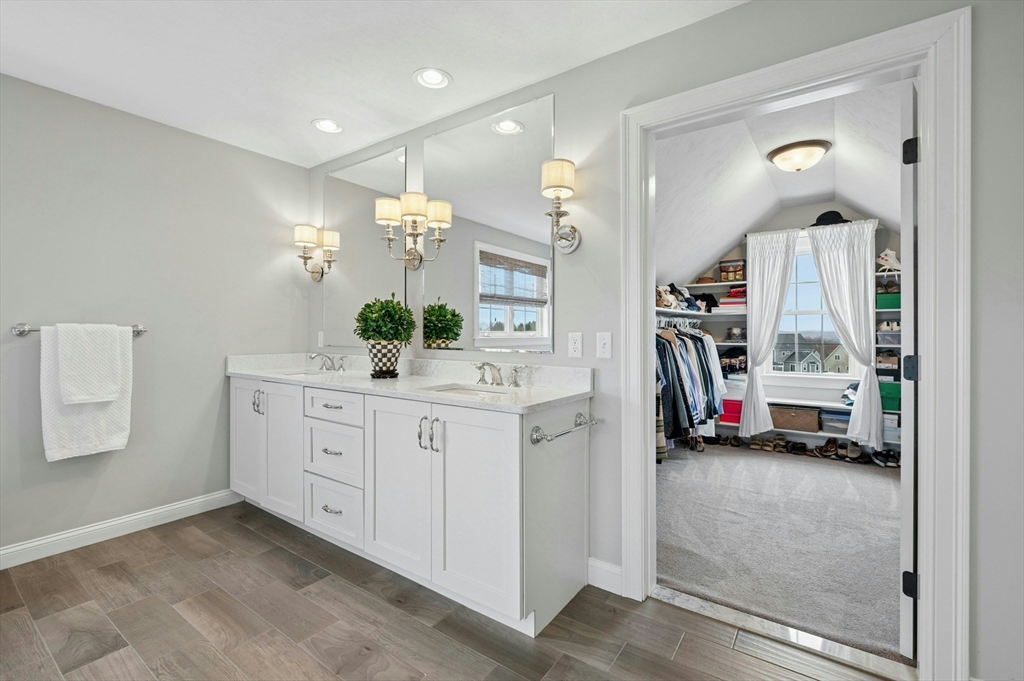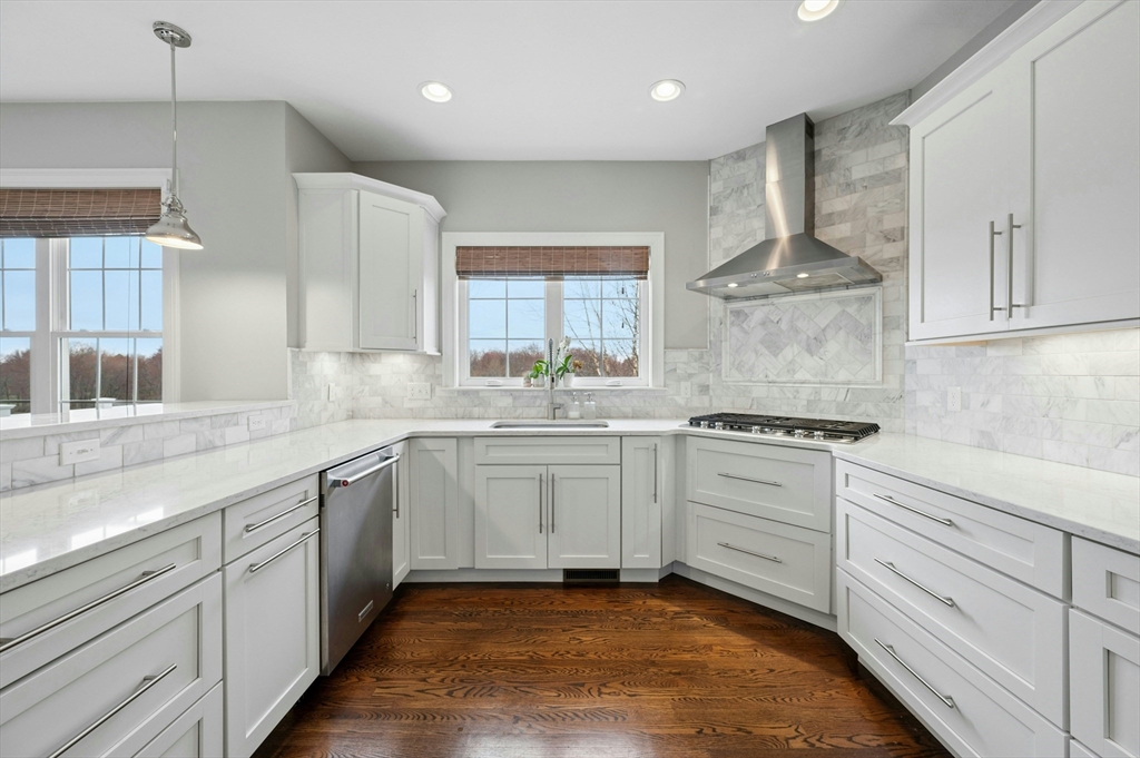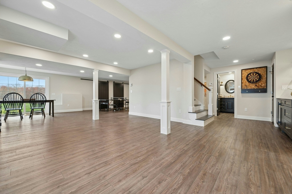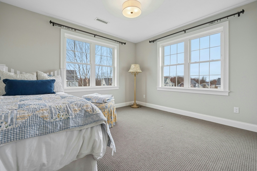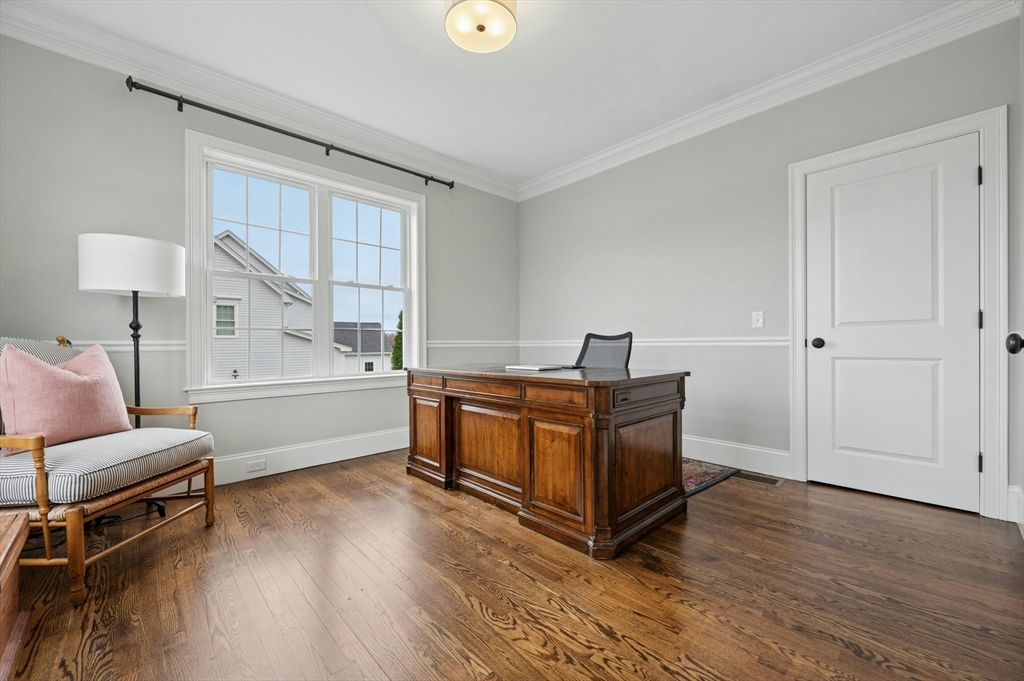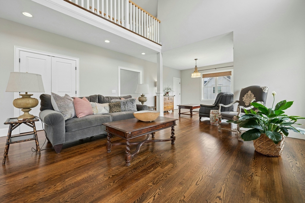 Situated in the Upper Loop of Highfields Golf & Country Club, this beautifully maintained, one-owner Colonial offers 4 bedrooms, 3.5 baths and shows like-new. A grand two-story foyer welcomes you, featuring French doors that open to a private office and an expansive dining room ideal for both everyday living and special gatherings. The immaculate eat-in kitchen w/ marble backsplash and quartz countertops flows seamlessly into a sun-filled two-story family room with fireplace, all overlooking a professionally landscaped backyard with water views of the 7th hole. Upstairs, you’ll find four spacious bedrooms, a laundry room with custom cabinetry, and a generously sized primary suite complete with dual walk-in closets and a bright, elegant bath with extended vanity and corner soaking tub. The finished walk-out lower level provides over 1,000 square feet of living space, featuring a large living area, wet bar, home gym, and a ¾ bath, perfect for entertaining or relaxing.