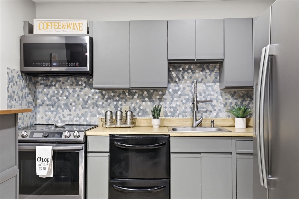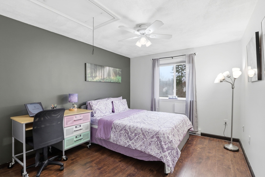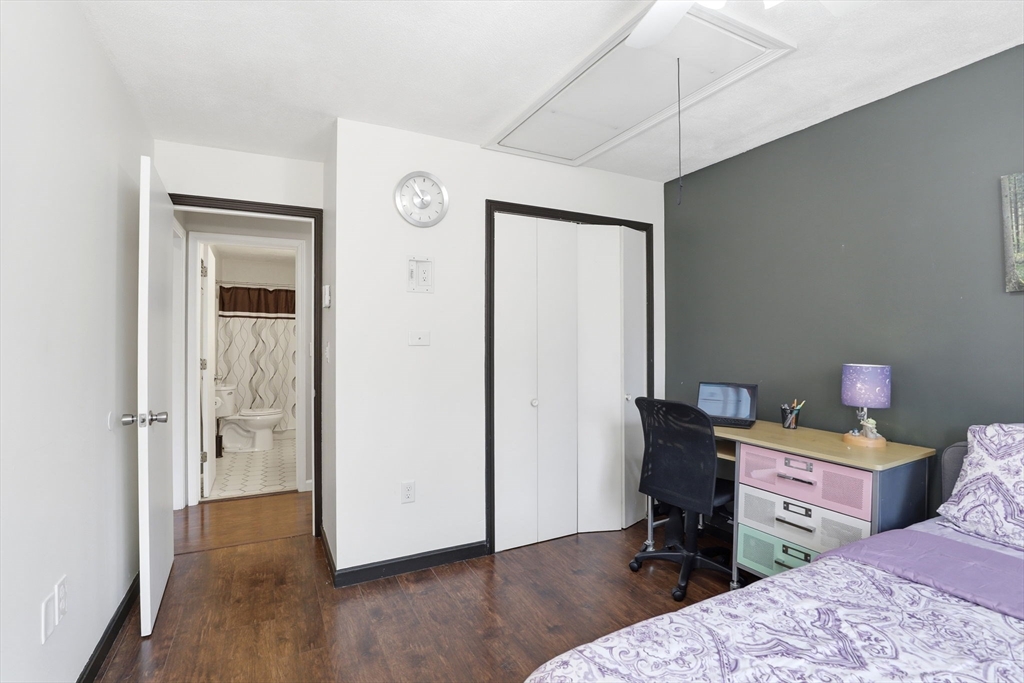 This attractive 2 bedroom with 2 full bath home is in desirable Edgewood Condominiums. As you walk into the unit, the living room offers a comfortable setting, enhanced by a warming fireplace, The living room opens to the dining room and a fully appliance kitchen. The kitchen includes double drawer dishwasher, smoothy top smart bake stove, microwave and stainless refrigerator. Both bedrooms are a good size with the main bedroom having its own full bath. This top floor unit has great storage with a private attic and a very large storage unit in the basement. Other features include luxury laminate flooring, built in A/C units, recess lighting, in unit laundry,2 open parking spots, guest parking and much more. The Complex has an expansive lawn and is a great neighborhood to walk! Minutes to shopping, town center, schools, Memorial Park, library, Senior Center, commuter train and major highways!