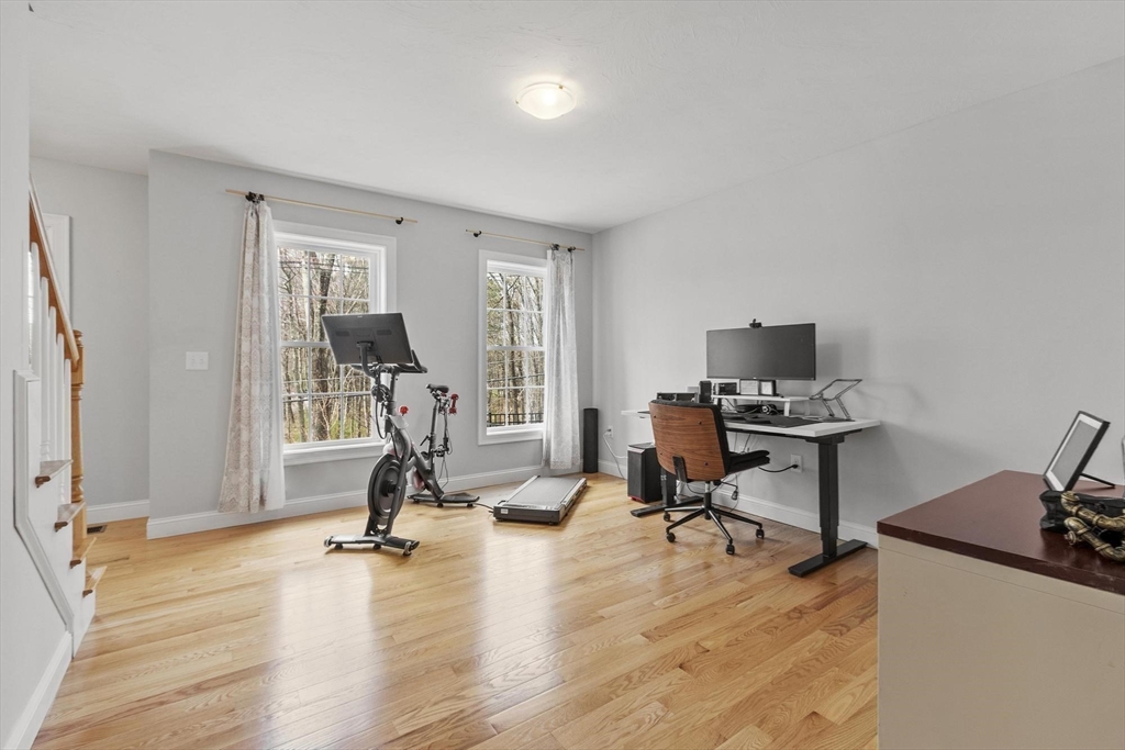 Seller relocation creates an opportunity to get into this 2019 build before the summer! Hardwood and tile flooring throughout the first floor, propane fireplace in the family room, and a newly added coffee bar between the kitchen and dining room. Kitchen with quartz countertops, center island, pantry and stainless steel appliances. Separate living room/office and formal dining room. Primary suite with two walk-in closets and main bathroom with double vanity and tiled shower. High efficiency propane heat, central A/C, town water and sewer. 2-car garage and generator connection. Back deck leads to fenced yard. Property abuts Leominster State Forest (4,000+ acres). Less than a mile to Wachusett Mountain Ski Area and 2 miles to Route 2. Within easy driving distance to Devens, Worcester and Wachusett Station MBTA commuter rail (with North Station just over an hour away). Crocker Pond town beach and 4 golf courses within a 10-minute drive. Ashburnham Westminster School District.