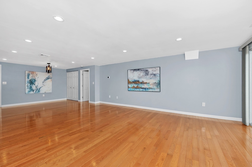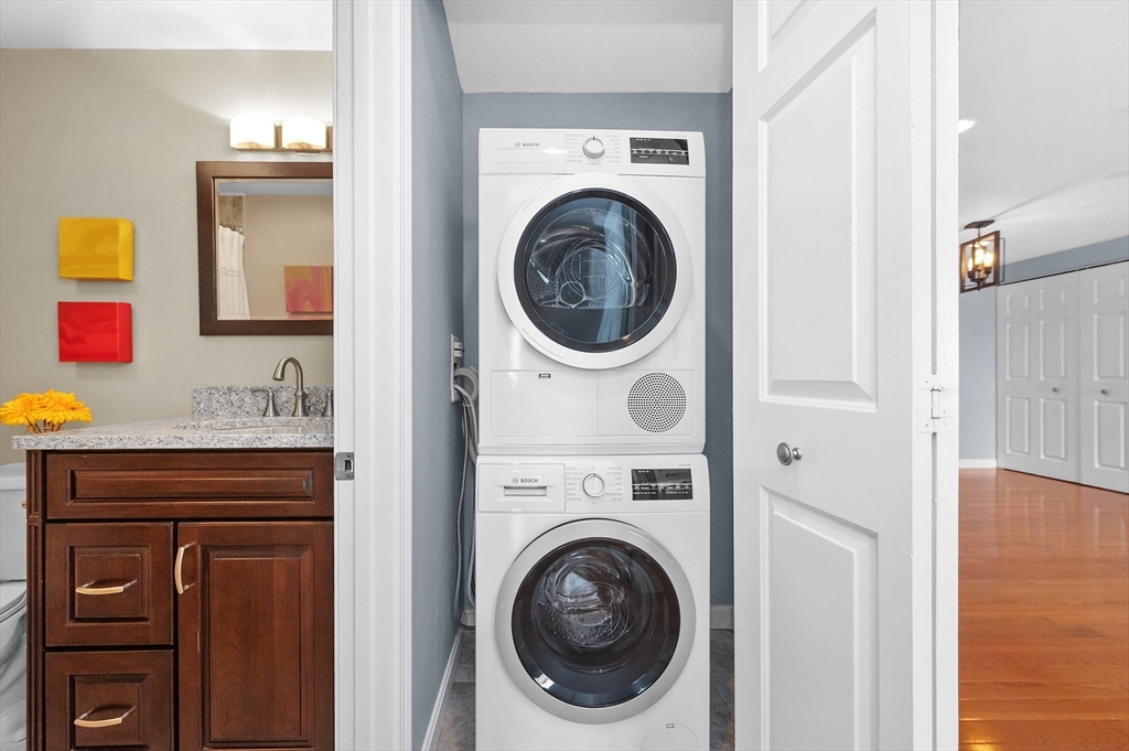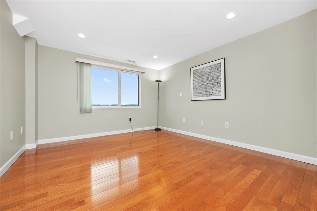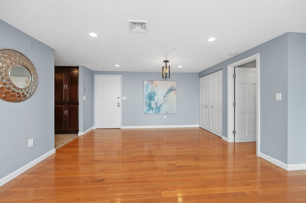 Beautifully reimagined from top to bottom, this 7th floor residence blends modern luxury w/effortless convenience. Enjoy an airy open layout framed by tranquil treetop views. The custom wrap around kitchen impresses w/an abundance of slow close cherry cabinetry, generous pantry storage, granite counters, stainless steel appliances (new fridge 2025), tile backsplash & elegant pendant & under cabinet lighting. Throughout the home, you’ll find gleaming, solid hardwood floors, spa like baths, brand new HVAC (2025) w/Nest thermostat, updated windows & slider (2019), smooth ceilings & recessed lighting in every room. A tiled deck, custom blinds & an in-unit Bosch ventless washer/dryer, basement storage & rarely found TWO GARAGE SPACES plus ONE outdoor spot. Perfectly positioned for commuters & lifestyle seekers alike—just moments from the Wellington Orange Line, Mystic River Reservation & Marina, Station Landing & the energy of Assembly Row. Residents enjoy an outdoor pool, rec room & sauna.
