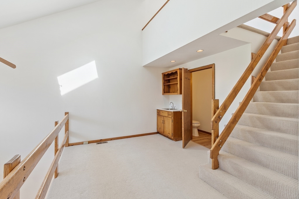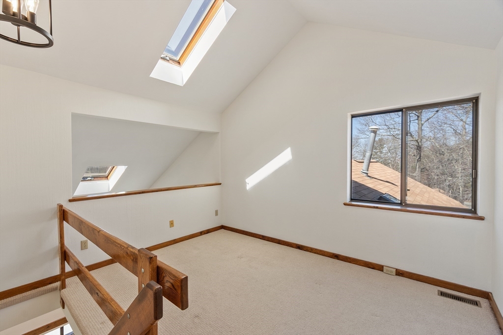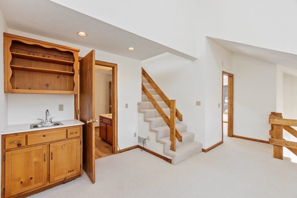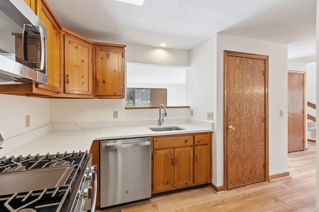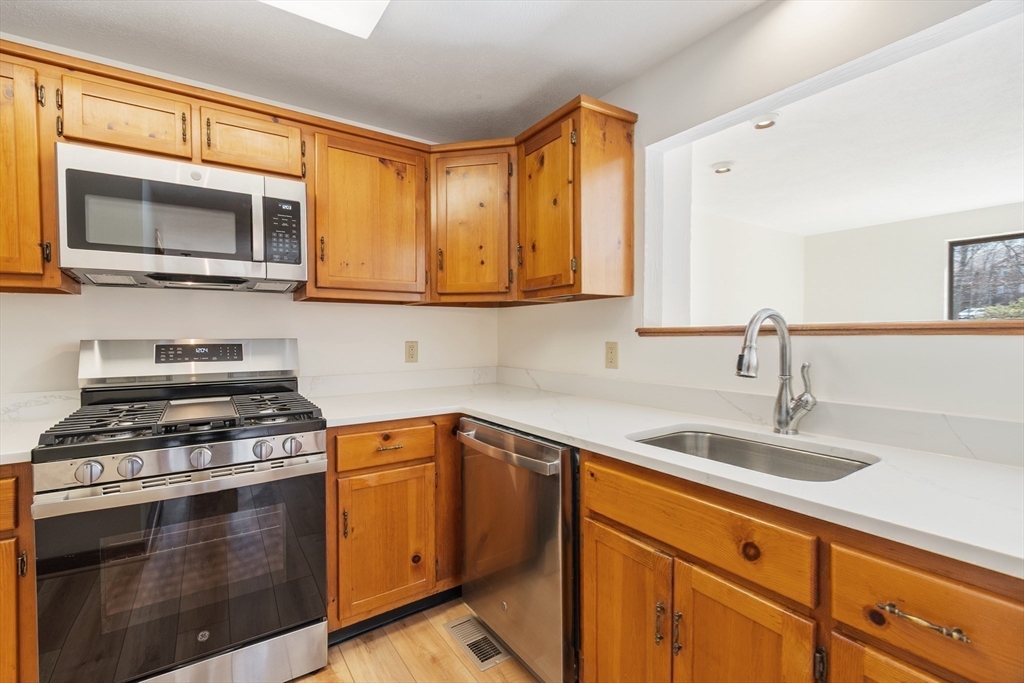 Bright, open & spacious townhouse w/ many new updates. All new GE stainless steel kitchen appliances (range, dishwasher, refrigerator & microwave). New COREtec LVP flooring in diningrm, kitchen, full bath & half bath. New quartz counter tops in kitchen & half bath. New stainless steel kitchen sink. New carpeting on entry stairs & in livingrm. New sink in half bath. New sink faucets in kitchen, half bath, full bath & wet bar. New light fixtures in foyer, dining room & upper loft. Freshly painted interior walls & ceilings. Skylit lower loft w/ wet bar is an inviting space for relaxing & socializing. Skylit upper loft is ideal flex space for a study, hobbies, or yoga room. Garage & one exterior parking space. Washer & dryer incl. Southeast exposure in livingrm & Southwest exposure in diningrm. Enjoy resort style living at West Meadow Hill! Listing agent is married to Seller. Seller has MA real estate salesperson license. Seller has never lived in the property. Property sold "as is".