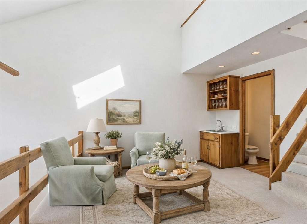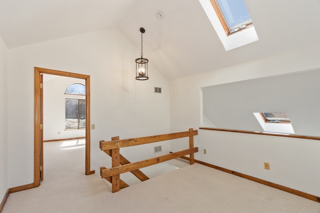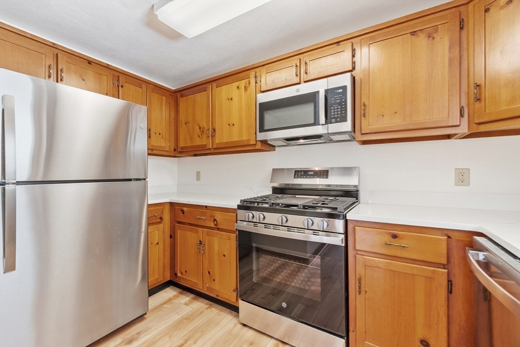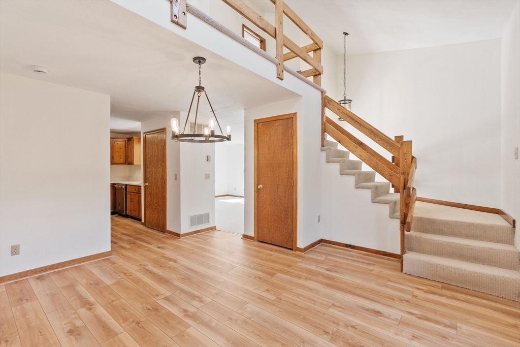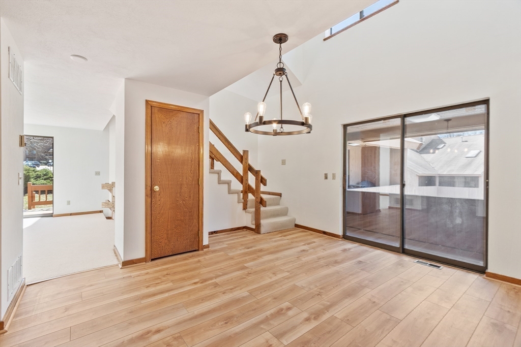 Bright, open & spacious townhouse w/ many new updates. All new GE stainless steel kitchen appliances (range, dishwasher, refrigerator & microwave). New COREtec LVP flooring in diningrm, kitchen, full bath & half bath. New quartz counter tops in kitchen & half bath. New stainless steel kitchen sink. New carpeting on entry stairs & in livingrm. New sink in half bath. New sink faucets in kitchen, half bath, full bath & wet bar. New light fixtures in foyer, dining room & upper loft. Freshly painted interior walls & ceilings. Skylit lower loft w/ wet bar is an inviting space for relaxing & socializing. Skylit upper loft is ideal flex space for a study, hobbies, or yoga room. Garage & one exterior parking space. Washer & dryer incl. Southeast exposure in livingrm & Southwest exposure in diningrm. Enjoy resort style living at West Meadow Hill! Listing agent is married to Seller. Seller has MA real estate salesperson license. Seller has never lived in the property. Property sold "as is".