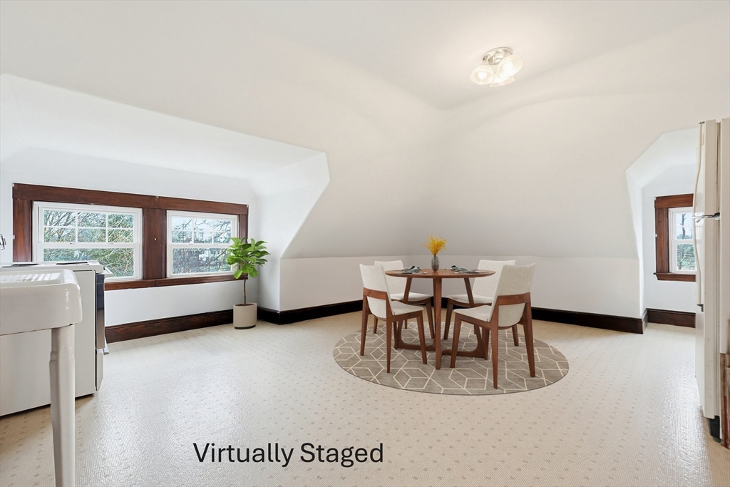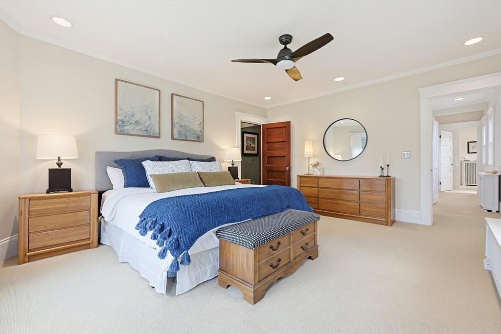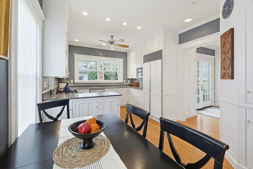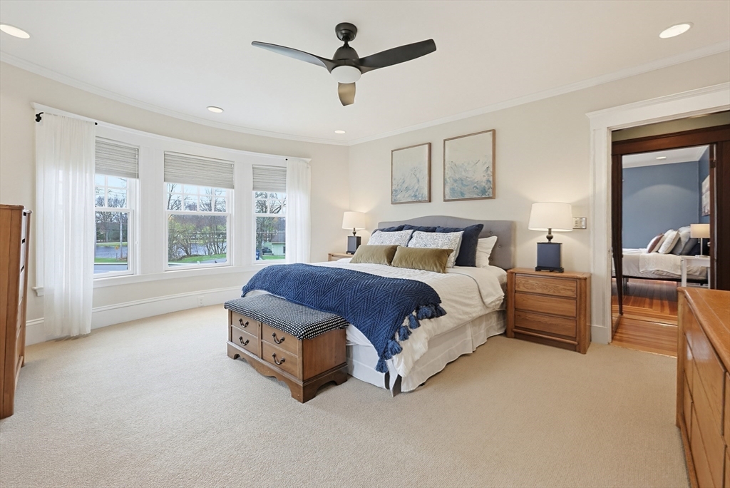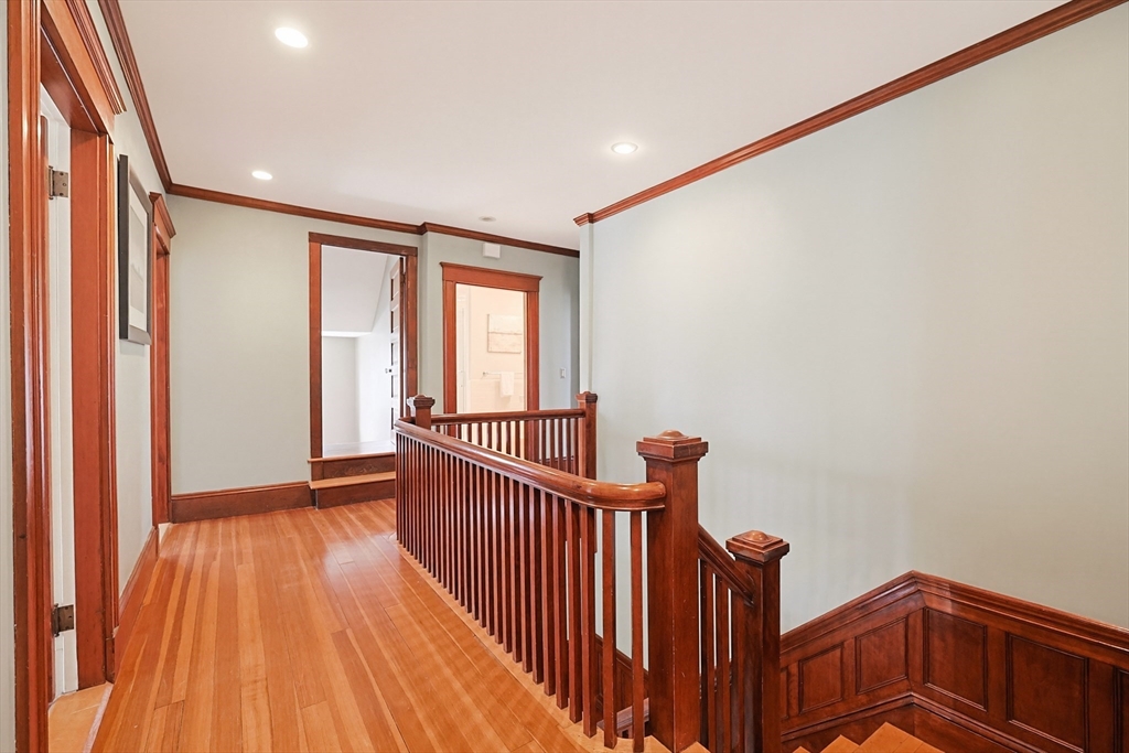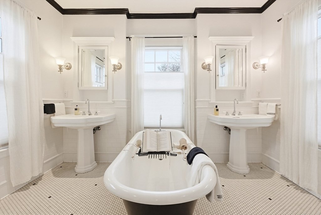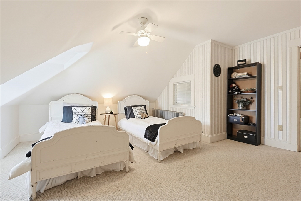 Welcome to Mansfield's iconic "Mears Mansion," a landmark Victorian in the heart of downtown overlooking Fulton's Pond. This 5 bedroom, 4.5 bath home seamlessly blends historic grandeur with modern comfort. Timeless details abound-stained glass, intricate moldings, soaring 9' ceilings, hardwood floors, two fireplaces and a stunning Schonbek chandelier. The updated kitchen features a Sub-Zero refrigerator, while central air, a sauna and a private au pair/in-law suite add everyday luxury. Enjoy serene water views and exceptional outdoor living with a farmer's porch, deck, paver driveway and patio, gazebo, firepit and expansive level yard. A spacious Carriage House/Garage offers exciting potential for expansion. Several updates over the years. With 2 staircases, sprinkler system, town water/sewer, a finished basement and easy access to downtown, commuter rail and bike paths, this storied home-featured in many commercial shoots-is a rare opportunity to own a true Mansfield treasure.