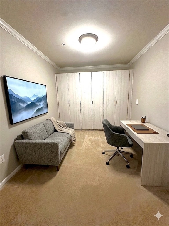 Experience a sophisticated blend of comfort and convenience at Pennington Crossing. This well maintained one-bedroom plus den/office unit offers a seamless lifestyle in a highly desirable location. Situated on the ground level directly off the main lobby, this residence provides unparalleled ease of access, The entry foyer unit features in-unit laundry area, positioned opposite a versatile den—ideal for a home office or guest space, wIth custom built cabinets. Eat-in kitchen is designed for functionality, featuring granite countertops, premium tall cabinetry, and center island that offers additional seating. The expansive living room is bathed in natural light and opens onto a private balcony with serene views of the community gazebo, walking paths, and wooded perimeter. A private alcove leads to a spacious bedroom and a full bath. The Vibrant Walpole Center is nearby, providing easy access to local dining, shopping, public library and MBTA commuter rail to Boston.
