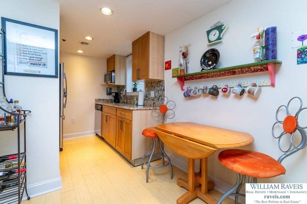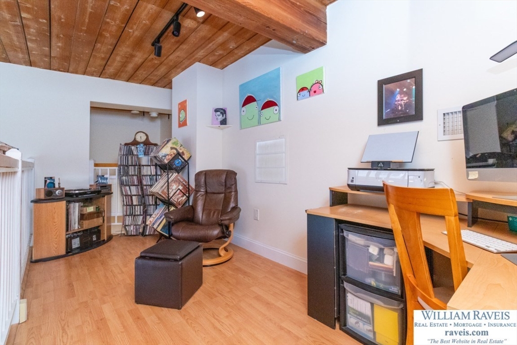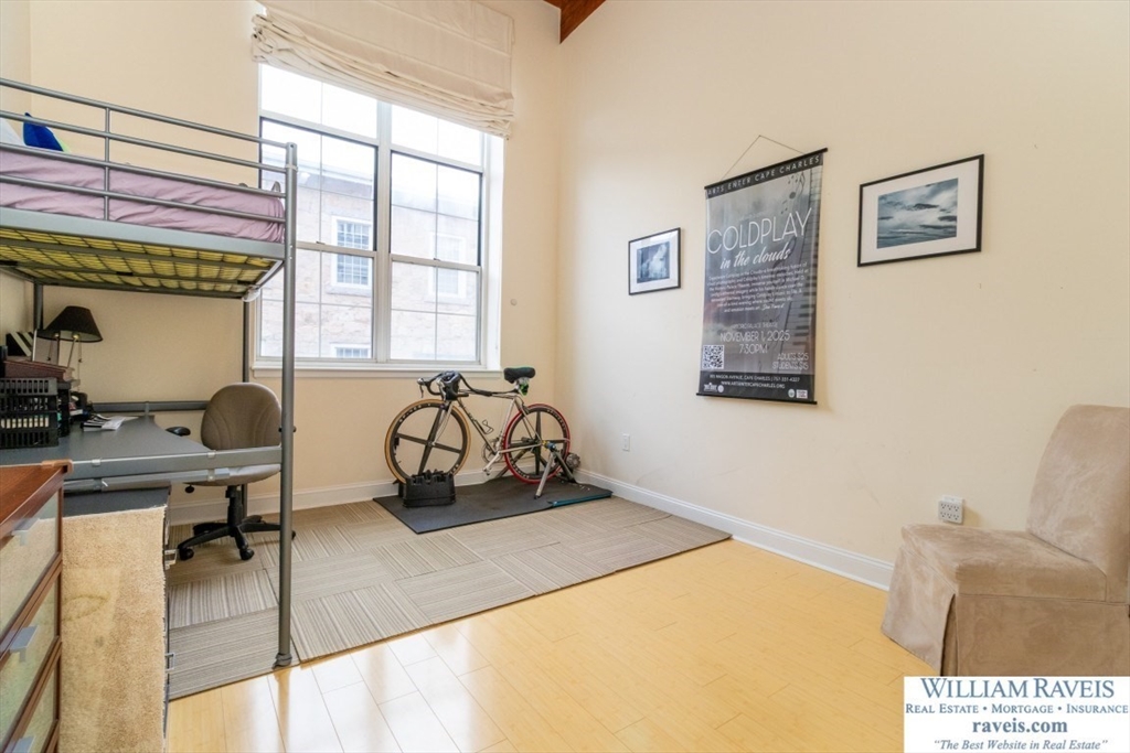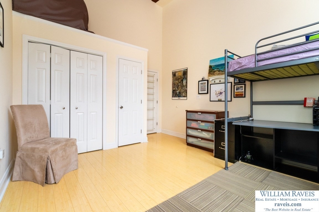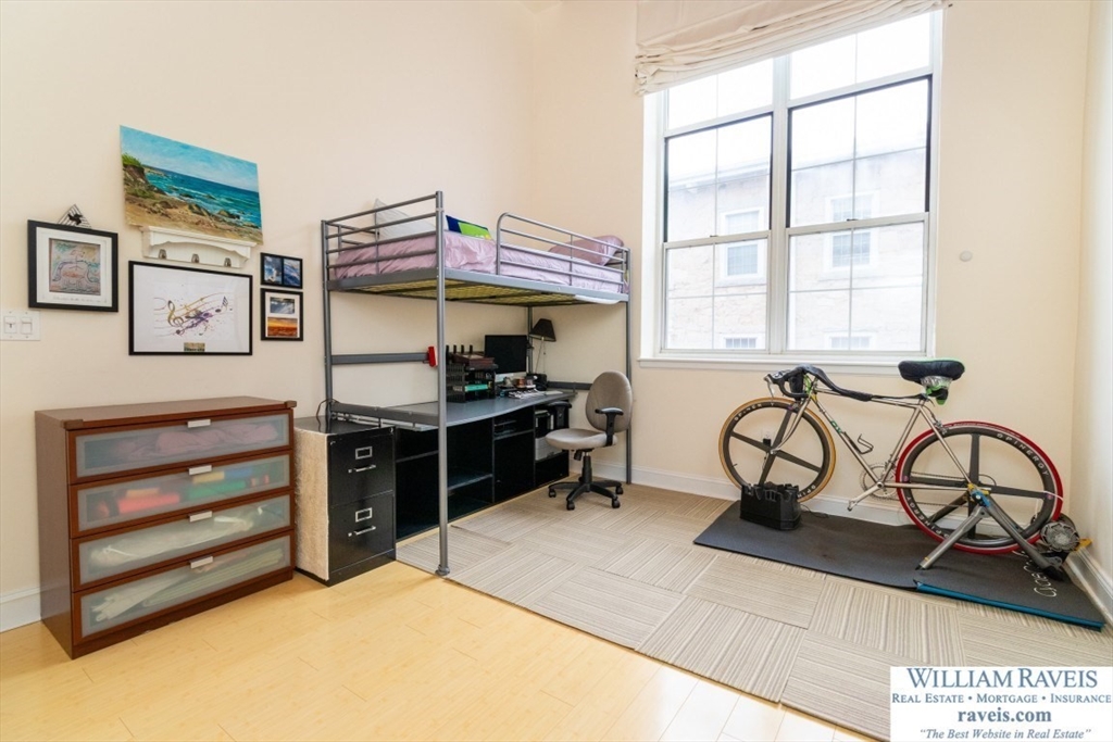 Rare opportunity for a Loft 1 bedroom corner unit at Mother Brook Condominium, an Historic Mill and the oldest man made water way in the country! This unit features soaring ceilings, natural light, wood beams, and exposed brick. Meticulously cared for condo and it shows, with beautiful bamboo floors throughout. There is a wood burning fireplace in the living room and floor to ceiling windows on each side. Stairs lead to the open loft in the living room; a perfect space for an office, den, reading nook or guest area with day bed. The updated galley kitchen shines with granite counters, stainless steel appliances, and exterior vent hood. Newer stack washer and dryer in unit. Generous closet space. Central Air. One deeded parking space in the lot outside your door. Amenities include indoor heated swimming pool, exercise room, club house, tennis courts, and more! Convenient location - easy access to Routes 95/93, commuter rail, and shopping & dining at Legacy Place and University Station