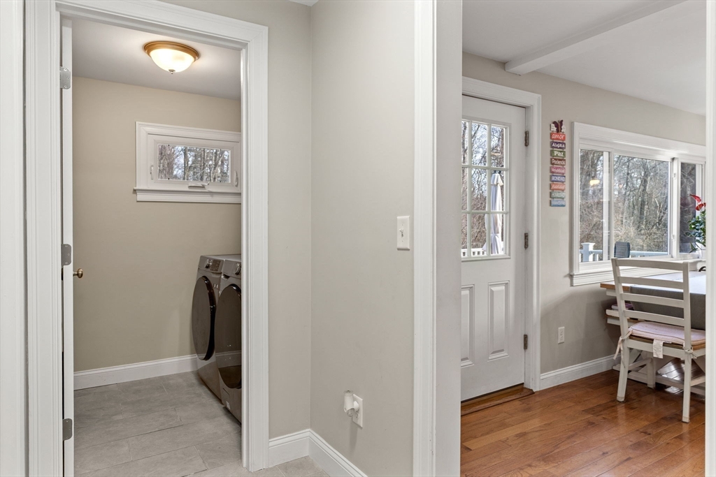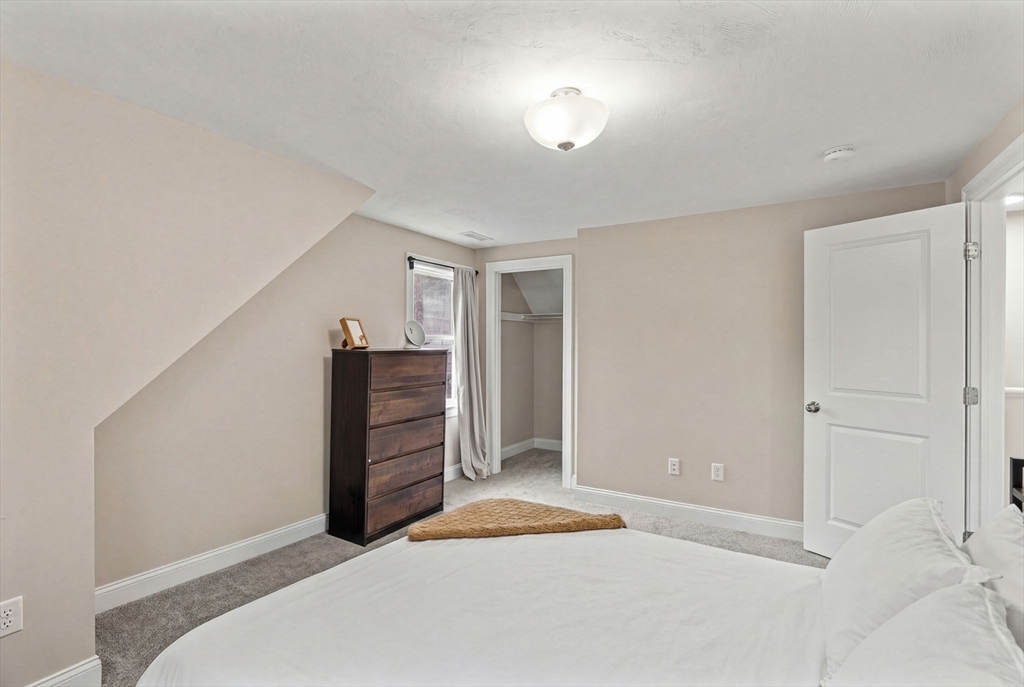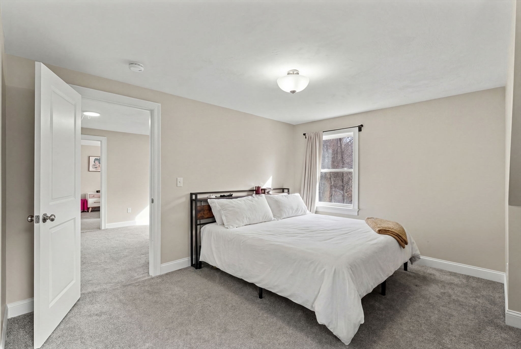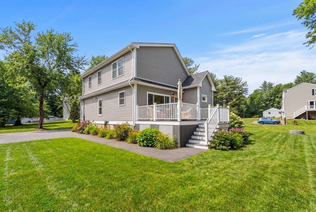 Recently renovated in 2021, this modern Cape offers a bright, open floor plan designed for today’s lifestyle. The main level features a desirable first-floor primary bedroom and an open kitchen with stainless steel appliances and an oversized island that flows seamlessly into the living area—perfect for entertaining. Step outside to an expansive deck with a fire pit and plenty of land to get creative with gardening, outdoor living, or a potential fenced-in yard. Upstairs offers two generously sized bedrooms, a full bathroom, and additional storage. Major systems are approximately four years old or newer. A significant improvement includes a French drain installed around the entire basement perimeter approximately two years ago. The basement offers ample storage with potential to finish for additional living space. Ideally located just off Salem Street with convenient highway access, while set on a quiet dead-end street offering privacy and minimal through traffic.