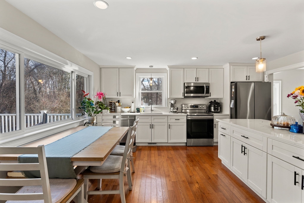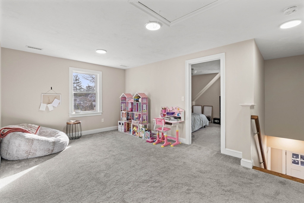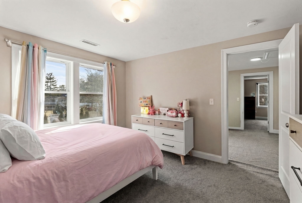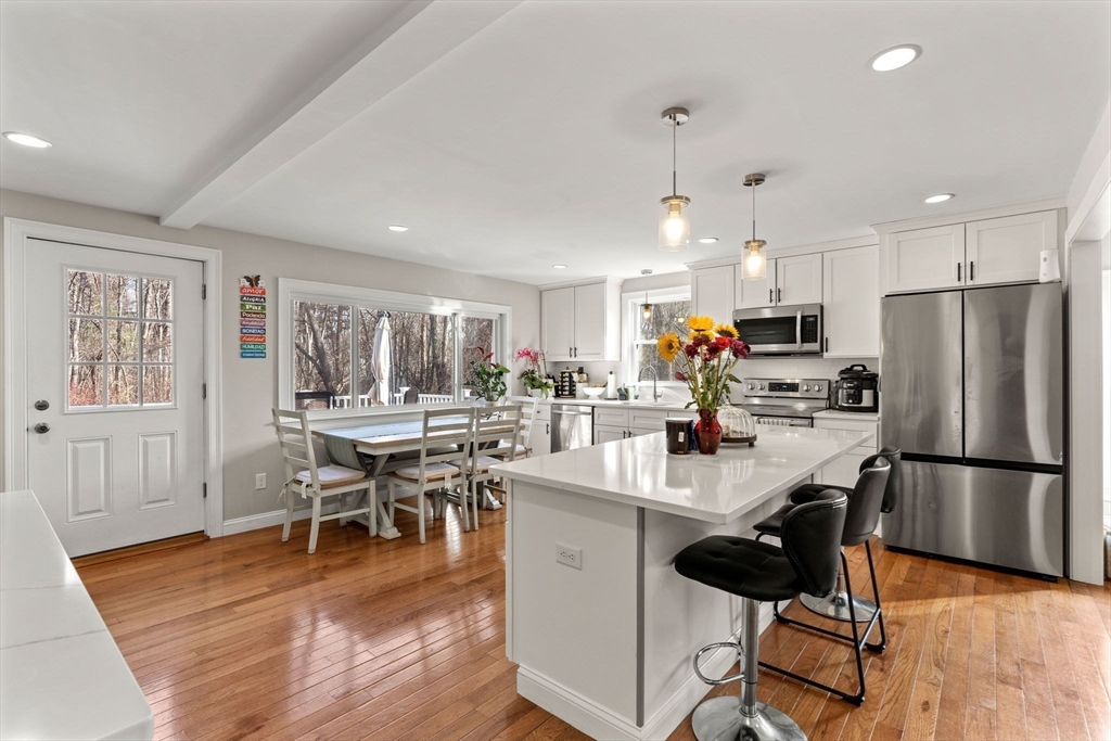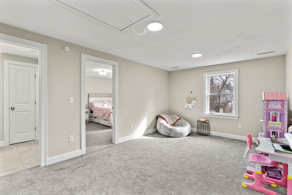 Recently renovated in 2021, this modern Cape offers a bright, open floor plan designed for today’s lifestyle. The main level features a desirable first-floor primary bedroom and an open kitchen with stainless steel appliances and an oversized island that flows seamlessly into the living area—perfect for entertaining. Step outside to an expansive deck with a fire pit and plenty of land to get creative with gardening, outdoor living, or a potential fenced-in yard. Upstairs offers two generously sized bedrooms, a full bathroom, and additional storage. Major systems are approximately four years old or newer. A significant improvement includes a French drain installed around the entire basement perimeter approximately two years ago. The basement offers ample storage with potential to finish for additional living space. Ideally located just off Salem Street with convenient highway access, while set on a quiet dead-end street offering privacy and minimal through traffic.