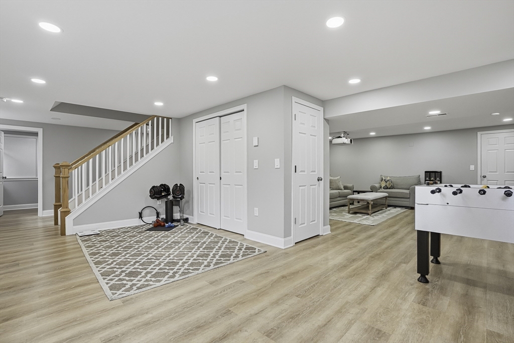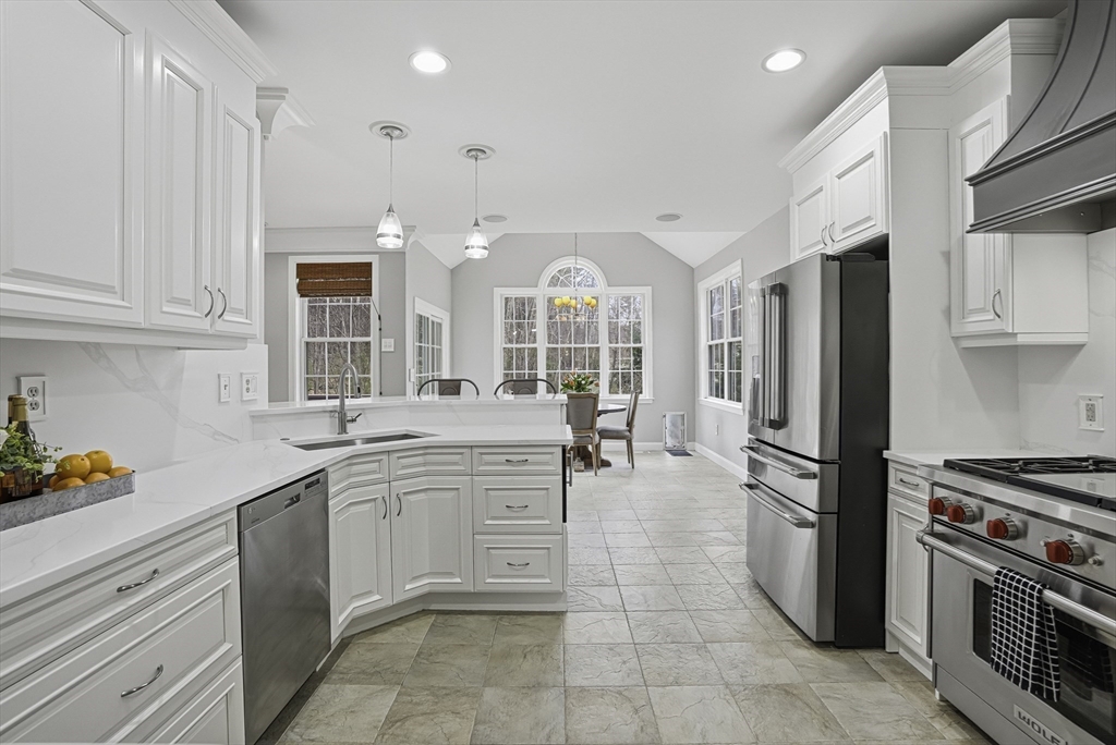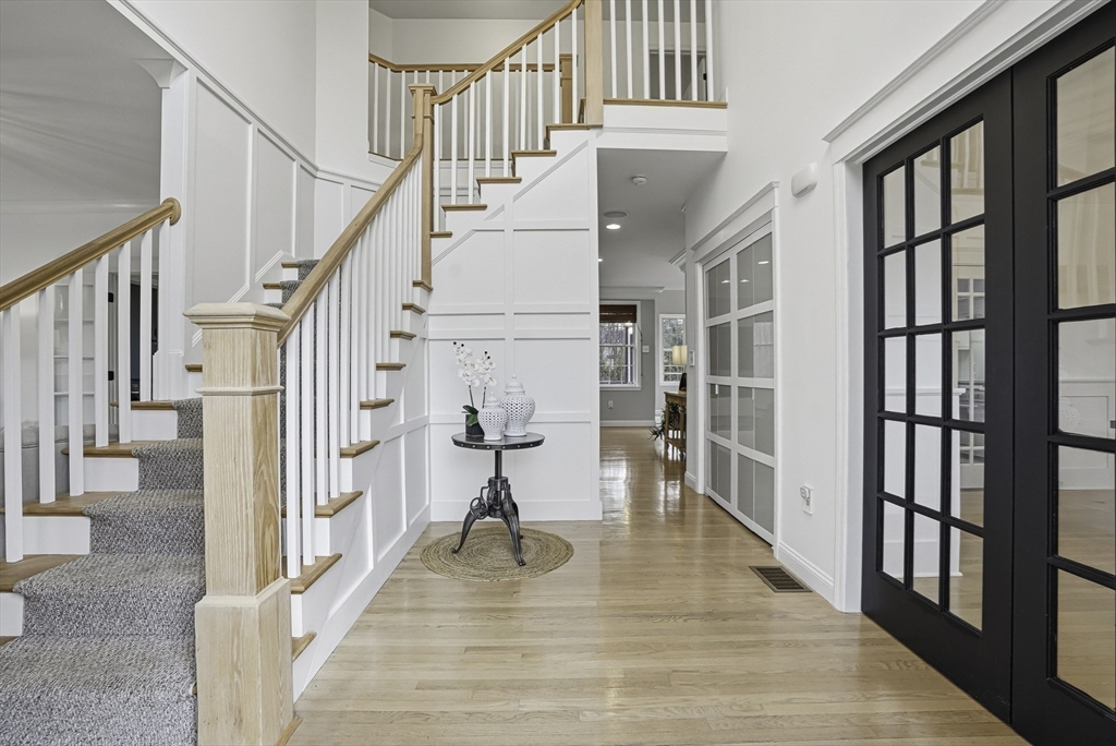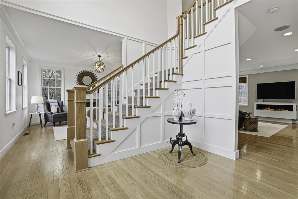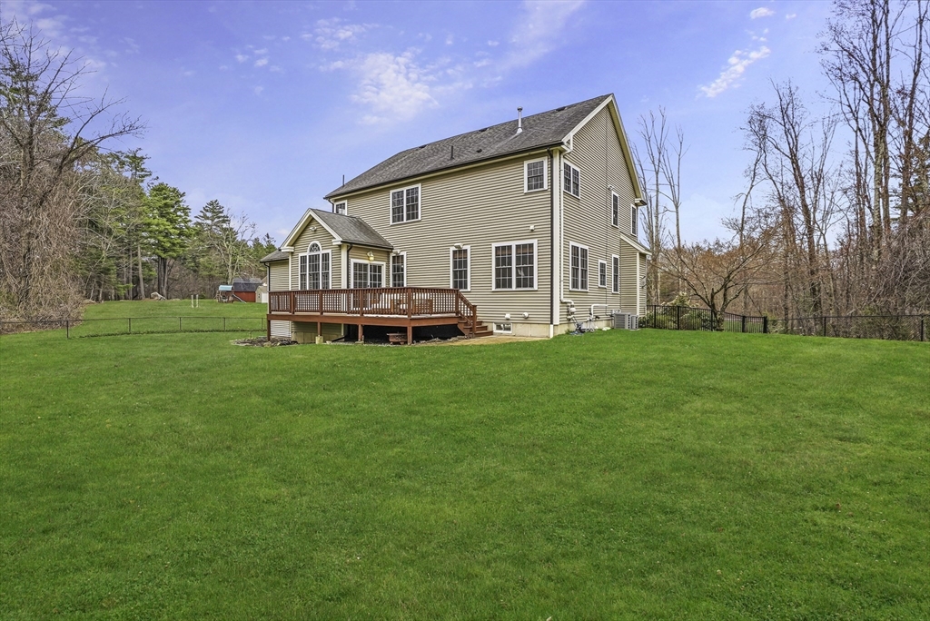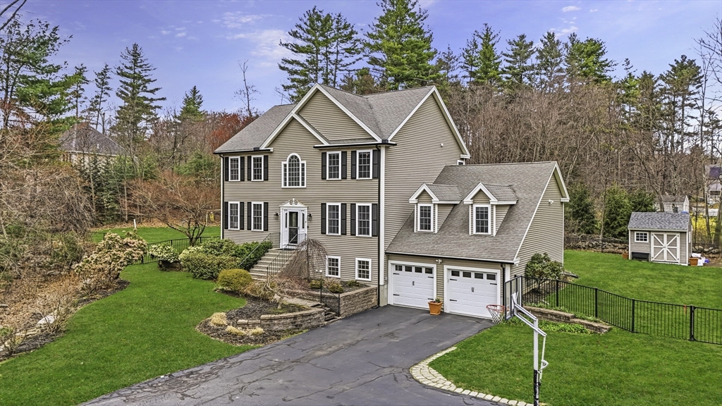 Luxurious 2004 built, 4–5 bed, 3.5 bath farmhouse-inspired colonial set back on picturesque 1.5-acres - offering both privacy & a welcoming neighborhood setting! HUGE fenced yard for future pool. Sun-drenched interiors & elevated design in every space. Dramatic foyer w board & batten trim. Designer chef’s kitchen showcasing white cabinets, new quartz countertops & backsplash, Wolf gas stove & pantry. Stunning family room offers water-jetted electric fireplace, custom window seating & intricate crown molding. 1st floor guest room/office/studio/playroom w future bath option potential. Breathtaking primary suite w vaulted ceiling, dual walk-in closets & spa-inspired Tuscan bath w travertine, soaking tub & glass/tile shower. 2020 finished walkout lower level elevates the home w theater area, kitchen, office & bath —ideal for multi-gen living. GAS heating, H20 filtration & irrigation. Quick to 495/90, com rail, fully rec Lake Maspenok & beach + top schools. Truly, an exceptional offering!