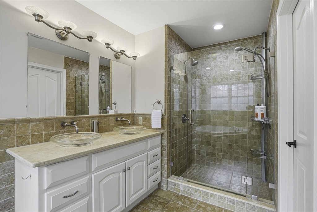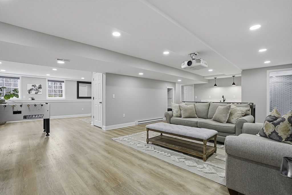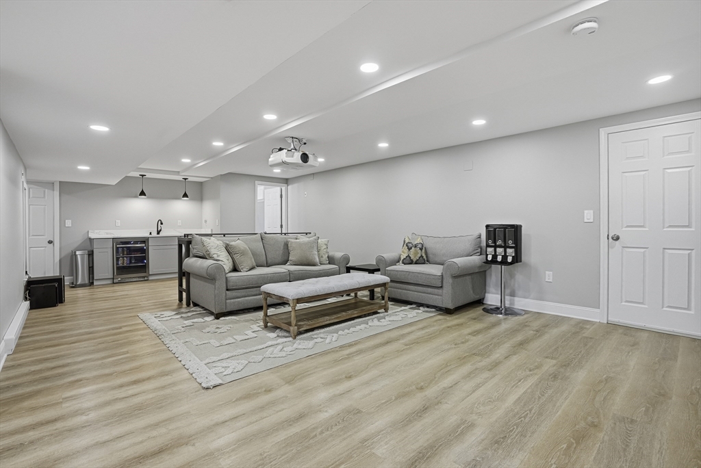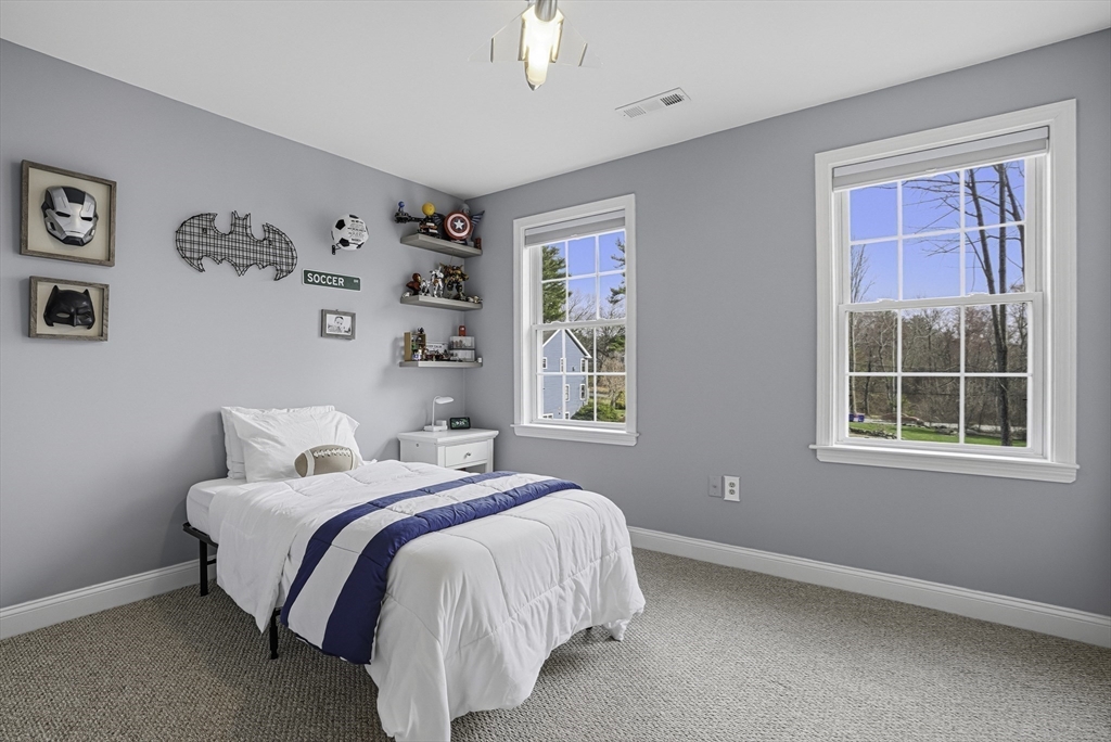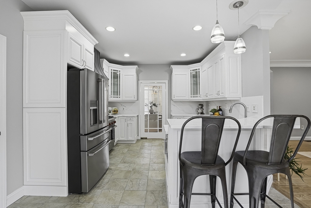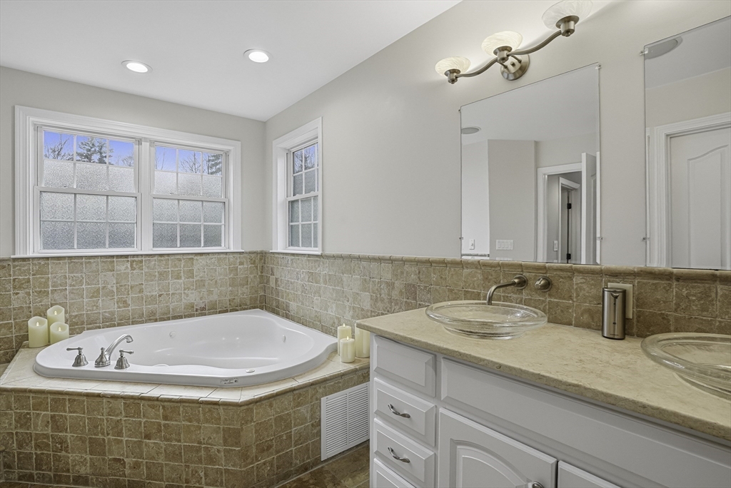 Luxurious 2004 built, 4–5 bed, 3.5 bath farmhouse-inspired colonial set back on picturesque 1.5-acres - offering both privacy & a welcoming neighborhood setting! HUGE fenced yard for future pool. Sun-drenched interiors & elevated design in every space. Dramatic foyer w board & batten trim. Designer chef’s kitchen showcasing white cabinets, new quartz countertops & backsplash, Wolf gas stove & pantry. Stunning family room offers water-jetted electric fireplace, custom window seating & intricate crown molding. 1st floor guest room/office/studio/playroom w future bath option potential. Breathtaking primary suite w vaulted ceiling, dual walk-in closets & spa-inspired Tuscan bath w travertine, soaking tub & glass/tile shower. 2020 finished walkout lower level elevates the home w theater area, kitchen, office & bath —ideal for multi-gen living. GAS heating, H20 filtration & irrigation. Quick to 495/90, com rail, fully rec Lake Maspenok & beach + top schools. Truly, an exceptional offering!
