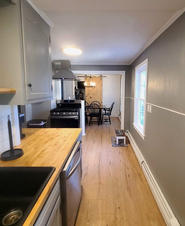 Situated at 49 Anderson Ave, This single-family residence constructed in 1930, presents itself as an inviting home, meticulously prepared for immediate occupancy. This thoughtfully designed residence offers 1086 square feet of refined living space, and a 1.76 acre of lot. Featuring three distinct bedrooms and one full bathroom, providing comfortable accommodations. The living room creates an atmosphere of understated elegance, enhanced by sophisticated crown molding that adds a touch of architectural distinction to the space. The kitchen serves as a central point for daily routines and culinary endeavors, distinguished by its elegant shaker cabinets and refined crown molding. A statement island range hood complements the tasteful backsplash, collectively creating an environment conducive to inspired cooking. One of the bedrooms offers a unique character, featuring an accent wood wall that provides a distinctive visual element. Showings begin Sat. April 18 @ Open House 10-12