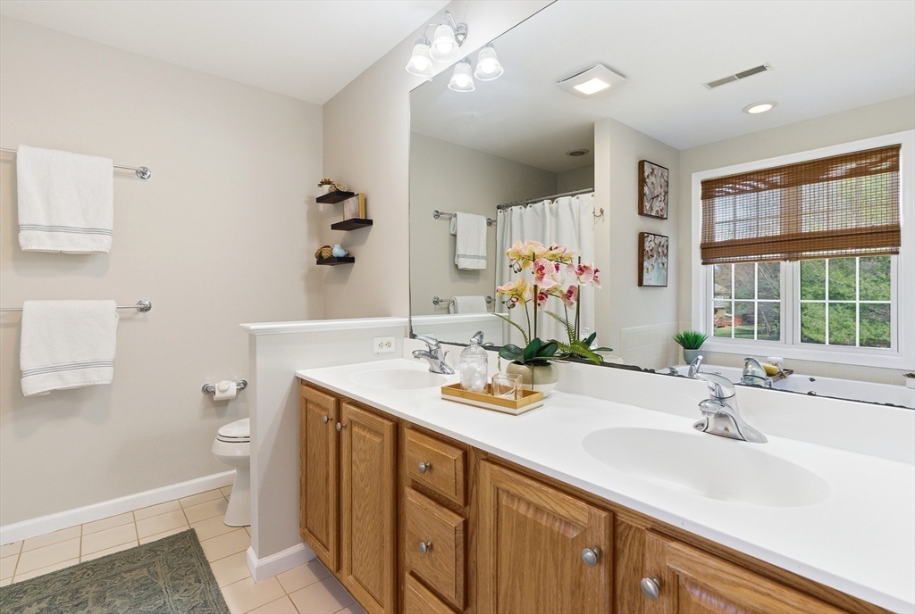 Desirable Hilltop Farms end-unit townhome built by Pulte Homes with numerous upgrades. Gleaming hardwood floors and detailed moldings welcome you in. Formal dining room with columns. Updated kitchen with brand new quartz countertops, newer stainless steel appliances including a Forno gas stove, and access to a private deck. Sun-filled family room with open layout and new carpet. First-floor laundry, half bath, and attached 2-car garage. Upstairs offers 3 spacious bedrooms with new carpet. Primary suite features a walk-in closet and bath with lavish bath dual sinks and soaking tub. The expansive finished lower level with gas fireplace, shiplap ceiling, wet bar, and open space perfect for entertaining or relaxing. Additional highlights include newer HVAC and a premium Jamison Style end-unit ! Great commuter location close to 495 and major routes! You wont want to miss this one!!!