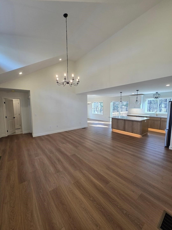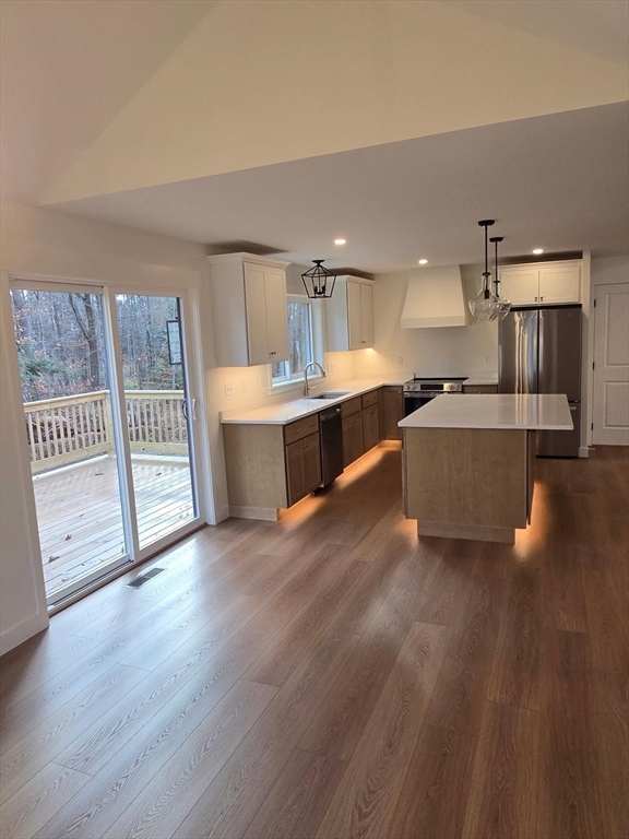 Rare find, no one builds ranches anymore, this single level home will wow you right from the front door! This home welcomes you into a vaulted foyer with custom built ins. From there the home opens up to a large open living area with high vaulted ceiling. The floor plan is open and flows into the kitchen with island and dining room. one side off the home has 2 bedrooms and a common bath. The other side is a hall with laundry room, spacious mudroom with custom built ins off the 2 car Garage. And beyond that is a cathedral ceiling Master suite with walk in closet and private bath. The home is placed on a nice fully landscaped lot. Enjoy the activity of the neighborhood from the large front porch, or on the 12x16 deck. The home is located at the end of a dead end street!