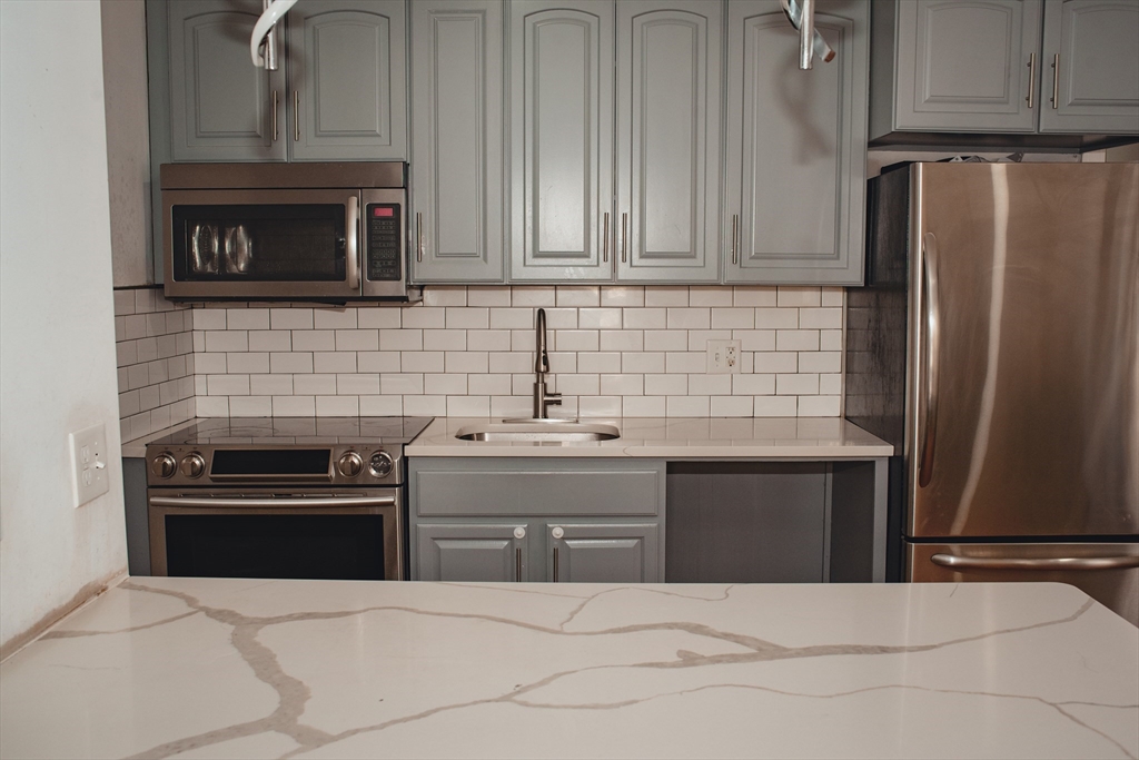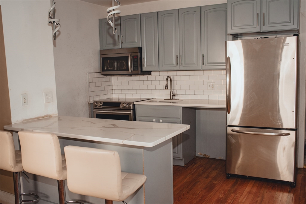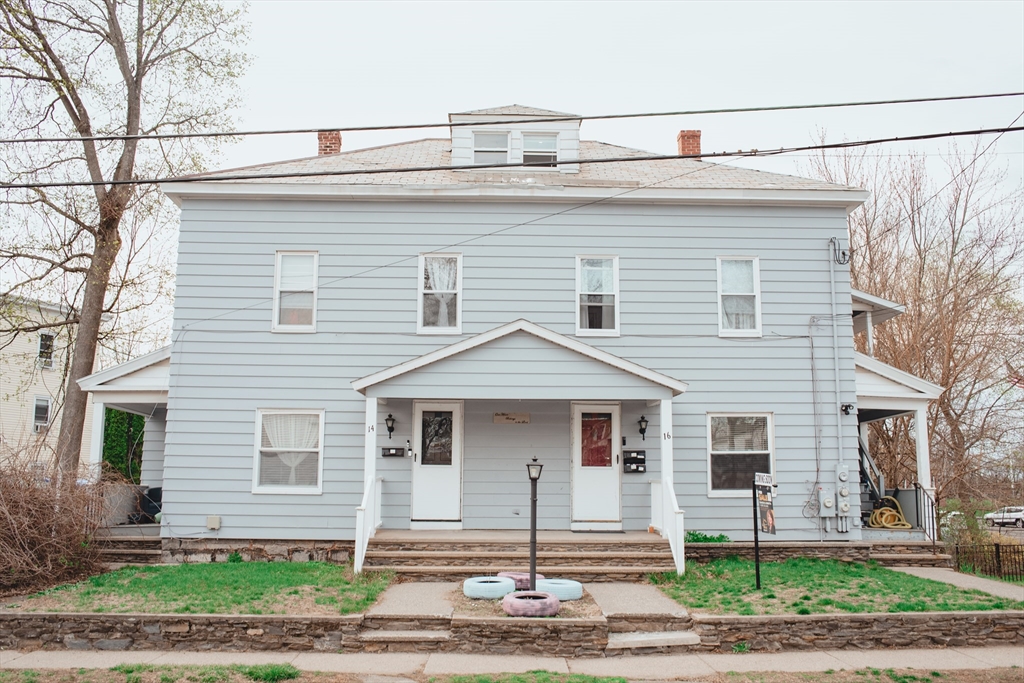 Great 3 family home perfect for the investor or owner occupied.The left side(#14) is a two story unity: the main level consists of a living room, large kitchen and dining room with leads to an enclosed porch, used as laundry, office and 1/2 bathroom.Upper level has 3 large bedrooms and a full bathroom plus a walk up attic to a large unfinished room. Separated utilities.The right side of the building consists of 2 apartments.16 A consists of a large eat in kitchen, living room, bedroom, full bath, basement access and covered porch.16 B consists os a large eat in kitchen, covered porch out of the kitchen, living room ,bedroom, full bath, access to a large finished attic, that can be used as an office or bonus room.Great location close to the commuter rail, major routes, shopping and restaurants.Plenty of parking and a private back yard overlooking Doyle Field!