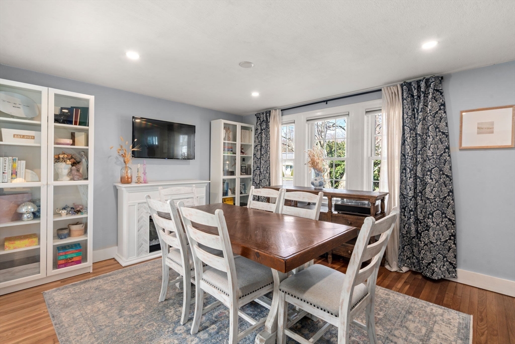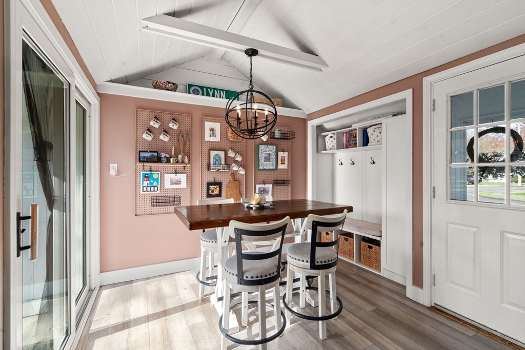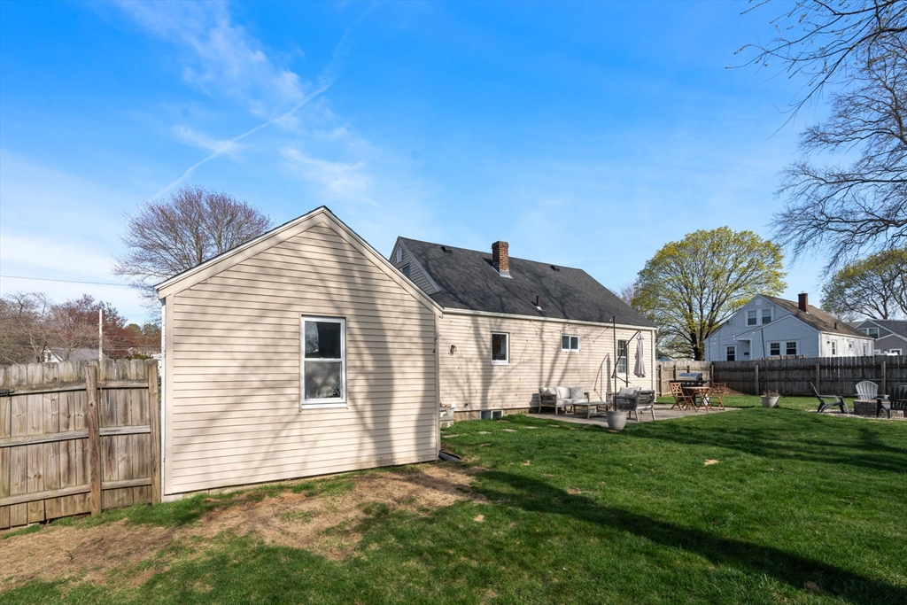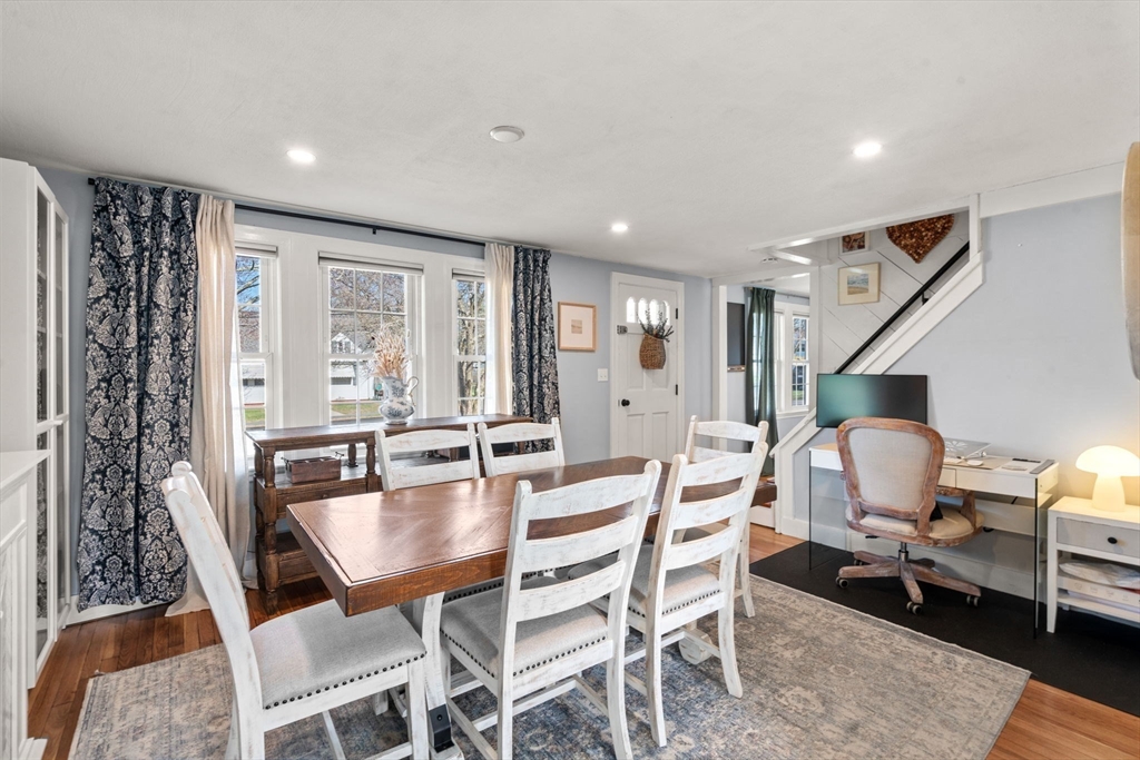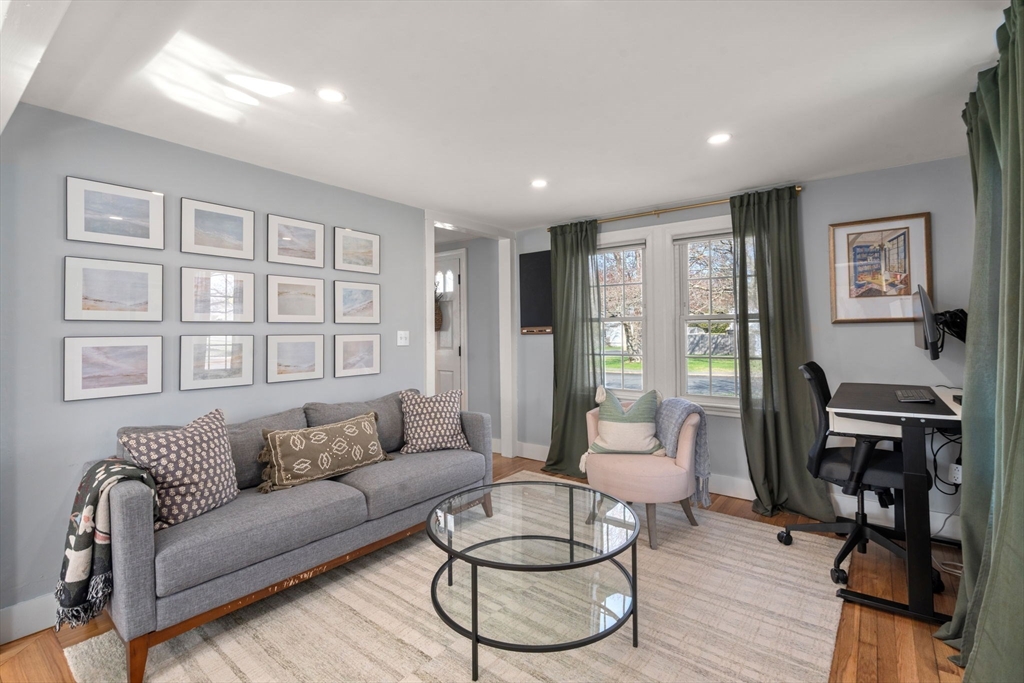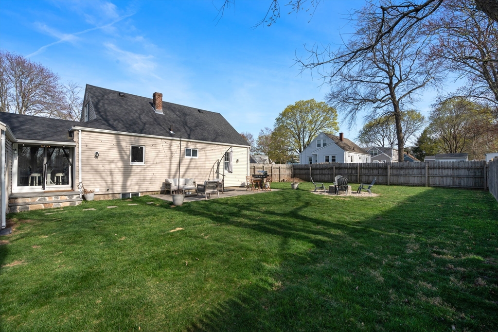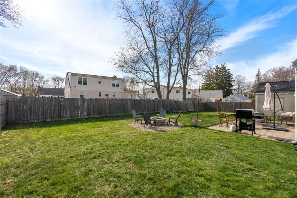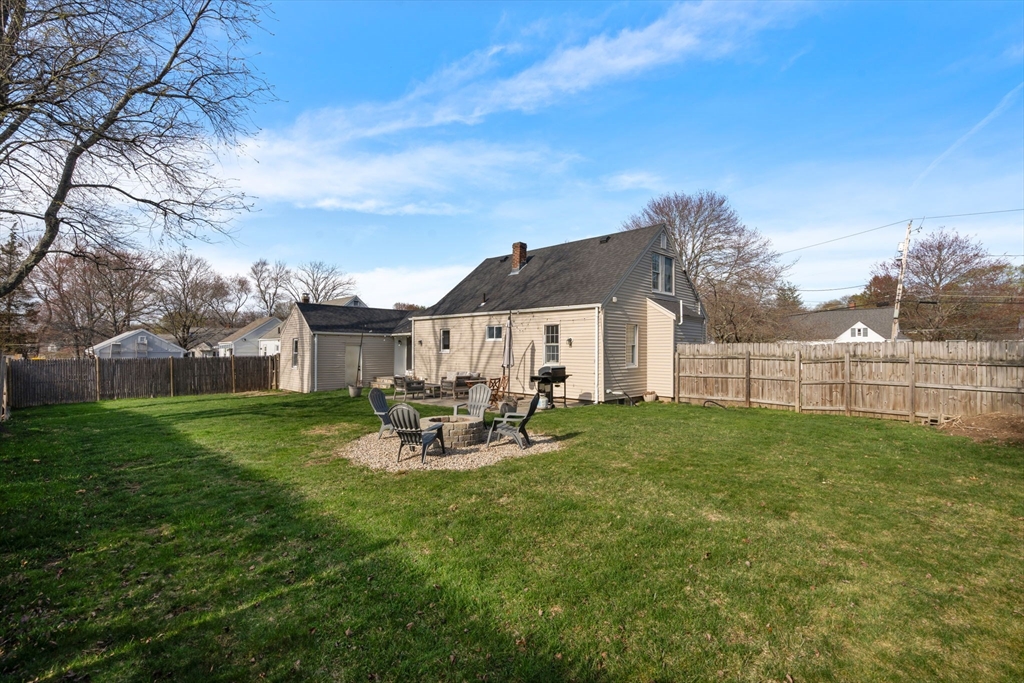 Updated,move-in ready 2-bedroom (formerly a 3-bedroom) offering comfort & style, in a desirable Norwood neighborhood! Open-concept, eat-in kitchen with vaulted ceilings that flows seamlessly into the dining area, creating a bright and spacious feel. The beautifully refreshed kitchen (2020) includes refaced cabinetry, new countertops, backsplash, and flooring. Enjoy a front-to-back living room with hardwood floors, recessed lighting (2021), and a built-in wet bar (2021)—perfect for entertaining. Major updates include central air, new furnace, tankless hot water, and roof (all 2020), plus Harvey windows. Step outside to a level, fenced-in backyard complete with a new patio, firepit, and back stairs (2022)—ideal for outdoor gatherings. A one-car garage with loft storage adds convenience. Basement plumbed for 1/2 bath. Easy access to Route 95, Route 1, and nearby shopping. Stamped, town-approved plans in hand to expand to a 4-bedroom, 2-bath home. Truly turnkey!