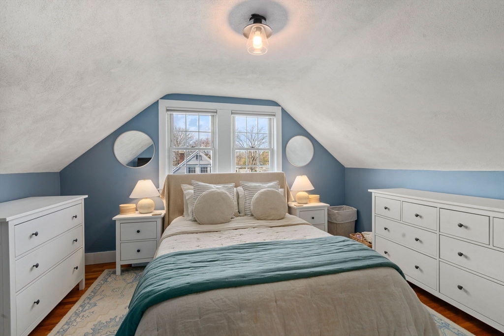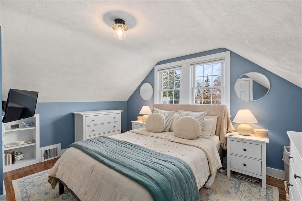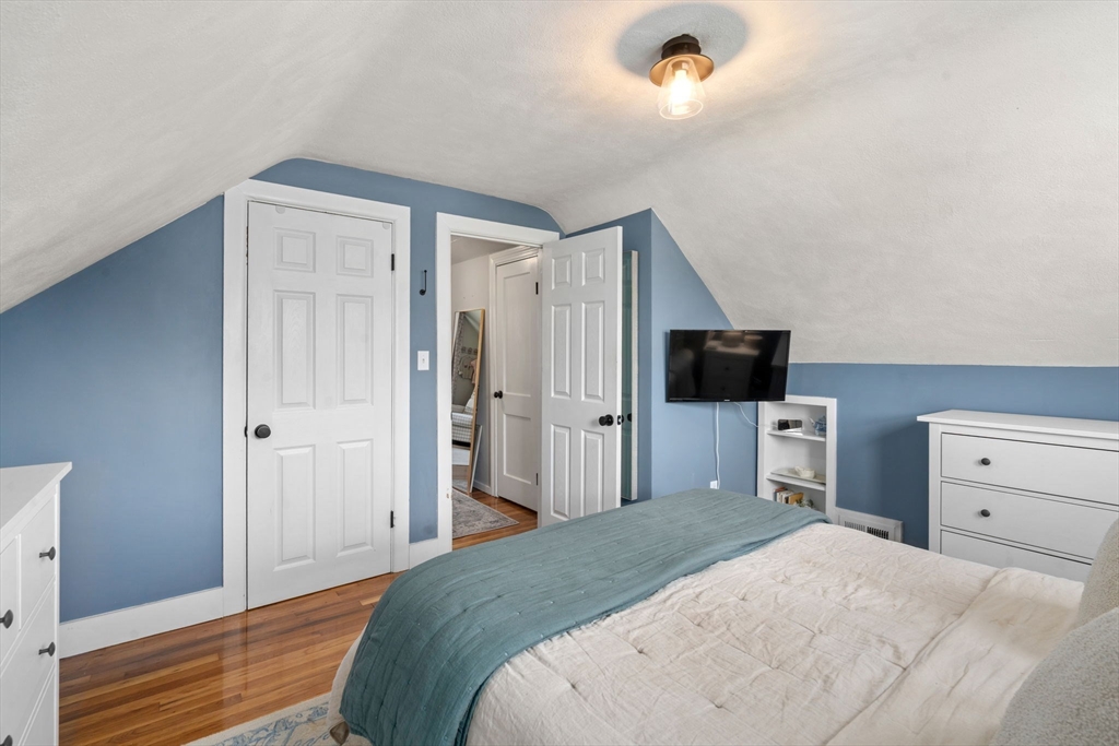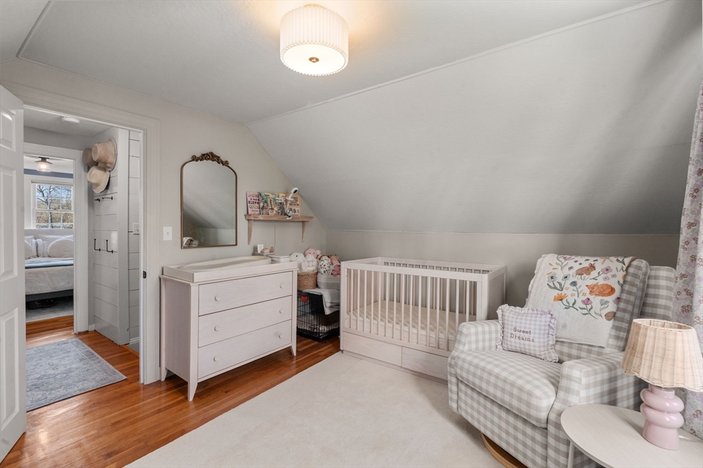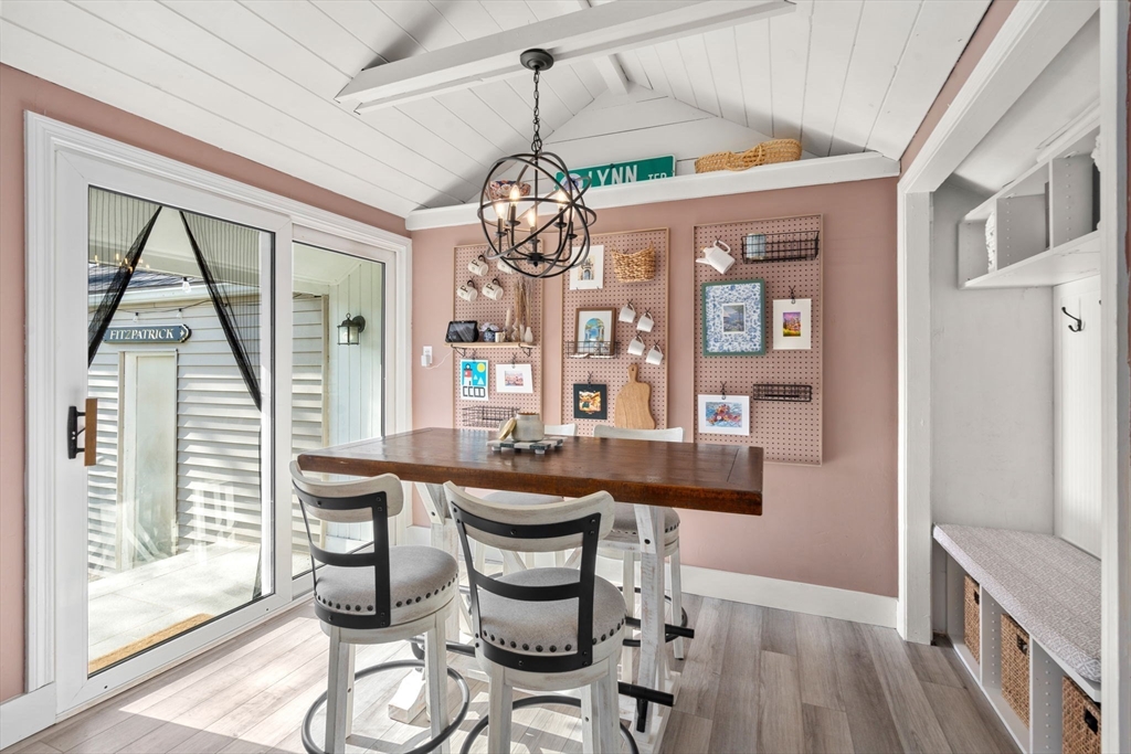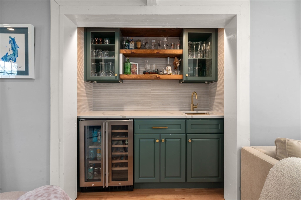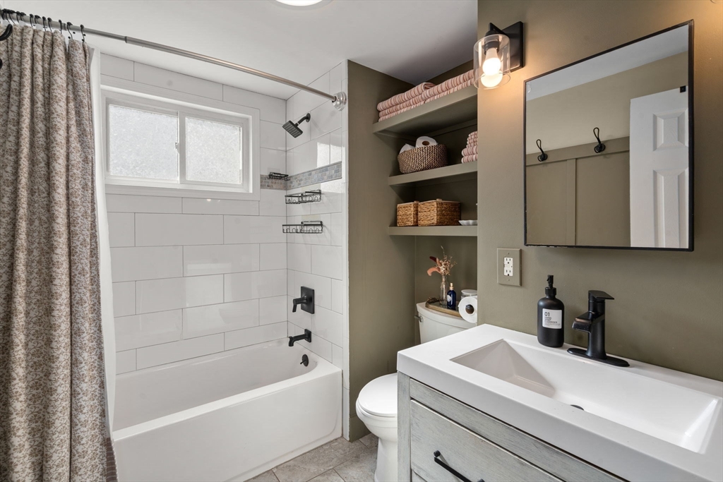 Updated,move-in ready 2-bedroom (formerly a 3-bedroom) offering comfort & style, in a desirable Norwood neighborhood! Open-concept, eat-in kitchen with vaulted ceilings that flows seamlessly into the dining area, creating a bright and spacious feel. The beautifully refreshed kitchen (2020) includes refaced cabinetry, new countertops, backsplash, and flooring. Enjoy a front-to-back living room with hardwood floors, recessed lighting (2021), and a built-in wet bar (2021)—perfect for entertaining. Major updates include central air, new furnace, tankless hot water, and roof (all 2020), plus Harvey windows. Step outside to a level, fenced-in backyard complete with a new patio, firepit, and back stairs (2022)—ideal for outdoor gatherings. A one-car garage with loft storage adds convenience. Basement plumbed for 1/2 bath. Easy access to Route 95, Route 1, and nearby shopping. Stamped, town-approved plans in hand to expand to a 4-bedroom, 2-bath home. Truly turnkey!