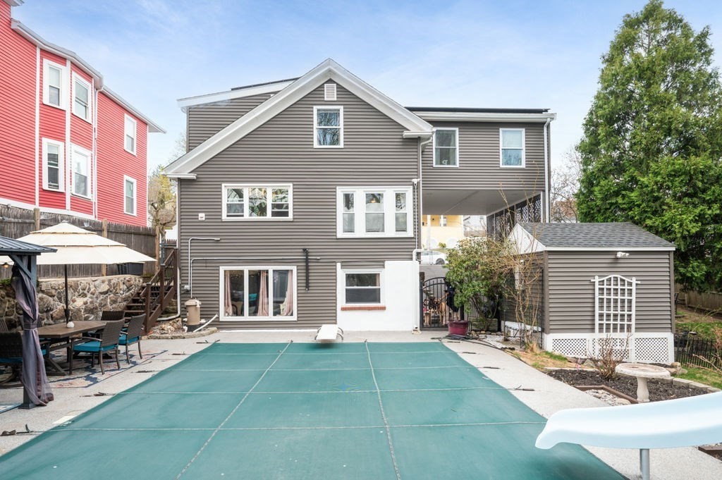 Discover the perfect blend of modern style and outdoor luxury in Lynn’s desirable Pine Hill! This meticulously updated home features a backyard oasis designed for entertaining, complete with a sparkling inground pool (with slide!), private cabana, and a cozy firepit. Inside, the stylish kitchen impresses with quartz countertops, a central island, and stainless-steel appliances. Gleaming hardwood floors flow throughout the first floor, while the second floor offers ultimate convenience with laundry and beautifully updated baths. The spacious primary suite is a true retreat, featuring a dreamy ensuite bathroom. Need more space? The finished basement offers additional living area with fantastic in-law potential. Enjoy peace of mind and efficiency with a roof replaced in 2019 and fully owned solar panels to keep utility costs low. From the "staycation" yard to the sleek interior finishes, this move-in-ready gem is the one you’ve been waiting for. Come make this charming home yours!