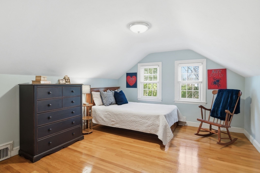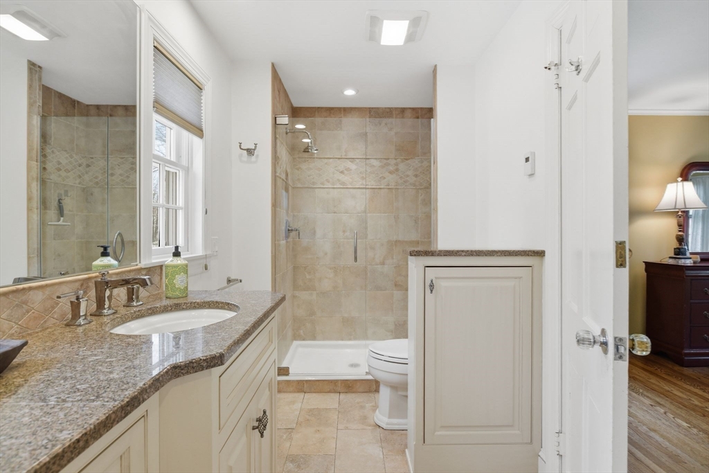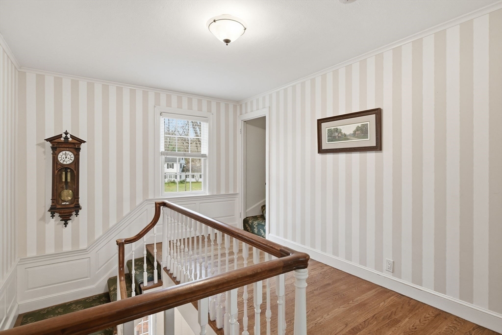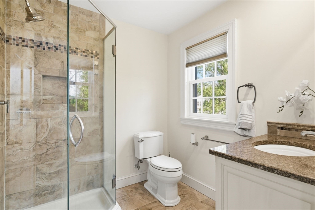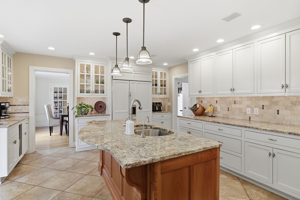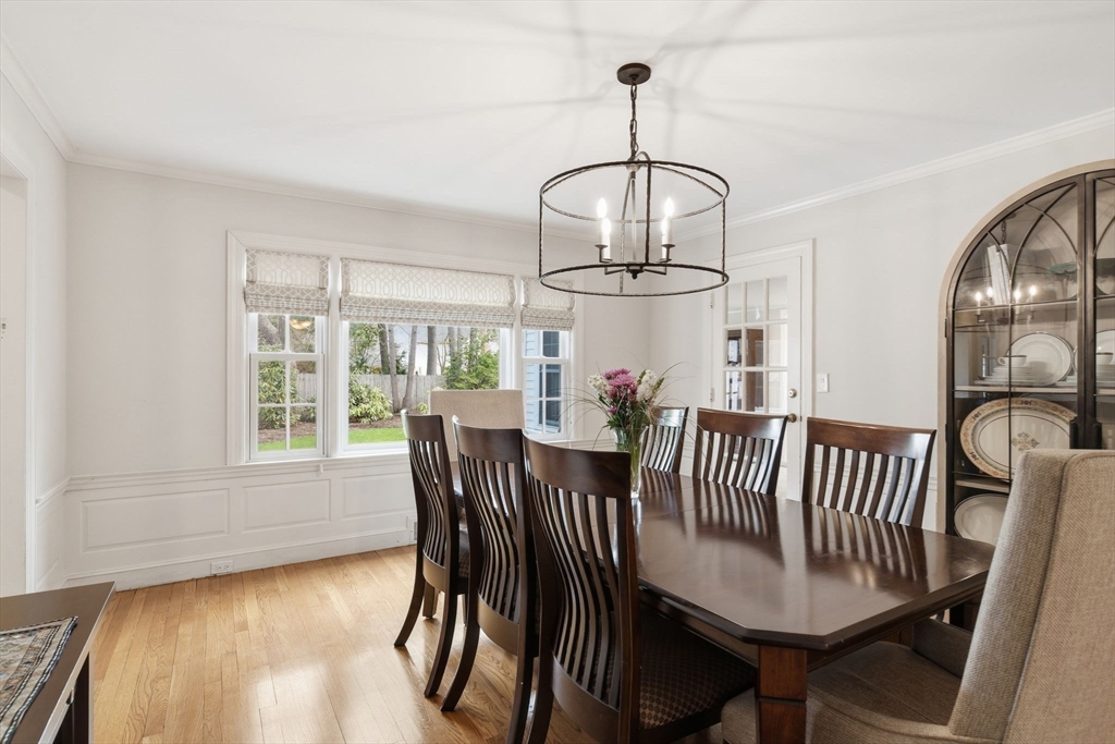 Classic brick colonial offers superb curb appeal & exceptional living in Kibbe Tract. Pristine condition w/great circular flow & functionality, this home features a gracious foyer w/wide openings welcoming you to the main level. Living room boasts fireplace & seamless access to home office w/adjacent full bath- ideal for remote work. Custom kitchen impresses w/inset cabinetry, large center island & wet bar area that flows into the bright eating area, the dining room w/beautiful picture window framing vistas of private backyard w/lush plantings as well as the family room featuring painted wood paneled walls & custom built-in. Upstairs, generous primary suite includes 2 renovated full baths & 2 walk-in closets outfitted w/California Closets, plus convenient laundry closet, 2 additional bedrooms & tiled bath. 3rd floor offers 2 more bedrooms, abundant storage, & fifth full bath. Beautifully maintained home that delivers space, style & modern comforts in one of the most sought-after areas.