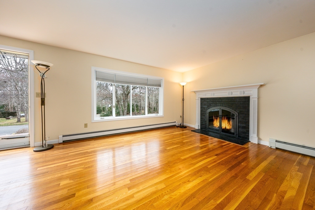 The search is over! Nestled in a premier West Barnstable neighborhood abutting conservation, this Cape-style residence radiates pride of ownership in every detail. The main level welcomes you with gleaming hardwood floors & a thoughtfully updated kitchen & breakfast nook. This heart of the home flows seamlessly into an inviting living room anchored by a gas fireplace. For those who love the outdoors, triple sliders lead to a spacious screened-in porch overlooking backyard oasis. The flexible floor plan includes a formal dining room (or family room), a full bath with laundry, & a convenient first-floor bedroom. Upstairs, discover two additional bedrooms & a second full bath. The lower level offers even more versatility with a partially finished, heated space (400sf) featuring full-sized windows & is perfect for a home gym, media room, or office. Outside, the current owners have meticulously created a backyard sanctuary filled with multiple ''outdoor rooms'' you will fall in love with.