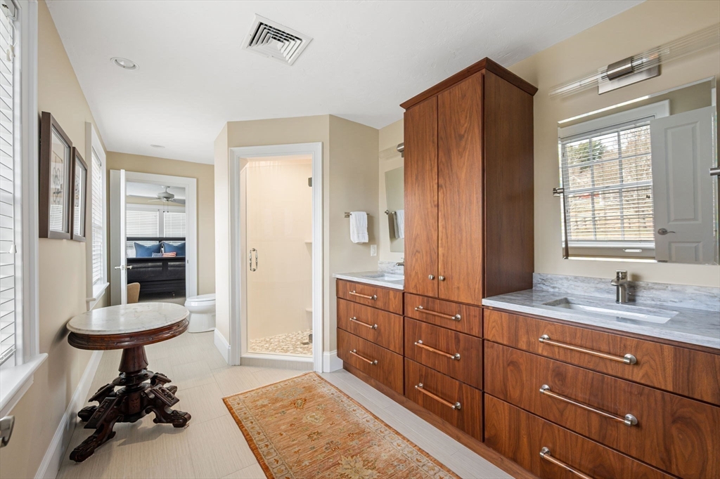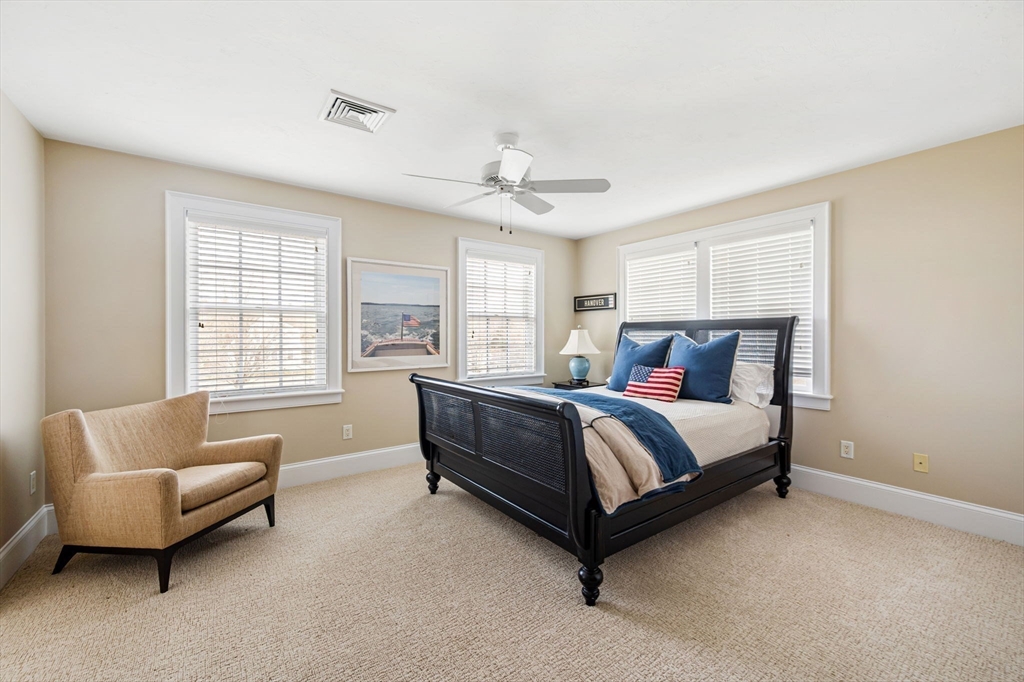 A striking custom Nantucket Colonial blending timeless coastal elegance with Hanover’s serene pastoral setting. This 4,500 sq ft home offers 5 spacious bedrooms and 3.5 baths. The luxurious primary suite features a large walk-in closet and spa-like bath with double vanities, soaking tub, and steam shower. Additional bedrooms offer expansive closets, including two with a Jack & Jill bath and one with a private en suite. Light-filled interiors, refined craftsmanship, and French doors throughout create a seamless layout ideal for everyday living and entertaining. Enjoy a secluded, fenced backyard with an in-ground pool. Set in a boutique neighborhood overlooking picturesque horse farm views, this property offers rare privacy just minutes from dining, shopping, and major routes. * First showings at Open House Saturday 4/18 1-3pm