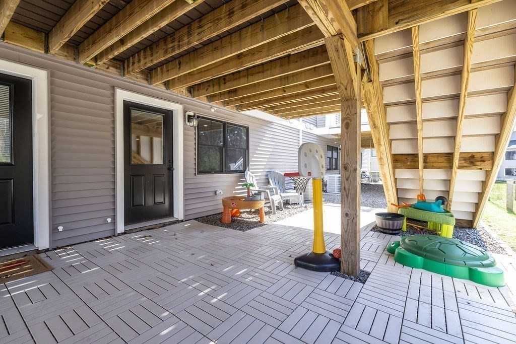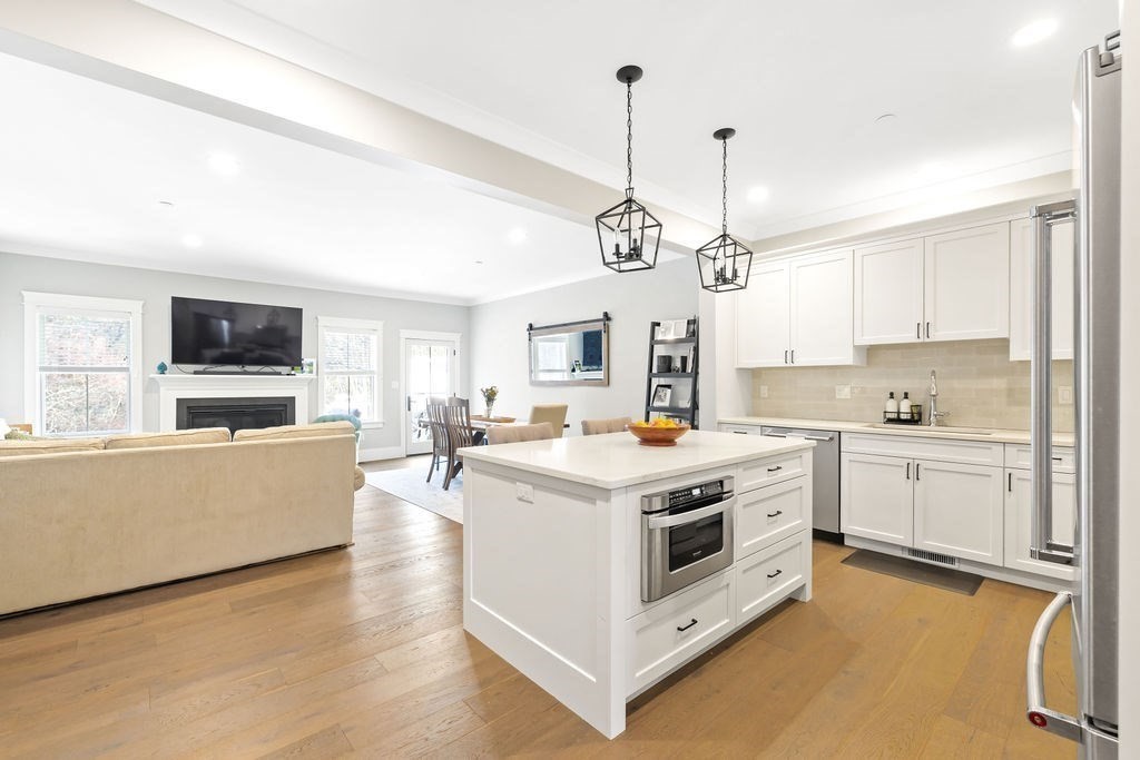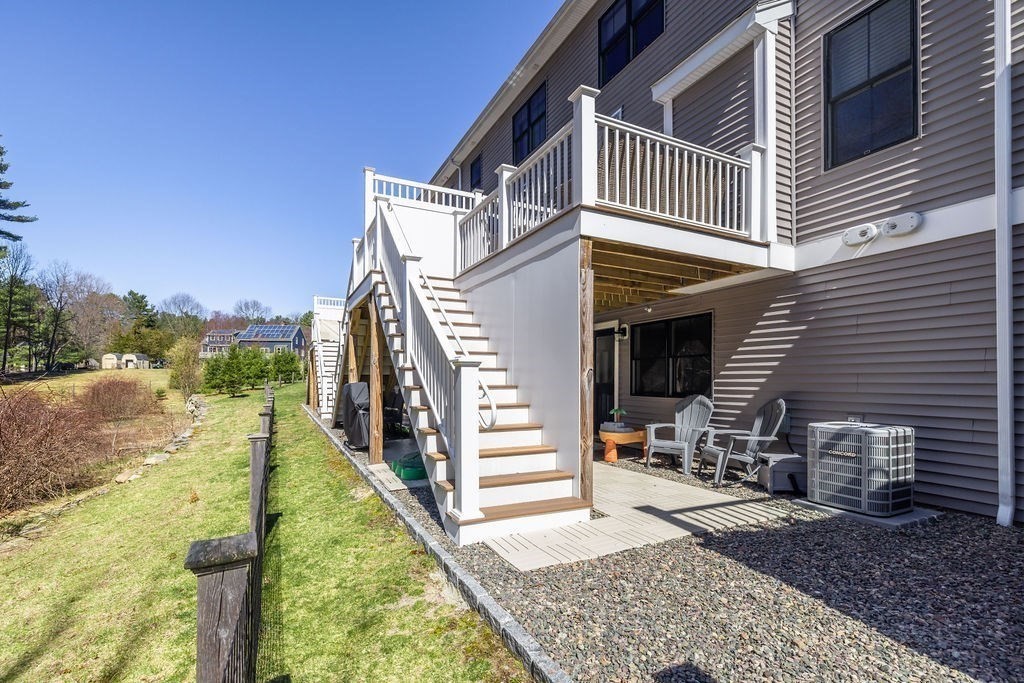 Bright, sun-filled two-bedroom townhouse at The Fields in Sherborn, beautifully appointed throughout with thoughtful finishes and a welcoming open feel. Natural light pours into every room, highlighting the spacious layout and comfortable living areas. Three levels of finished space includes open concept design with living room/dining room and kitchen on the first level, leading to serene woodland views from your private back deck - perfect for morning coffee or evening relaxation.There are two spacious bedrooms on the second floor, 2 full baths and separate laundry room. The walk-out lower level features a beautifully finished playroom leading to a secluded patio offering additional space for play. This multi-generational compound is the perfect place for all stages of life. Just 18 miles west of Boston, Sherborn is known for top rated schools, conservation land with trails for recreation, easy access to transportation and of course bucolic Farm Pond!!!
