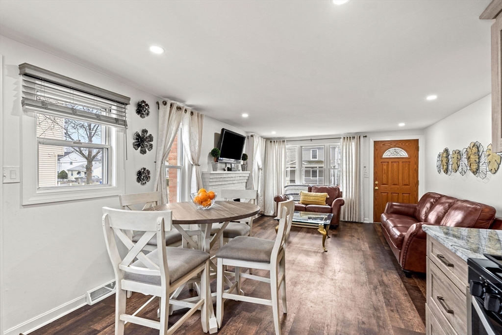 Great opportunity to own this charming 3 bedroom, 2 full bath ranch offering easy one-level living in desirable So. Peabody neighborhood. The updated kitchen (2022) features granite countertops, all newer SS appliances, cooking by gas, a mounted microwave, recessed lighting, beautiful cabinetry, along with newer laminate flooring in the kitchen and living room. The main level offers a spacious primary bedroom along with 2 additional bedrooms, all with hardwood flooring. The large dining room with direct backyard access can also be used as a family room, providing great versatility for everyday living and entertaining. The finished bonus basement room expands the living space with a second full bath and an additional kitchen area. The home is complete with central a/c, low maintenance vinyl siding, a pretty fenced-in yard with patio and garden area, storage shed, and a one-car detached garage. Just minutes to Rts 1,I-95,128 &114 with easy access to Boston. You will love living here!