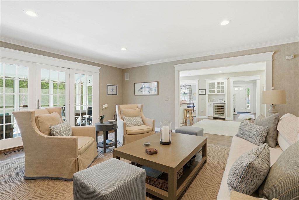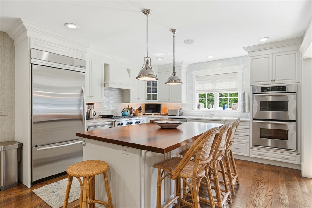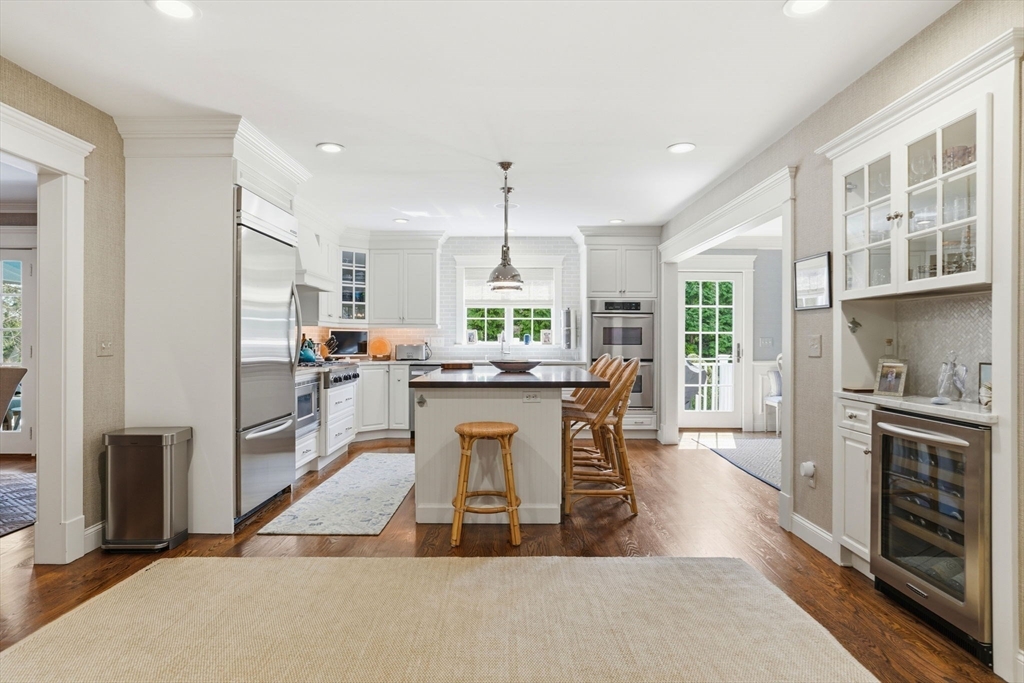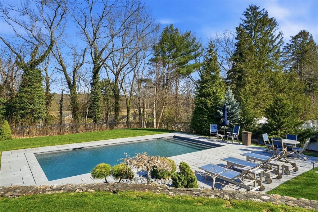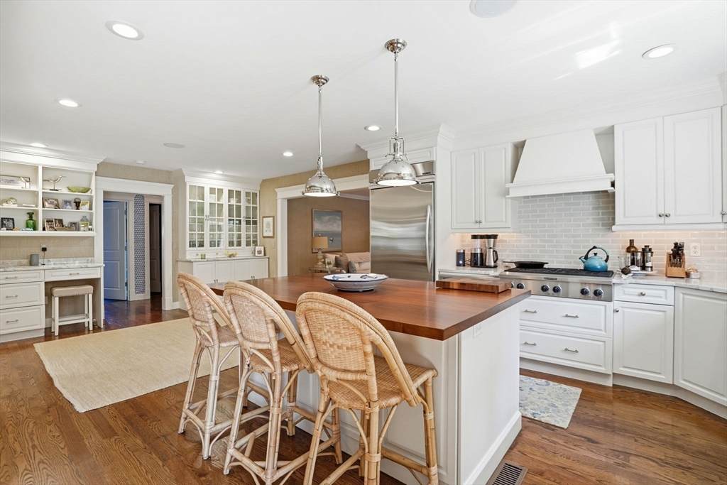 Located in Kingston’s desirable Ah-De-Nah neighborhood, this 5-bed, 4 full/2 half bath Colonial offers a blend of comfort, function, and coastal accessibility just moments from Jones River Landing, Kingston Bay, and Bay Farm Conservation trails. The home features three ensuite bedrooms, including a private primary suite with gas fireplace, custom walk-in dressing room, and spa-like bath. Hardwood floors, generous living spaces, and custom millwork are found throughout. The kitchen is well-appointed with a walnut-topped center island, glass-front hutch, integrated desk, six-burner gas range, double ovens, and wine bar, and opens to a fireplaced family room with French doors leading to a screened porch. Outdoor features include a heated saltwater in-ground pool and hot tub, professionally landscaped grounds with perennial gardens, hydrangeas, and stone walls, as well as a private pickleball court. Additional highlights include a finished lower level with home theater and a 3-car garage