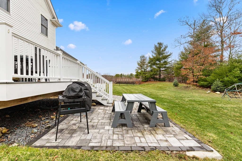 Pristine, 10 YEAR YOUNG Colonial perfectly situated on a quiet cul-de-sac. Step inside to meet a bright and inviting living room featuring a fireplace and beautiful hardwood floors. The adjacent eat-in kitchen offers slider access to the deck perfect for a morning cup of coffee! The half bath completes the first floor. Upstairs, you will find three bright bedrooms, all with hardwood flooring. The spacious primary suite includes a private full bath. The second full bathroom completes the second floor. The finished basement provides a great extra living space, ideal for a family room, home office, or gym. Features include a TWO car garage, a fully fenced in yard with a patio, a charming front porch, and a Whole House Generator. Conveniently located near highways, parks, and shopping, this home offers both comfort and accessibility.