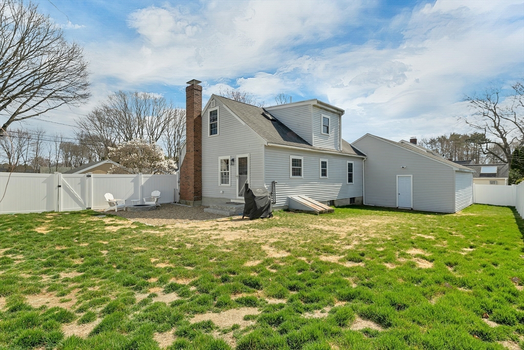 Beautifully updated Cape in desirable Hampton neighborhood! 4-bedroom, 2-bath seacoast home offers flexibility and comfort with the option for easy first-floor living, 2 bedrooms and full bath on the main level. Kitchen shines with all new appliances, repainted cabinets and new countertop. Living room with hardwood flooring and natural light. Both bathrooms have been updated. 2nd level offers 2 additional bedrooms with ¾ bath. Set on a level lot with new front lawn sod and a fenced-in backyard including a pea stone patio. Convenience of public water & sewer, and efficient natural gas heat. Oversized two-car attached garage and full basement. Updates include fresh interior paint, new lighting, ceiling fans, hardware, custom shades, custom closets in all 4 bedrooms, new walkway for standout curb appeal, new exterior and storm doors. Located under 2 miles to the Atlantic Ocean and award-winning beaches. First showings at the Open Houses Fri 4/17 4-6pm, Sat 4/18 & Sun 4/19 10-noon.