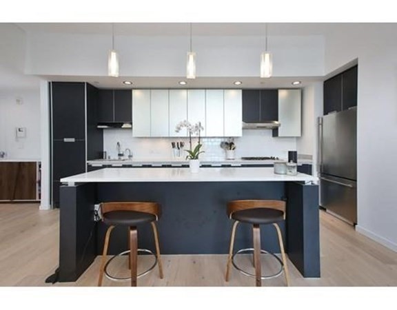 Step into this impressive foyer and immediately enjoy the conveniences of both the location and the lifestyle amenities when living at The Macallen. Positioned at the meeting point of South Boston and the South End, residents can walk to Sowa Galleries, the West Side's night life and brunch scene and easily across the street to Red Line T station. With the warm weather coming, the outdoor association pool is a rare amenity in this core location. This 6th floor home enjoys Southwestern exposure from every window and a private deck adjacent to the living space is a convenient compliment to the building's outside spaces. This ideal floor plan offers bedroom suites on opposite sides of the living space. The open living / kitchen / dining area is a wonderful entertaining space and there is an office nook tucked off to the side. This luxury building comes complete with a fitness center, common grills, 24/7 concierge, bike storage, a movie screening facility and a full parking space.