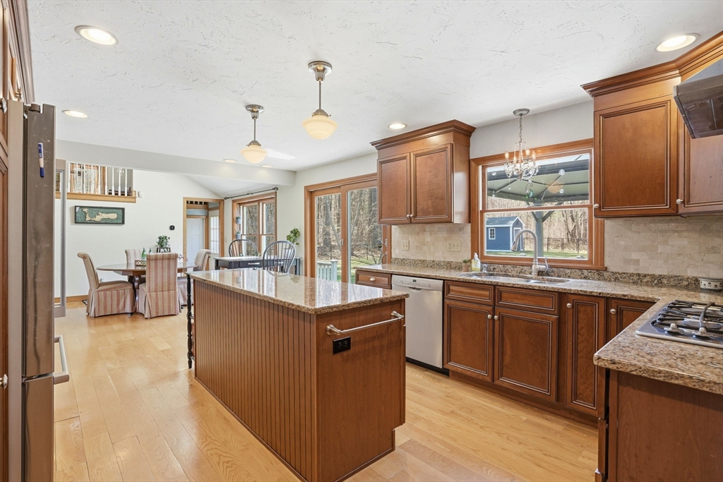 Set on ~5 picturesque acres and abutting conservation land, this beautifully maintained Colonial offers space, privacy, and timeless appeal. Featuring 3 bedrooms, 2.5 baths, and a flexible loft ideal for a home office or playroom, this much loved family home has been thoughtfully updated through the years, most recently with the primary bath, and fresh interior and exterior painting, and new carpeting. The ideal floor plan features a sunny and spacious eat-in kitchen in the middle of the home and is the hub of activity. Enjoy a spacious, fenced back yard, complete with large deck and gazebo...perfect for summer entertaining. Hardwood floors throughout the main level, a cozy wood-burning fireplace, and a partially finished lower level for added living space. Central air, a whole-house generator, tons of storage and a two-car garage add comfort and convenience. All of this in a desirable neighborhood setting makes for a dream home!