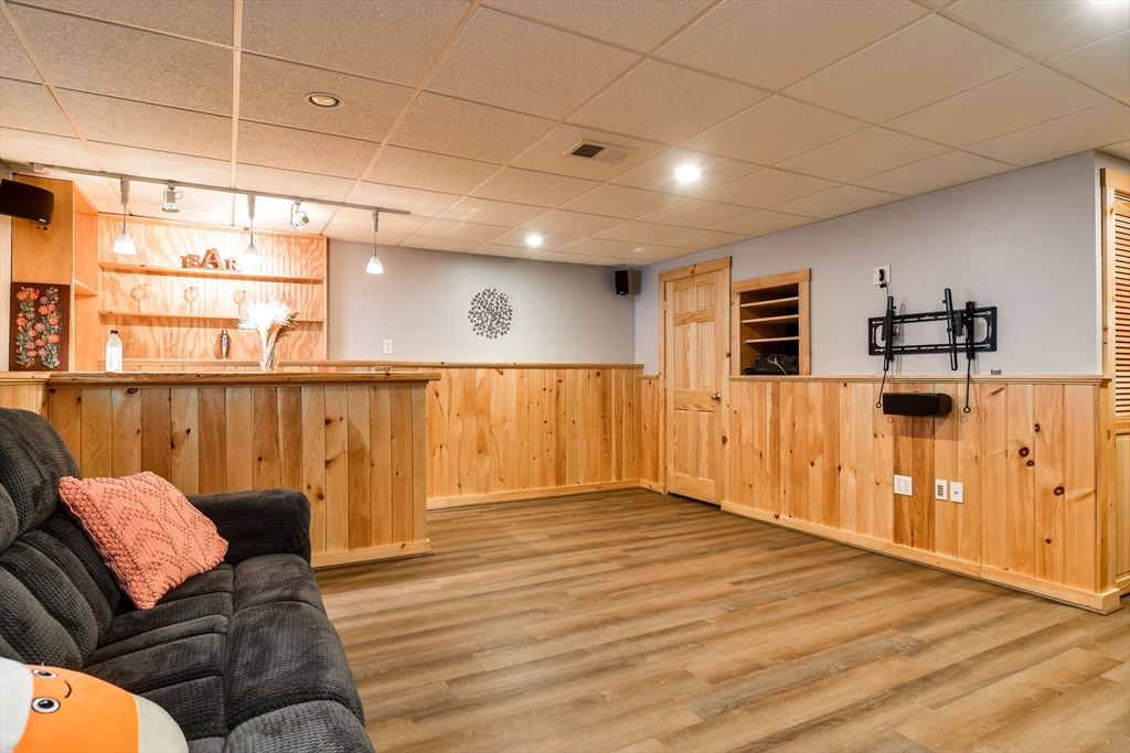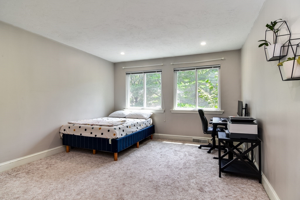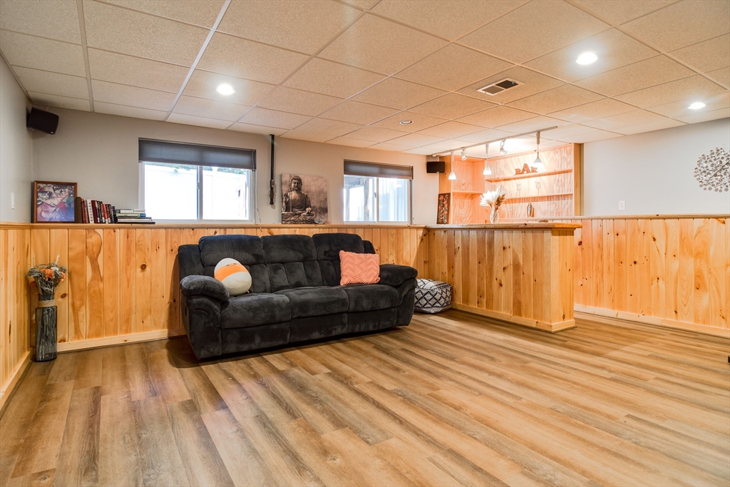 Beautifully updated townhouse in desirable Curtis Square, set back from the road and close to the Sudbury line, shops, and restaurants. This home offers 2 bedrooms, 2 full baths, and a bonus lower-level room that can serve as a living room, bedroom, or office. Features include hardwood floors and a refreshed 2021 kitchen with white cabinets, granite counters, and a built-in table. The kitchen opens to a dining area with a 2023 brick accent wall and flows into a spacious living room. Bedrooms are separated by a floor for privacy, each with its own full bath. Laundry is on the second floor. The finished lower level includes a family room with a built-in bar and beverage fridge. Includes a private rear deck, one-car garage, and two off-street parking spaces. 2024 recessed lighting and new flooring. A fantastic opportunity, schedule your tour today.